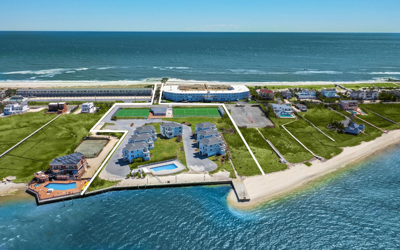 Boatlovers!!! Incredible bay-front opportunity with all the summer toys! Enjoy luxurious resort style living on world renowned Dune Rd in Westhampton. Enjoy easy living all summer long with this turn-key 3 bed, 2 bath. Complete with private boat slip, sugar sand bay-front beach, tennis, full gym, theatre and your spectacular and pristine oceanfront beach located just outside your front door!