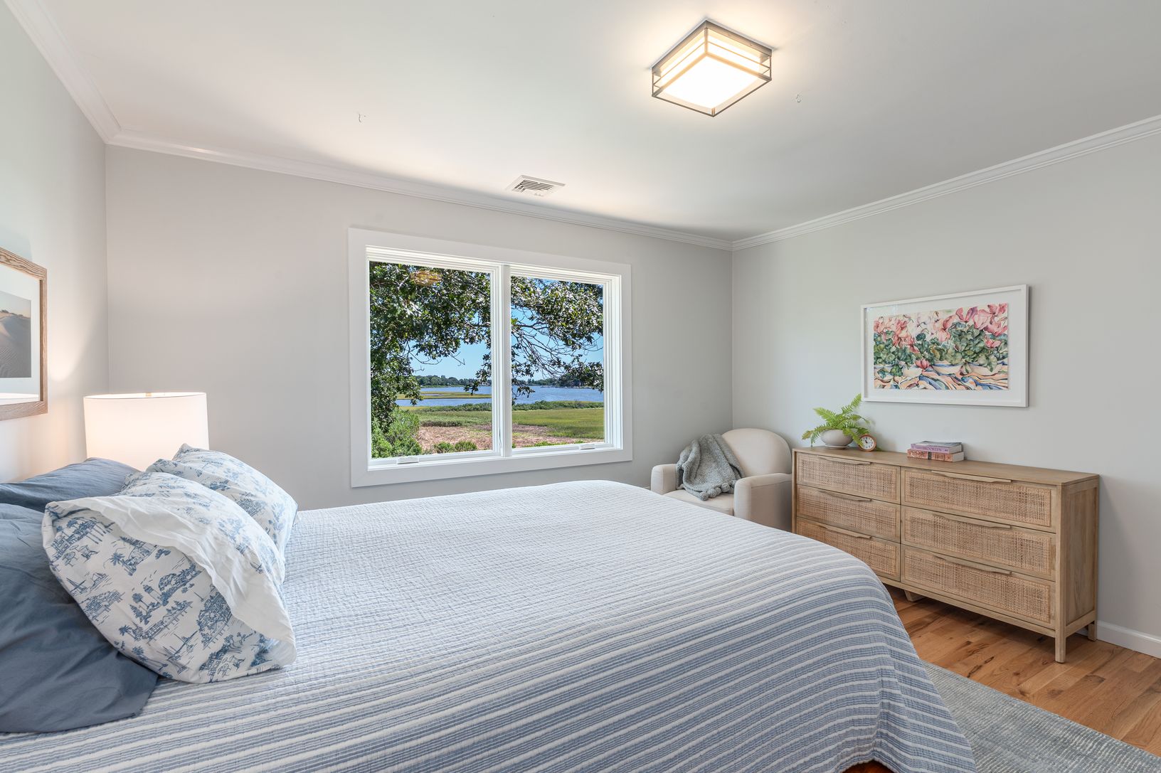 Experience serene luxury in this completely renovated home offering year-round views of Goose Creek and 250 feet of direct waterfront. Nestled on nearly 4.5 acres of pristine landscape, this private oasis is located in a highly desirable community with amenities including beach access, kayak storage, and docking. Designed for both relaxation and entertaining, the home features an open-concept layout with seamless indoor-outdoor flow. The gourm