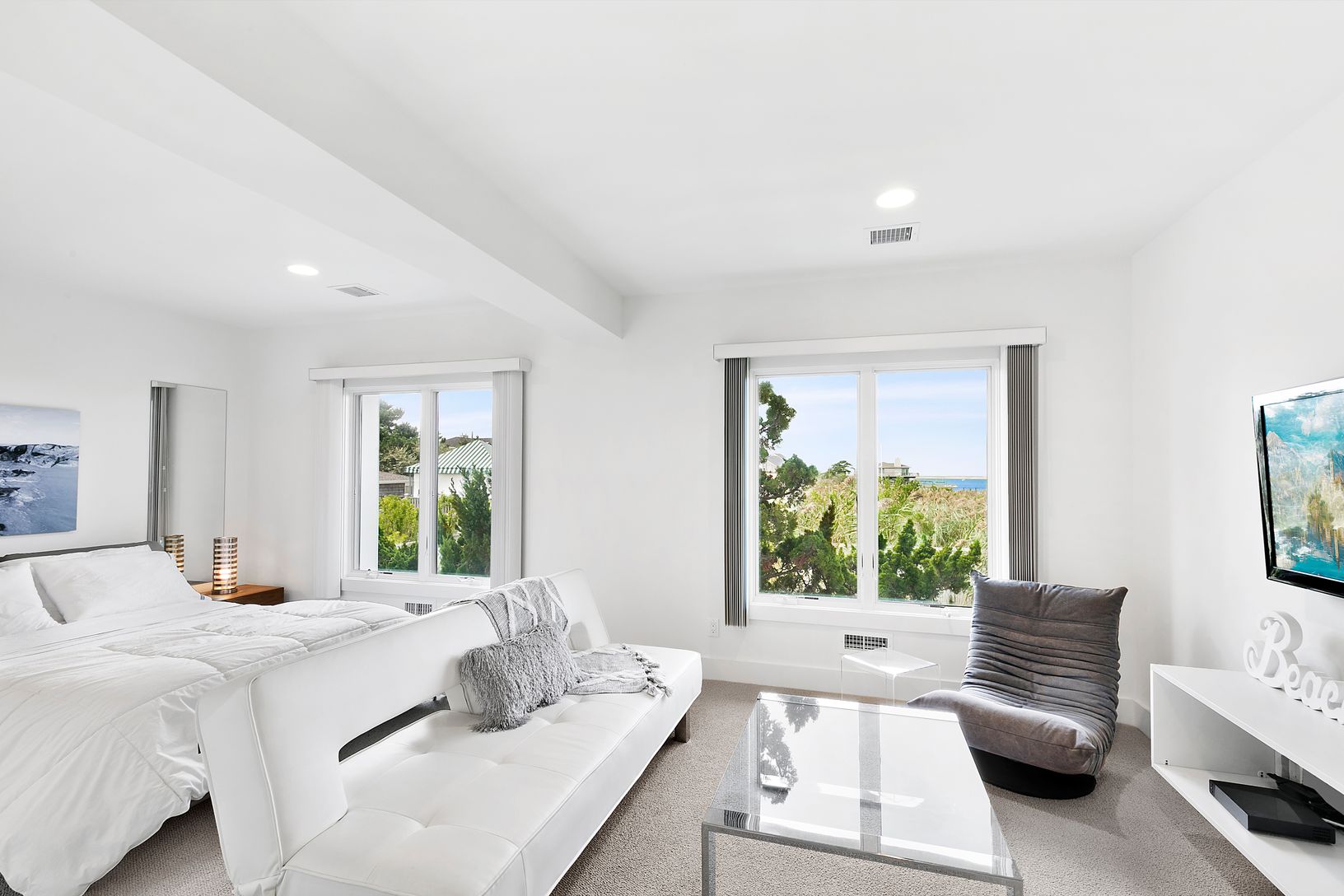 New inside and out! Very Open, Bright floor plan meticulously appointed with amazing water views and Sunsets! Four private sleeping quarters to escape also have water views and outdoor deck access. One of the bedrooms is set up as a studio apt for a special guest. House has bay beach and a deeded access to Ocean Beach. A wonderful beach home not to be missed!