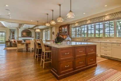 This quintessential Sagaponack South home encapsulates the essence of Hamptons country living. A flag lot offers peace and the open farm field views. Built by Michael Davis, this 7,000+/- sq. ft. traditional home is privately set on 3+/- acres of beautifully landscaped grounds and surrounded by an agricultural reserve. A well thought-out floor plan offers seven bedrooms and seven and one half baths. There is a large, open eat-in kitchen with p