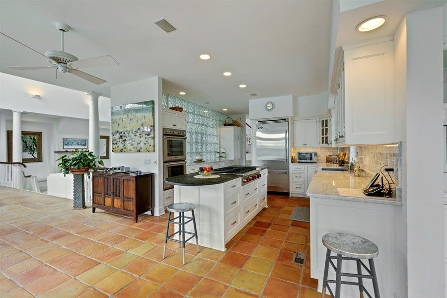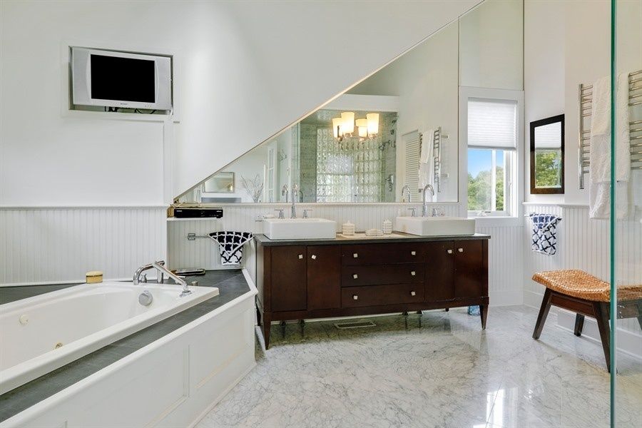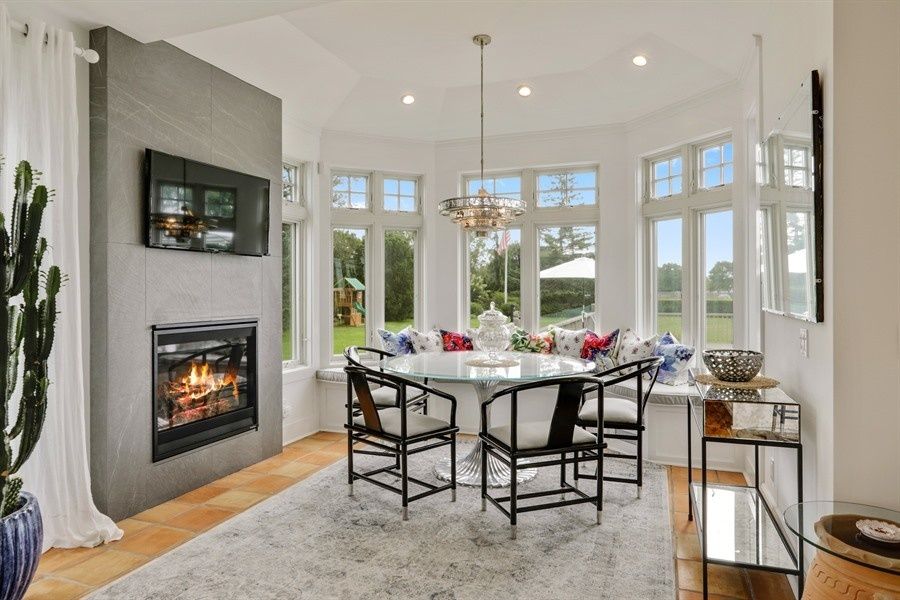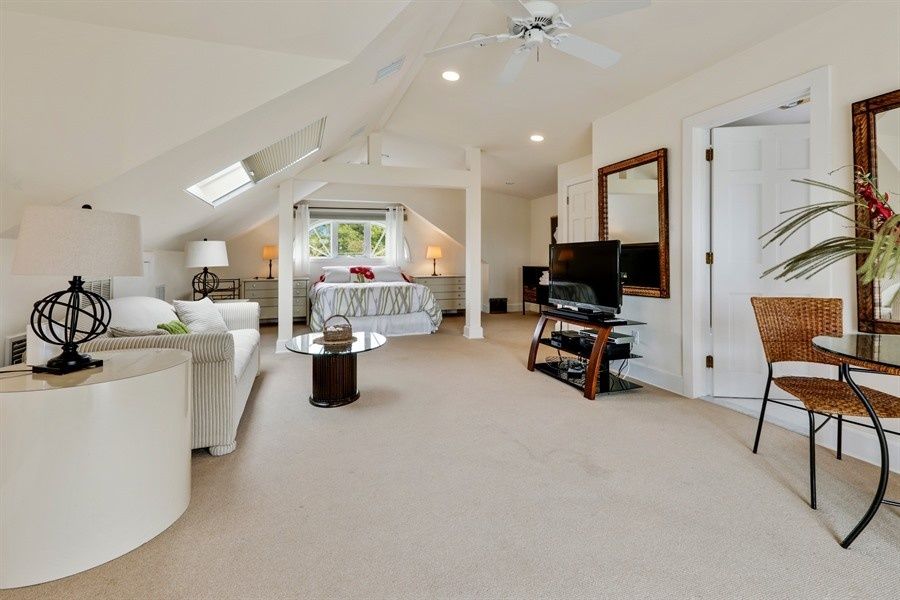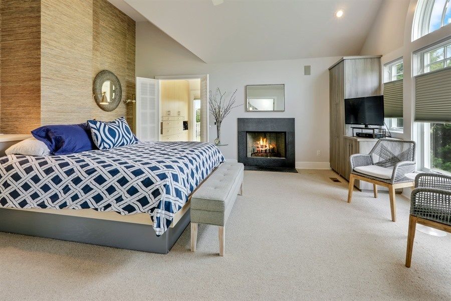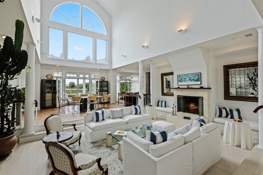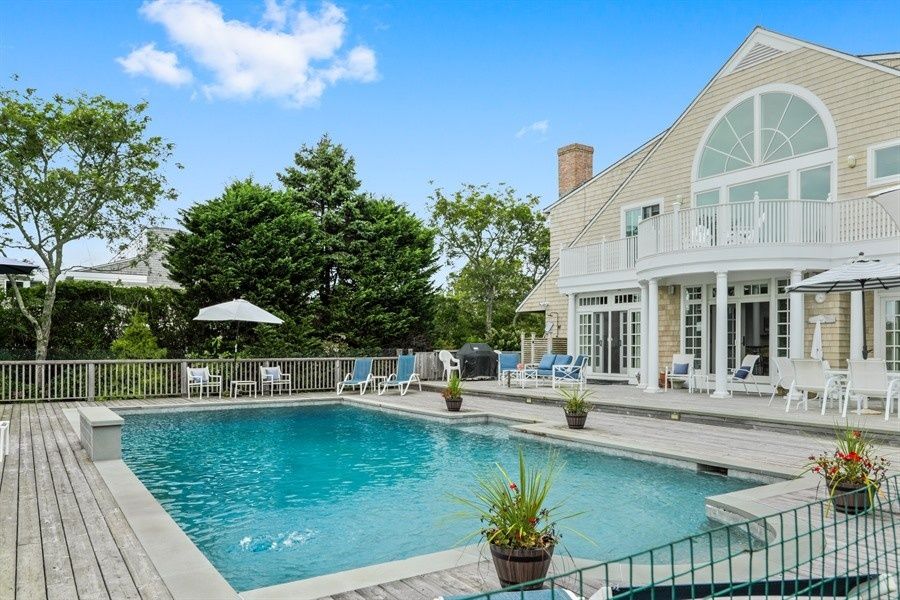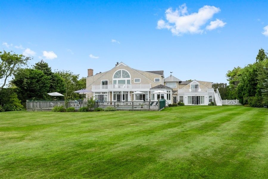 Unwind this summer in a stunning, 5-bedroom, 5 full bath plus 2 half bath Post Modern overlooking expansive farm fields, all a stone's throw from the Atlantic Ocean. Formal dropped living room with soaring cathedral ceiling and marble fireplace. Dining room and den/media room with fireplace and wet bar, fully equipped kitchen. High tech stereo system inside and out, 3-zone air conditioning, solarium/ fully equipped gym,sauna/bath, expansive d