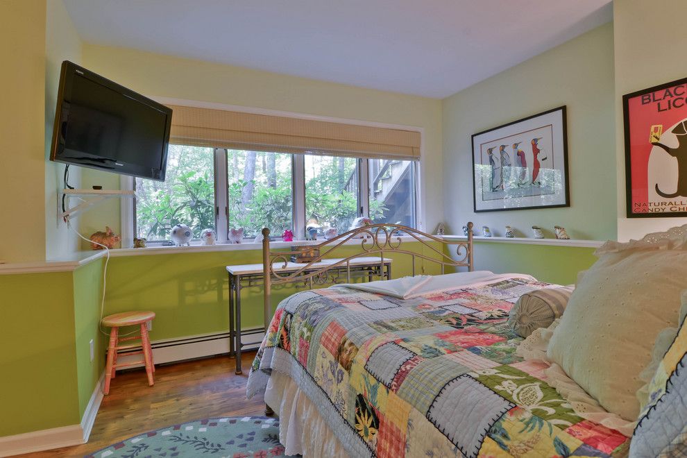 Very unique three level "chalet" style home designed to take full advantage of the lush surroundings on 1.14 acre parcel in Southampton. Walk out ground level features two guest bedrooms with full bath and sitting area which could be used as an office or small bedroom. Second level features living, dining and kitchen areas which open onto a spacious deck for relaxing and entertaining. Upper level is entirely master suite with amazing views