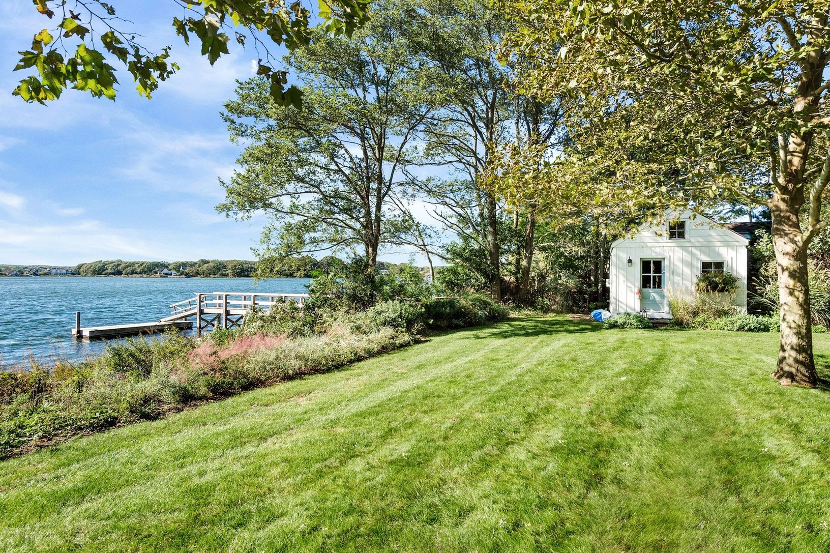 This classic Sag Harbor waterfront home is located on Glover Street, one of the most sought after streets in the historic village. The home is actually set back from the road and cannot be seen from the street thus creating a very private waterfront residence. Created by a renowned designer and built by high quality craftsmen with room to expand the main house offers 3 bedrooms, 2 1/2 bathrooms and generous entertaining areas. There are stunni