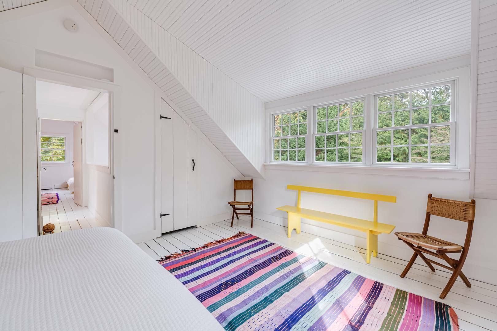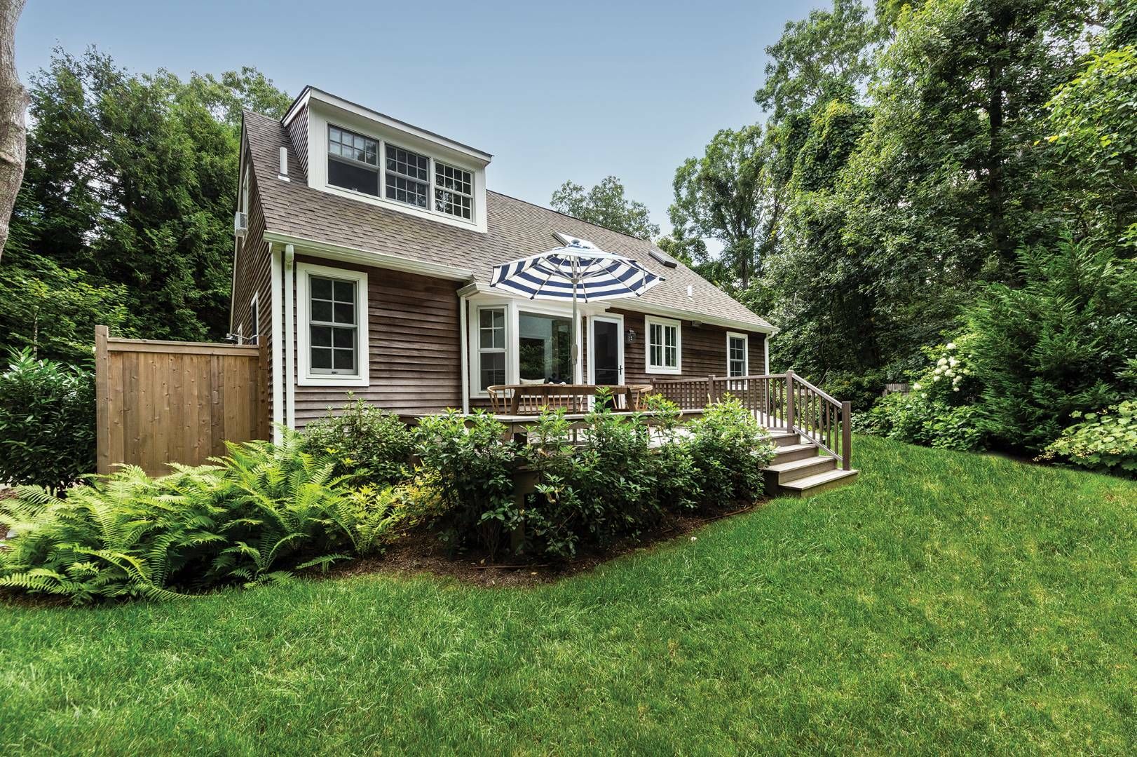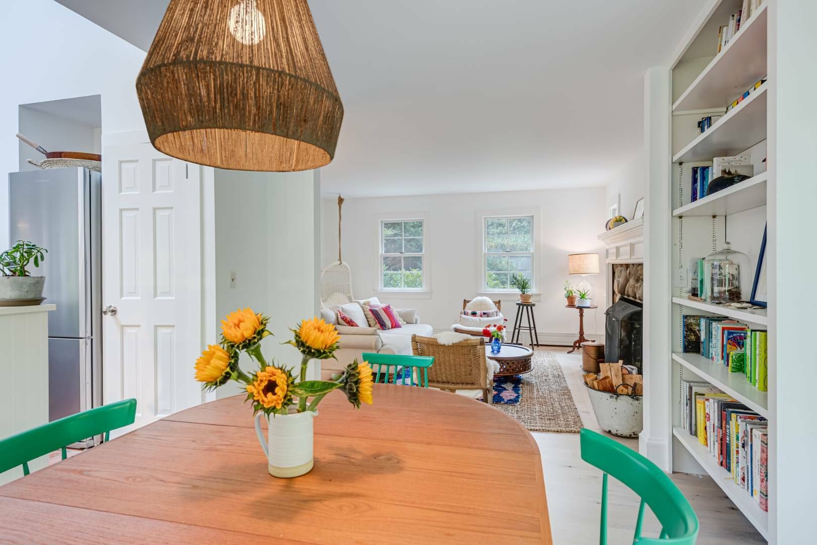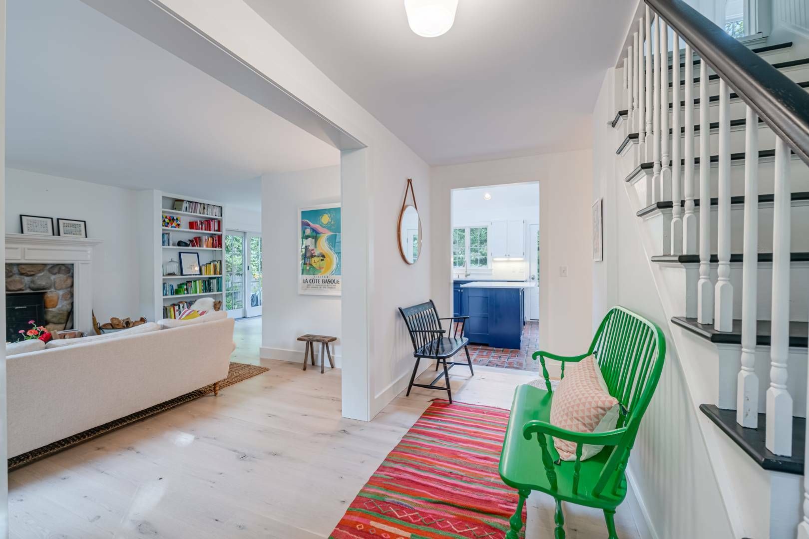 Nestled in the heart of Springs, a neighborhood that has been a refuge for generations of artists, stands a home that blends modern style with storybook charm. Inside the bespoke wooden gate, where climbing roses bloom all season long, you’ll find a classic, south-facing, Cape-style residence flooded with light thanks to its thoughtful siting on its quarter acre of property and its numerous large glass windows and skylights, including a full-w