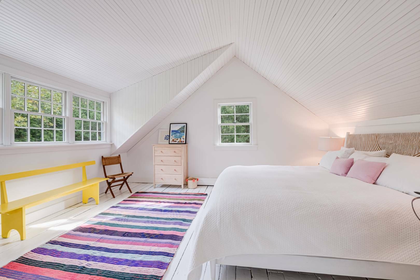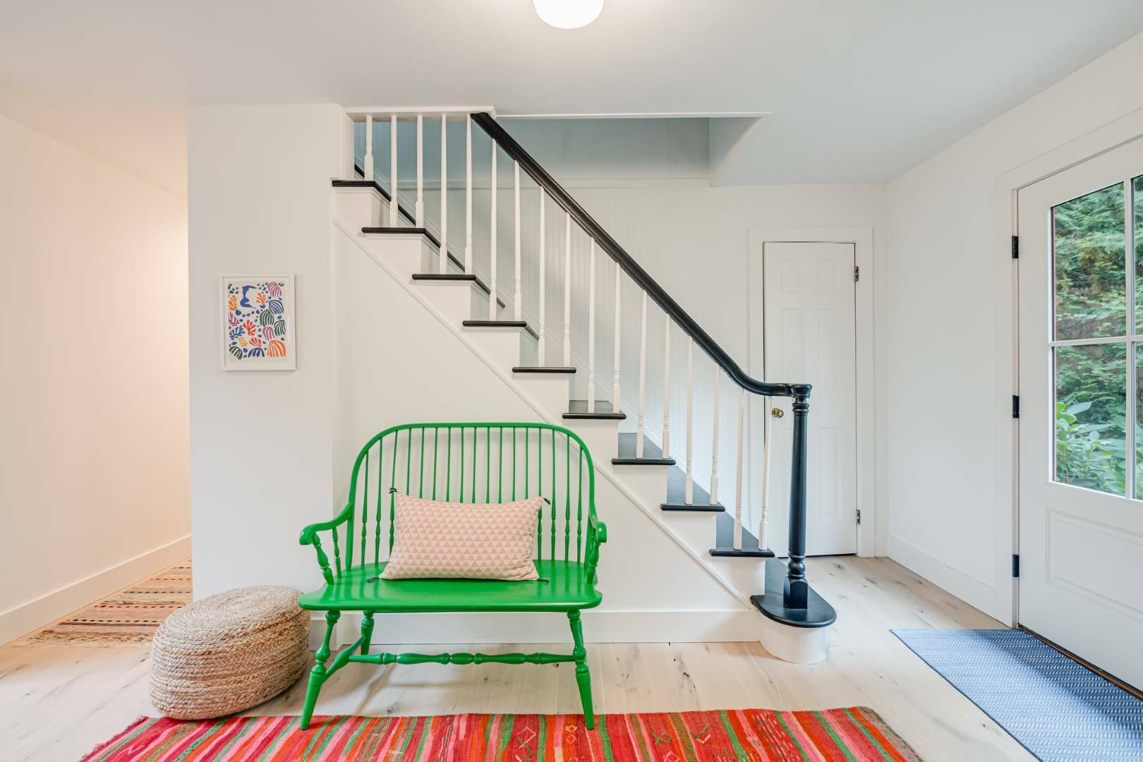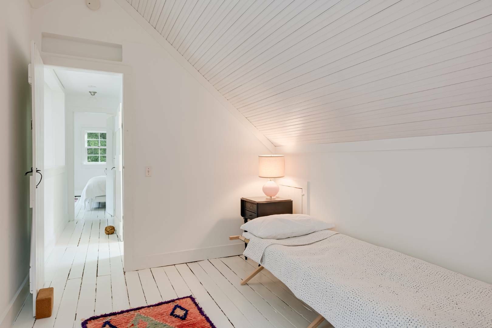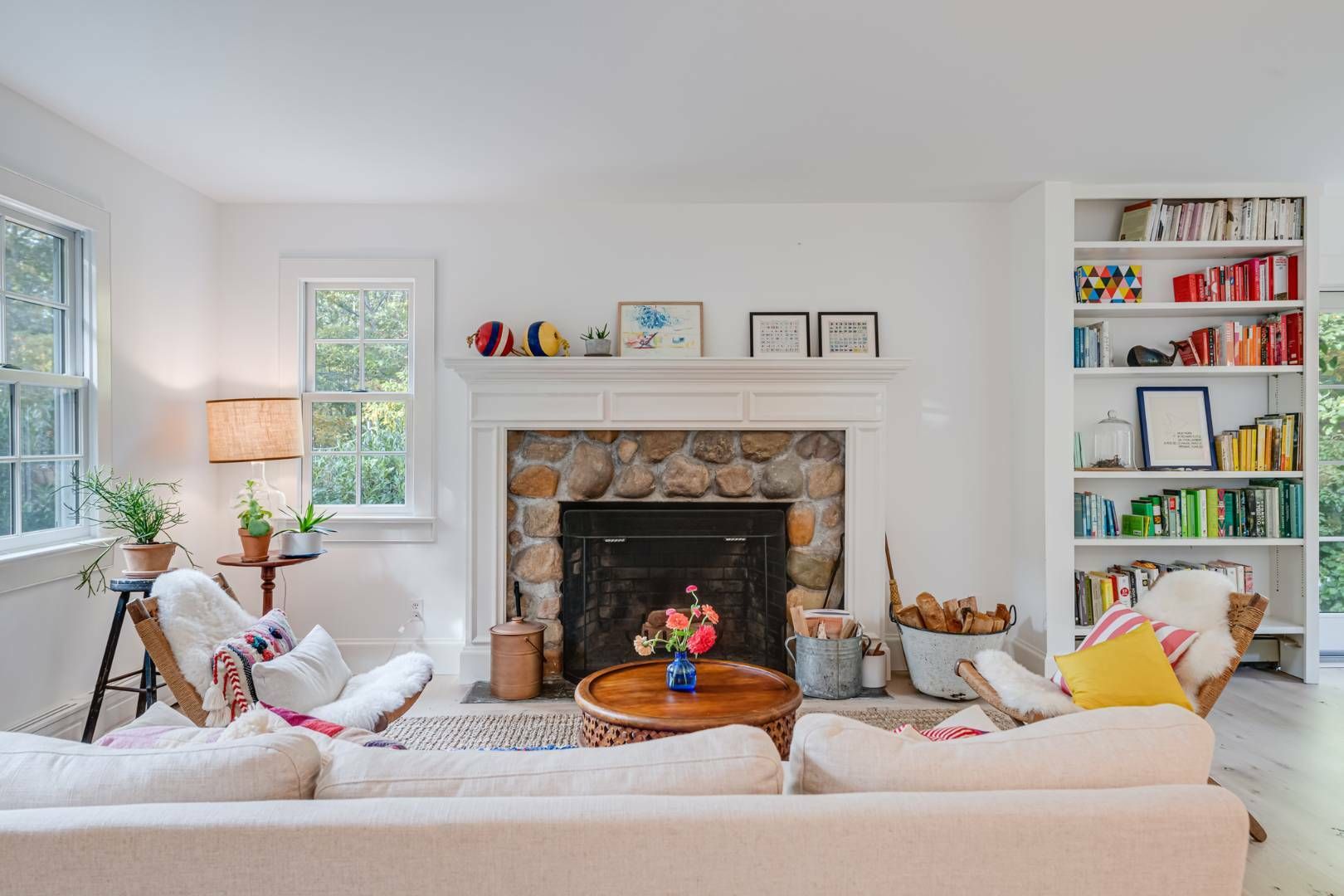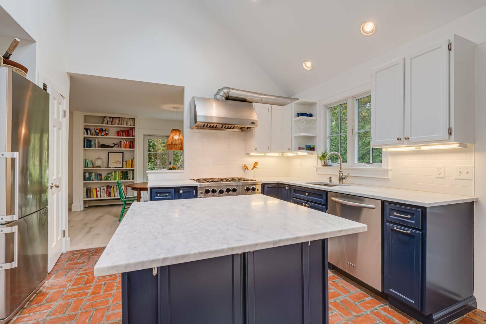 Nestled in the heart of Springs, a neighborhood that has been a refuge for generations of artists, stands a home that blends modern style with storybook charm. Inside the bespoke wooden gate, where climbing roses bloom all season long, you’ll find a classic, south-facing, Cape-style residence flooded with light thanks to its thoughtful siting on its quarter acre of property and its numerous large glass windows and skylights, including a full-w