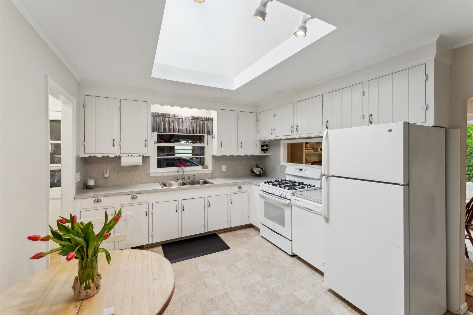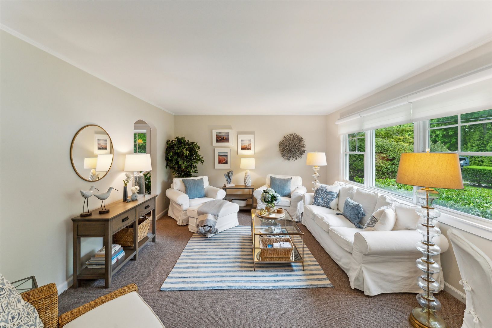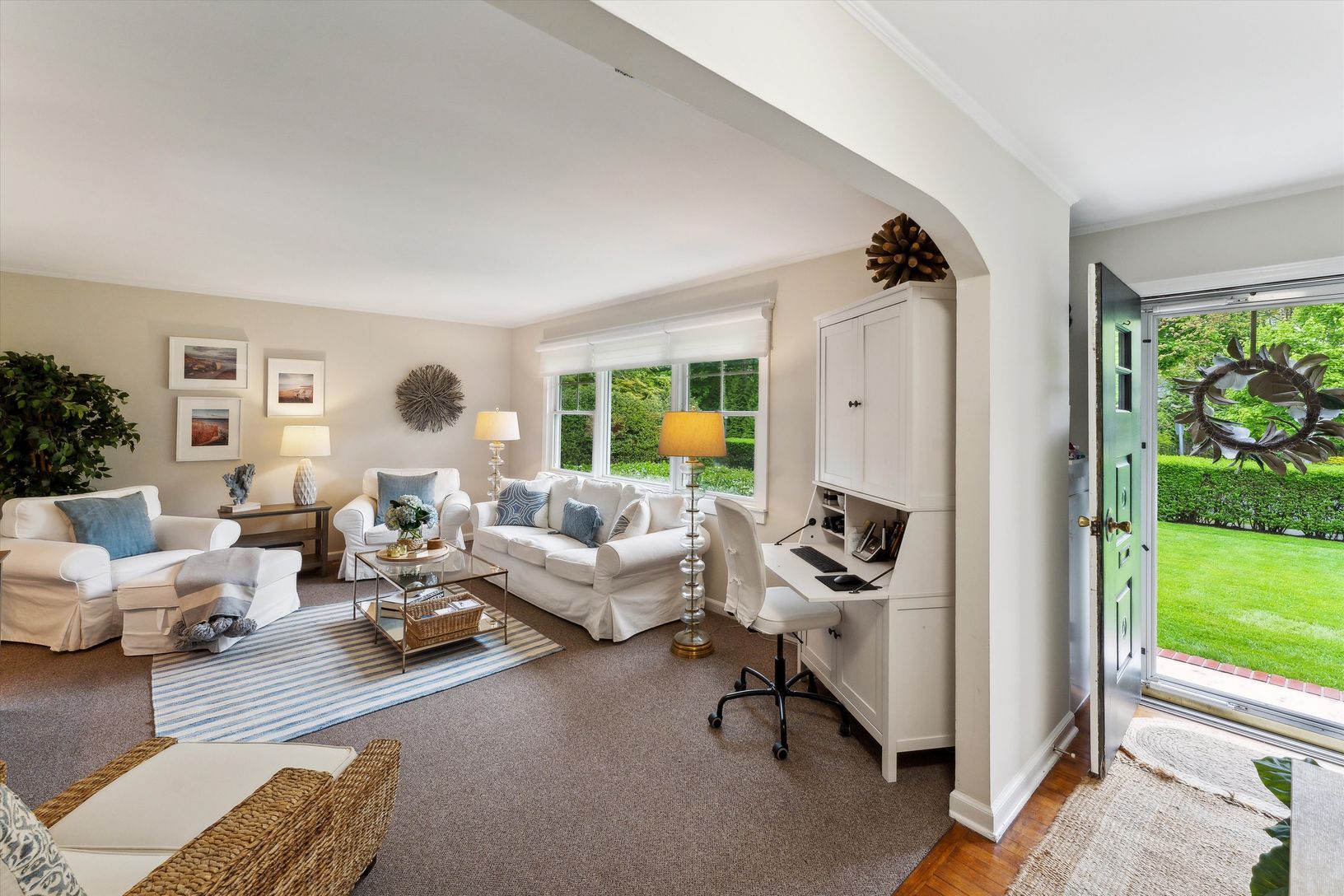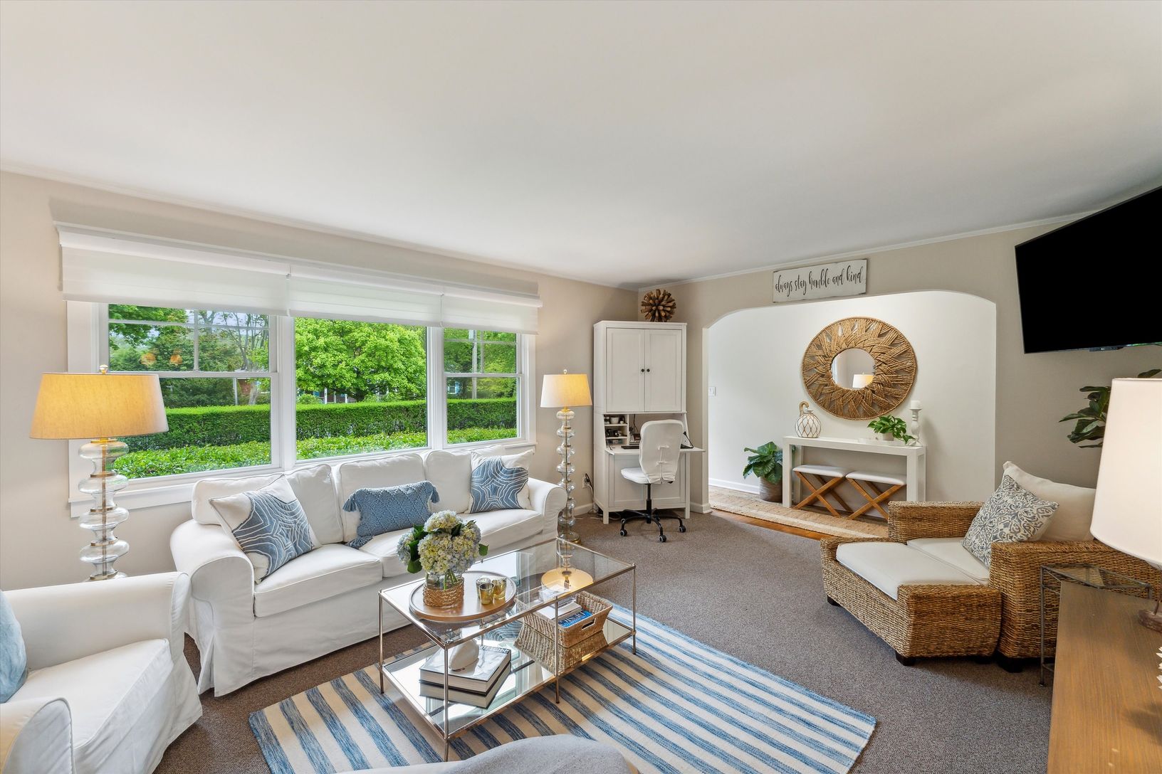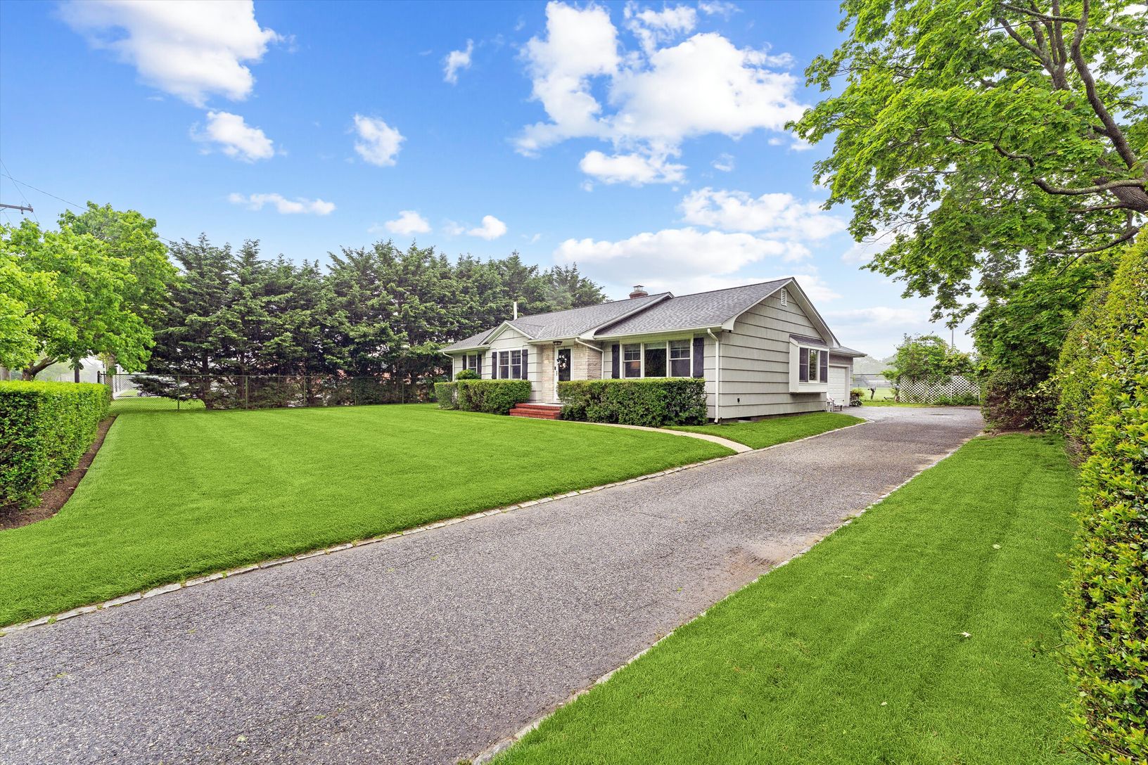 Welcome to 59 Lilac Road, a charming cedar shake ranch nestled in the heart of Westhampton Beach village. This delightful home offers nearly 1,500 square feet of smart living space. The bright living room opens to a formal dining room, leading to an eat-in kitchen equipped with a refrigerator, dishwasher, 4-burner range with griddle, and microwave. The home features three cozy bedrooms with new carpets installed in 2021, revealing original har
