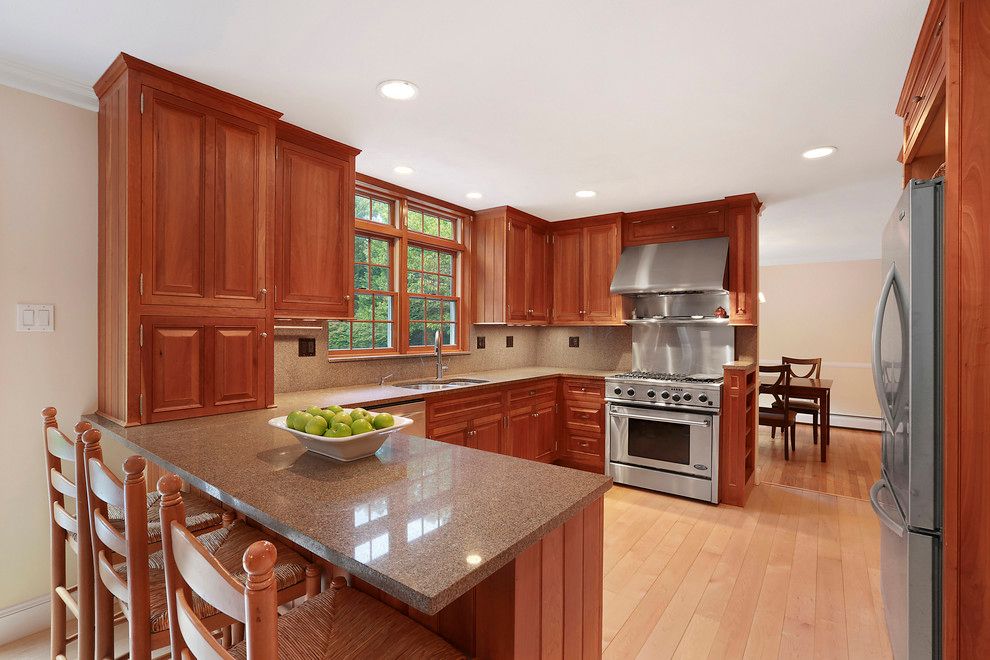 Situated well off the street on a quiet flag lot, this inviting 5 bedroom traditional is surrounded by lovely, lush grounds and landscaping. The chef's kitchen, designed and built by the prestigious Grains of Wood Carpentry, combines beauty, superior quality and function with cherry cabinets, granite counters and a commercial grade stove. Many new upgrades include newly renovated bathrooms with marble floors and vanities. California closet s