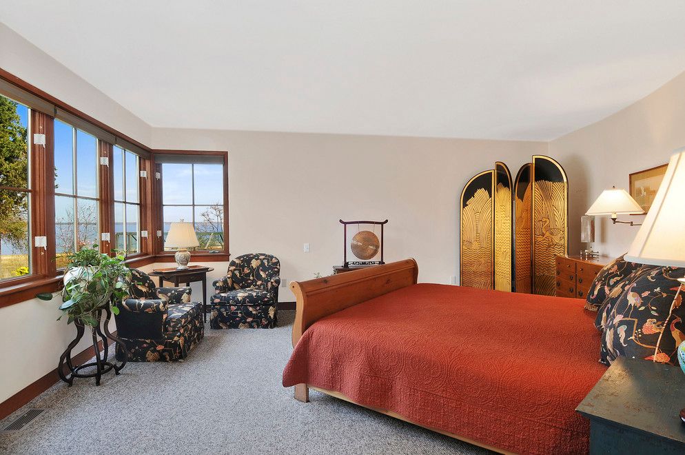 144' Of beachfront. Unobstructed, 180 degree views and set on reserve lands for forever unchanging vistas. This stunning setting, 1.77 acres, currently houses a 5 bedroom home with great room, den, custom kitchen, first floor master suite, second floor master suite, three guest bedrooms, partially finished full basement and one-car garage. At this price point, you can create your dream home here, and incorporate a pool into the design. Sought-