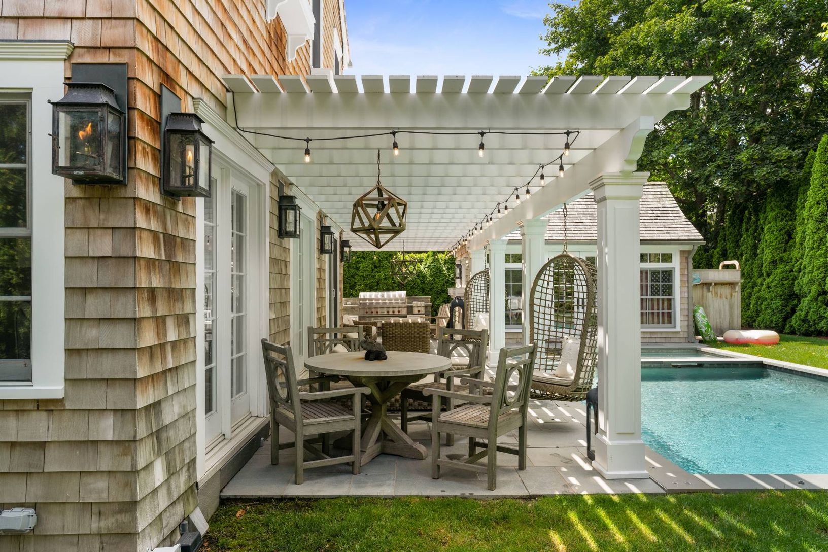 Just listed in East Hampton Village fringe is this beautiful custom built 4 bedroom, 4 bath home. The property offers beautifully appointed gracious living spaces both inside and out with incredible detailed fine carpentry throughout. The large open living area has a great room, dining area, gourmet kitchen, butlers pantry, 4 fireplaces, an amazing finished lower level with huge walk-in wine cellar and LR with large TV. Outdoors enjoy the heat