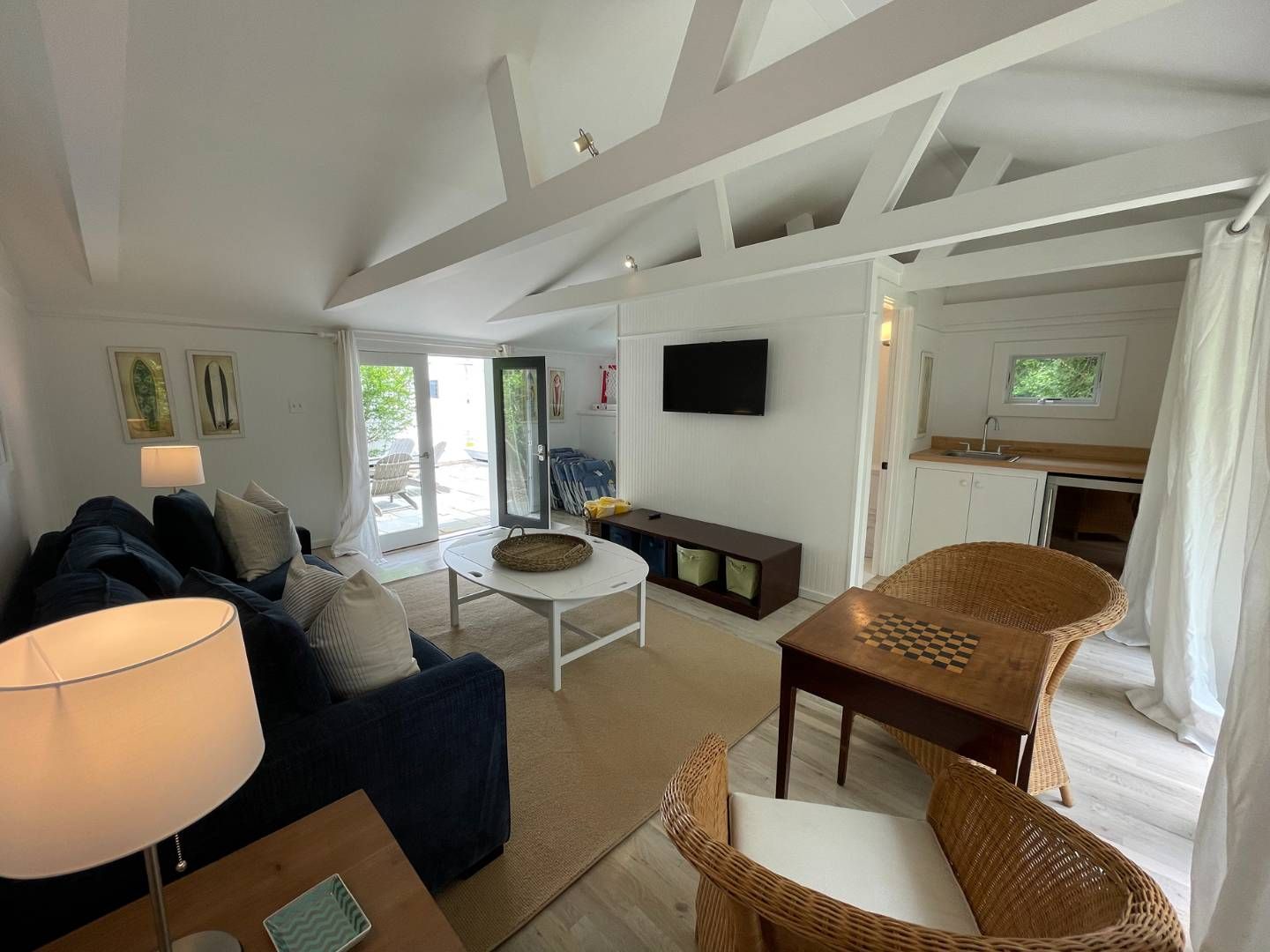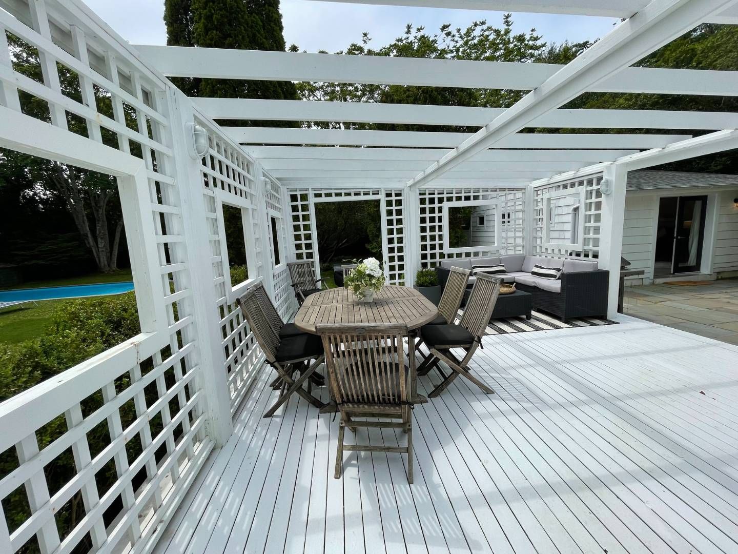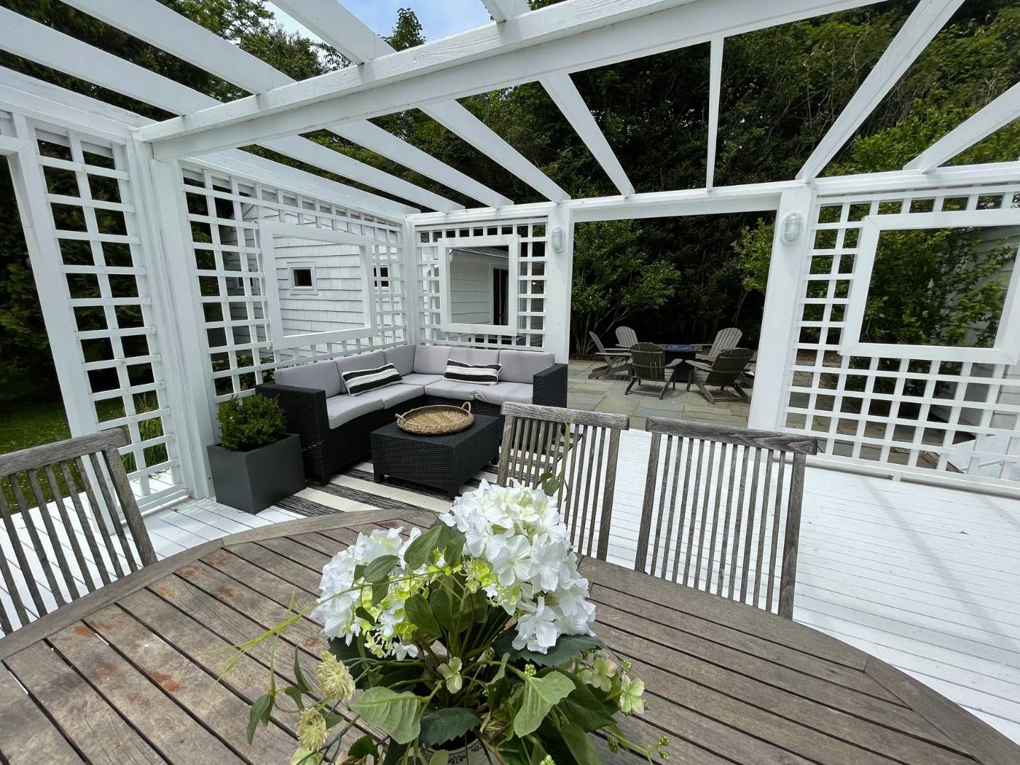 STEPS FROM EAST HAMPTONS's NEWTOWN LANE find this distinctive charming three bedroom, three & two half bath home, with a separate guest / recreational cottage with its own bath and outside shower, boasts a brand new sun-filled eat-in kitchen, an airy & bright paneled living room, and gracious master suite with private sitting area. Tasteful, comfortable decor throughout. Perfectly situated on lush grounds with outdoor dining pergola, h