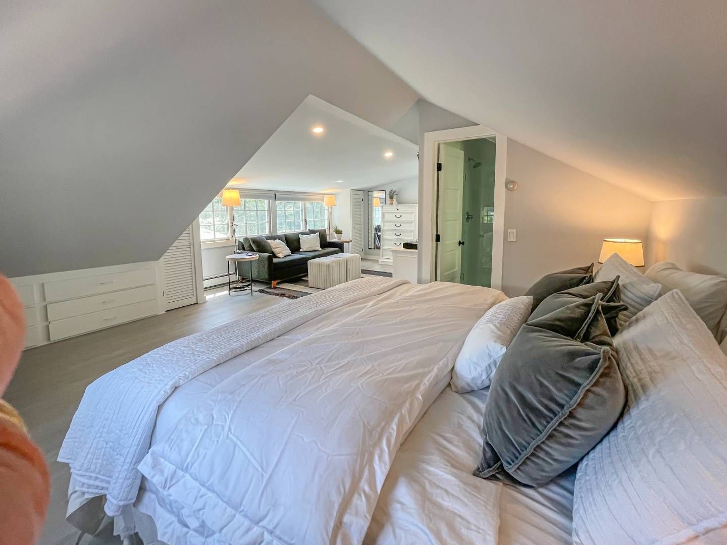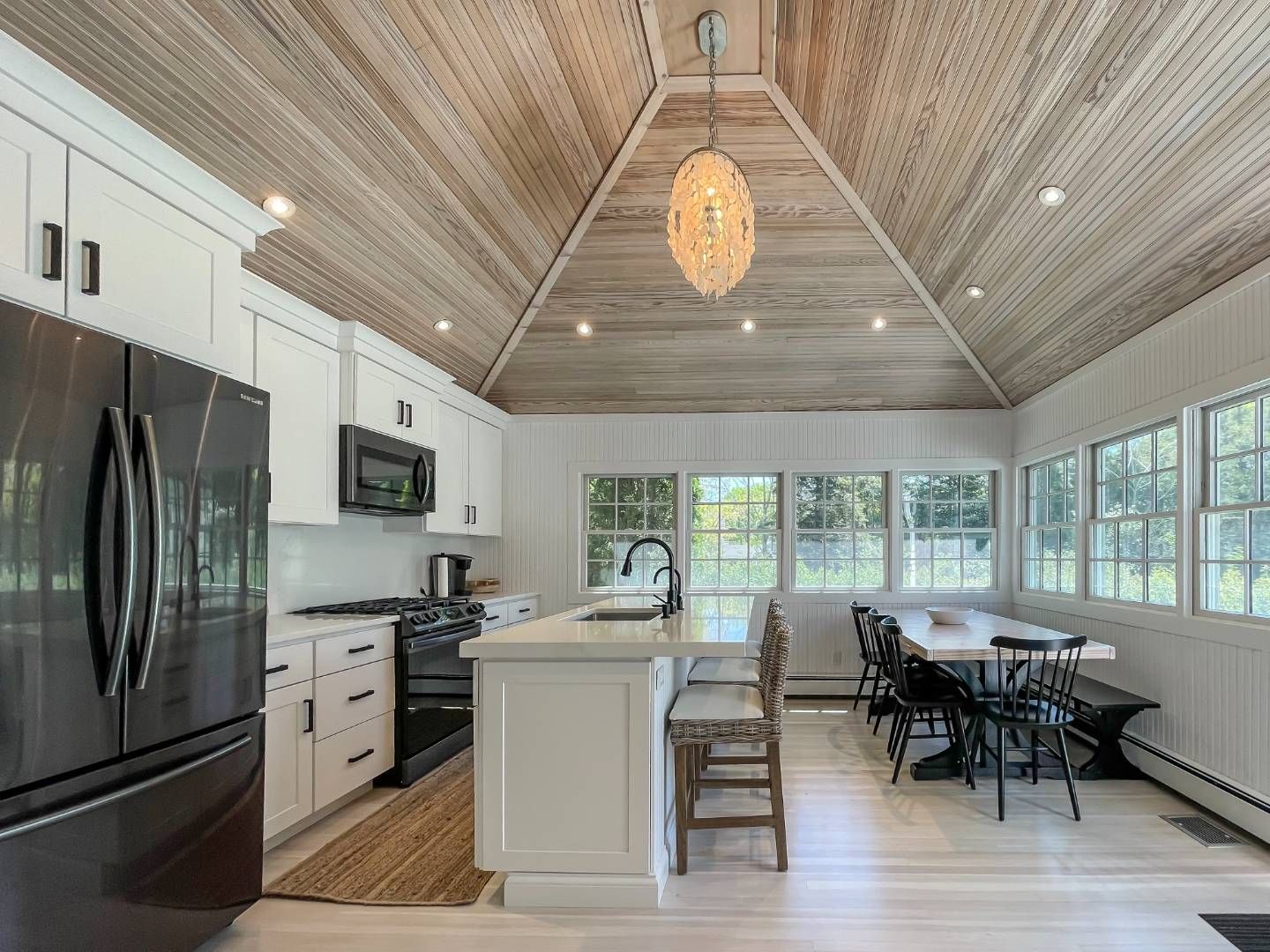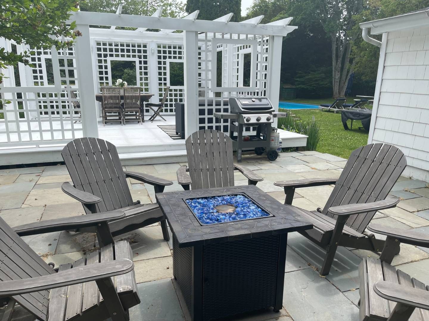 STEPS FROM EAST HAMPTONS's NEWTOWN LANE find this distinctive charming three bedroom, three & two half bath home, with a separate guest / recreational cottage with its own bath and outside shower, boasts a brand new sun-filled eat-in kitchen, an airy & bright paneled living room, and gracious master suite with private sitting area. Tasteful, comfortable decor throughout. Perfectly situated on lush grounds with outdoor dining pergola, h