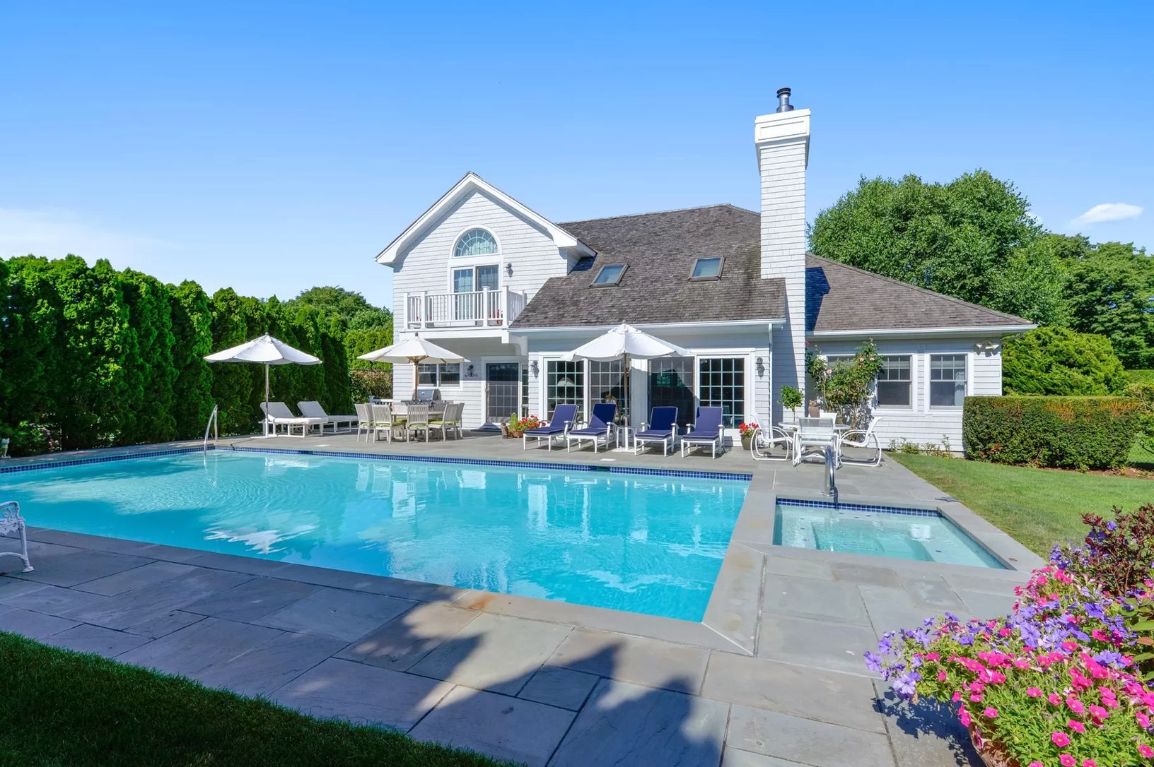 A beautiful and well appointed home with pool and tennis, located within a short distance of ocean beaches and the village center. This comfortable and stylish home features 4 bedrooms, 3.5 baths, living room with fireplace, professional kitchen and elegant dining room. A large and sunny patio surrounds a heated pool and its own tennis court is also on the estate. Teaming with hydrangea and lush landscaping, this home is the ideal vacation r