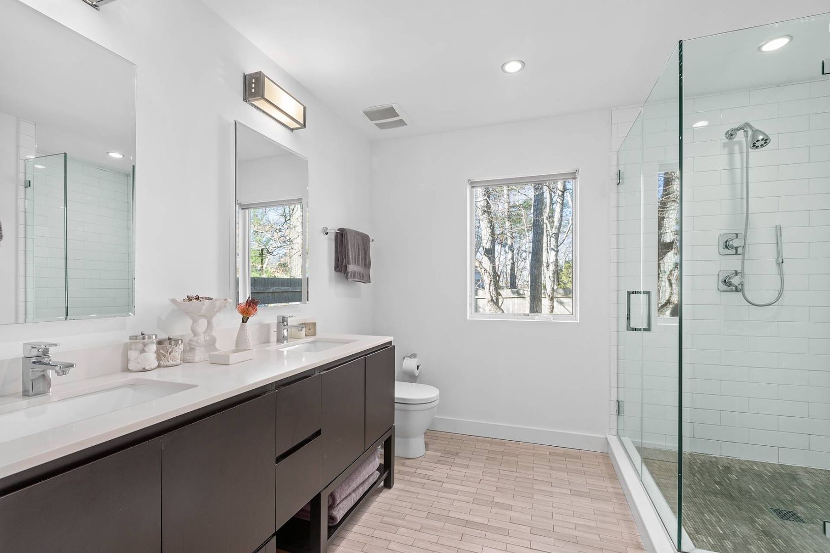 Enjoy all the comforts of Hamptons living, wrapped in modern style and luxury, in this gorgeous 3 bedroom, 2 bathroom ranch in East Hampton's prime NW Woods! Renovated to perfection, the chic 1,600+/- square foot jewel sits on 1.1 pristinely landscaped acres in a private setting at the end of a quiet cul-de-sac, complete with a sparkling heated pool, outdoor shower, large deck and spacious backyard for outdoor entertaining. Light filled interi