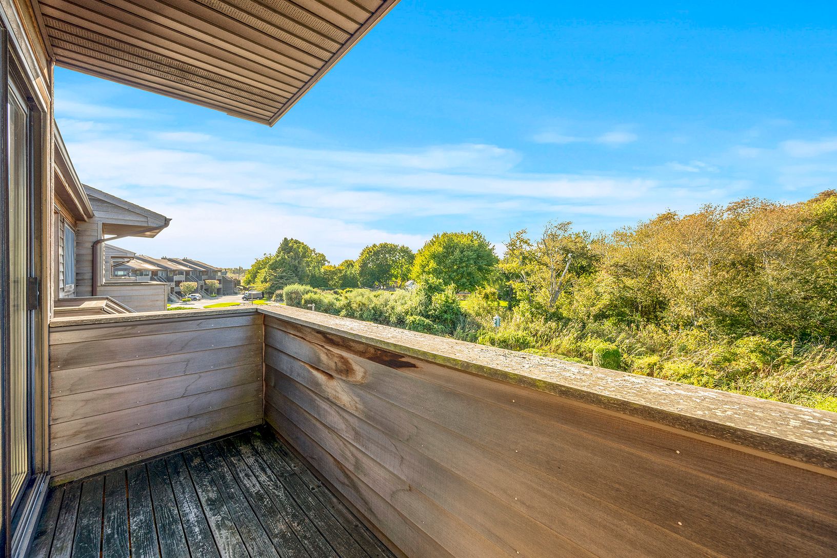 Villas on the Bay, a very sought after community sited on the quiet waters of Harts Cove with magnificent vistas onto Moriches Bay and beyond to the Atlantic. This upper end-unit with 2 bedrooms, 2 baths, one an en-suite, living room, dining area, kitchen with plenty of storage, a washer and dryer in the unit, and a huge deck overlooks paradise. The second level has a loft space and den, or what your needs might be. The main floor has vaulted