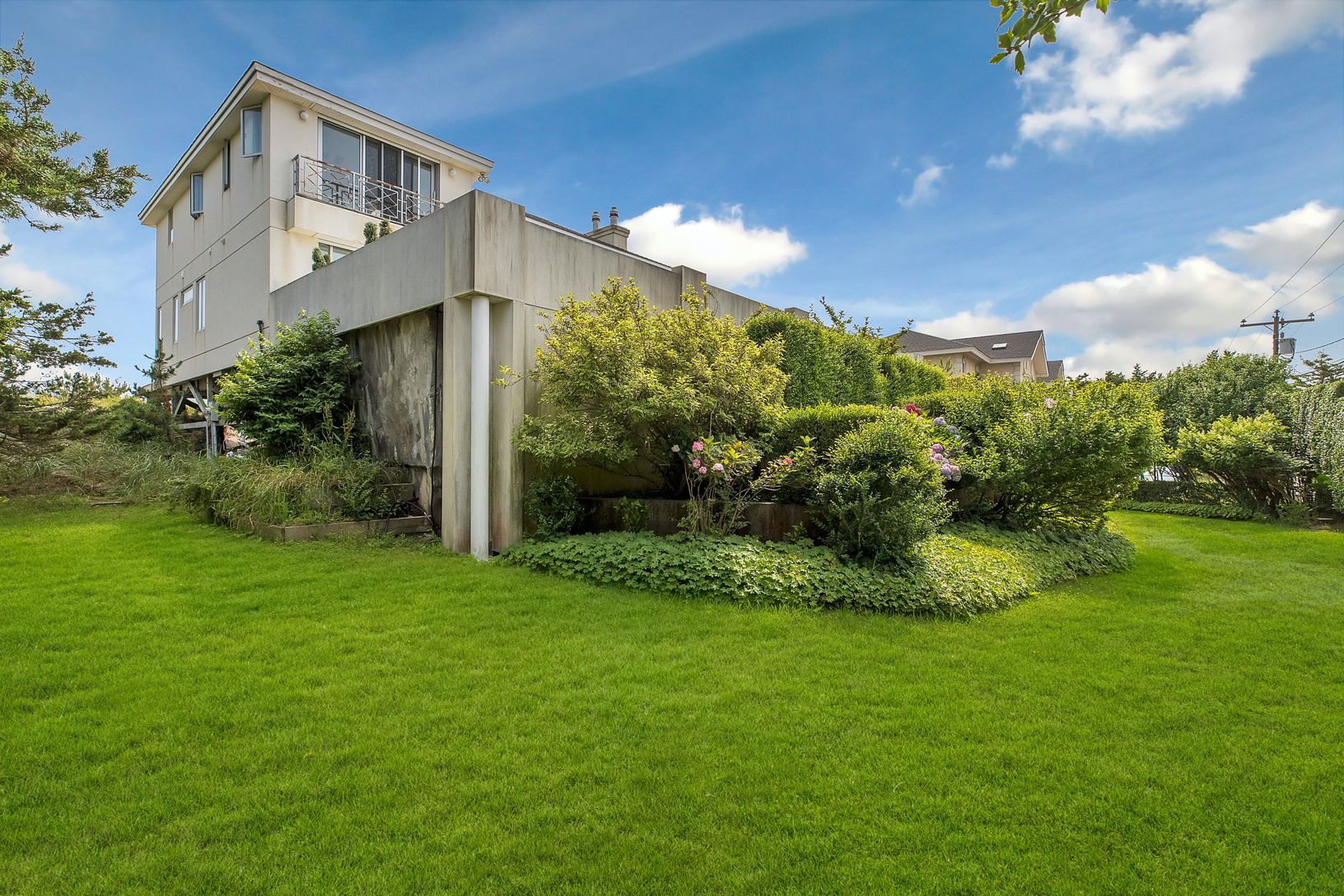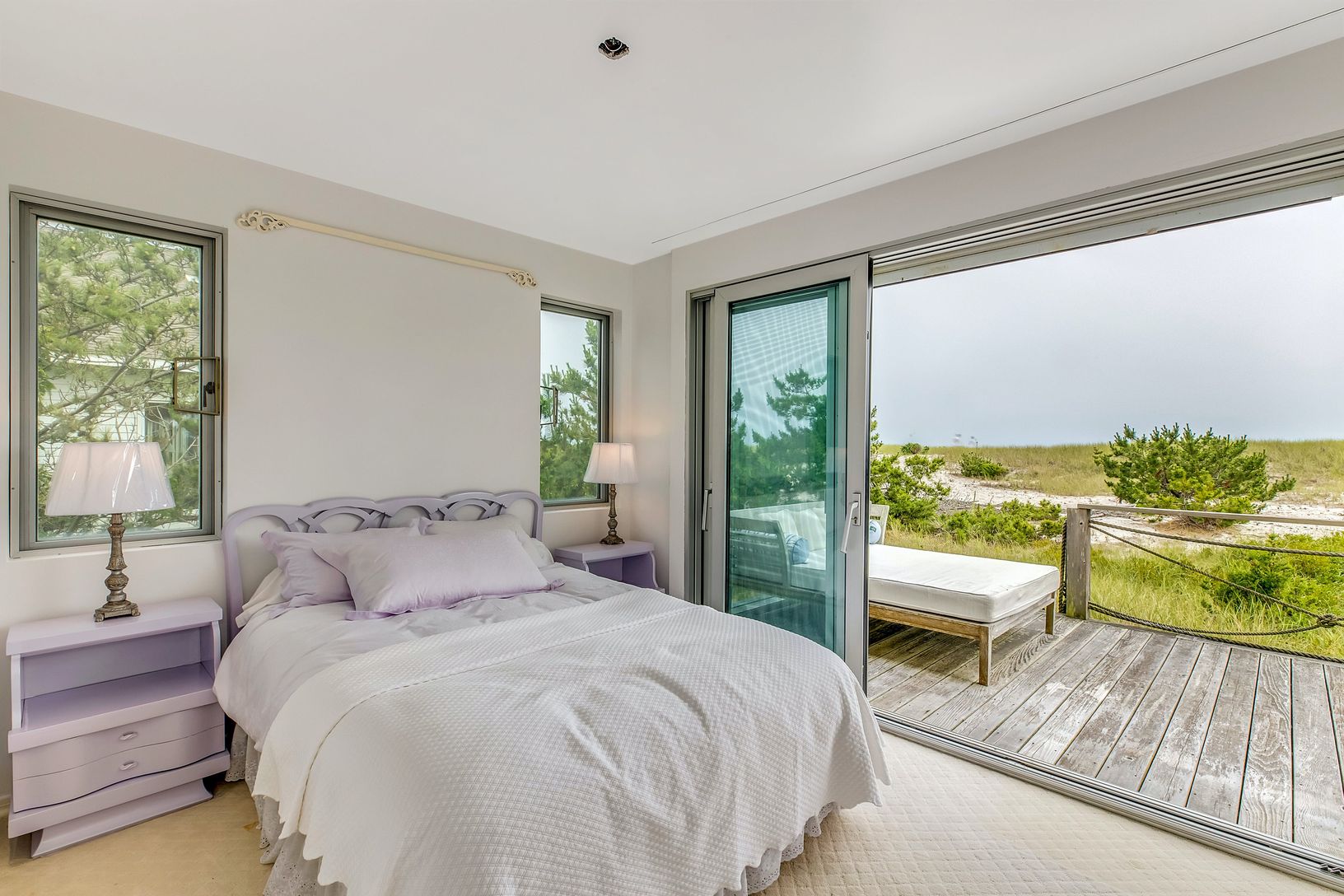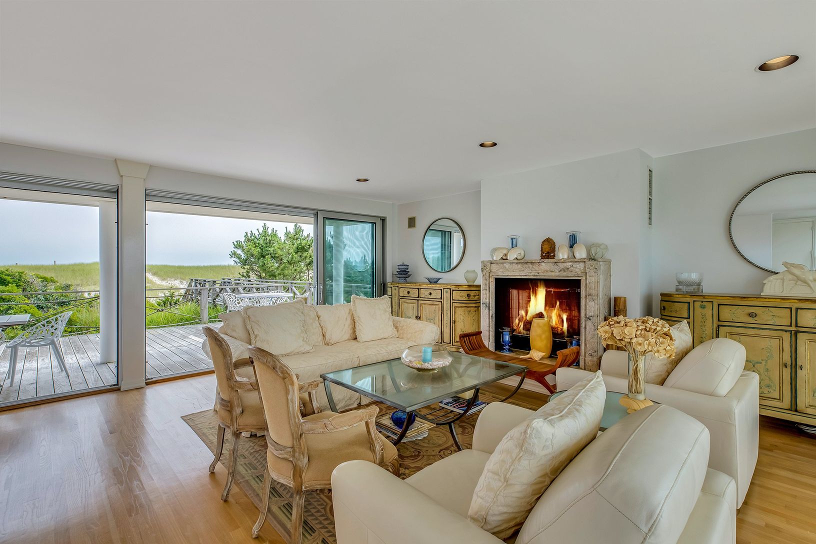 Nestled in the Ocean Dunes in Westhampton is this stunning contemporary oceanfront home. Entering this residence, you are welcomed by stunning views from numerous levels throughout this home of the Atlantic ocean beach and Moriches bay. The main level offers an open living and dining area with dual wide opening sliders that bring the ocean and the bay right into your living space. The kitchen area over looks the gunite pool with expansive v