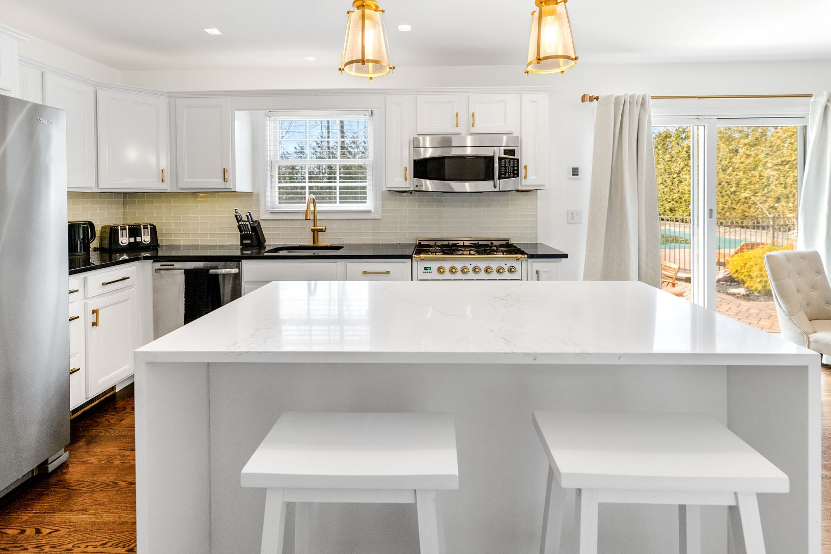 Enjoy summer in the Hamptons at this private and spacious 3 bedroom, 3 bath , den ,cac, 1 car garage Traditional home with a Modern Flair. A natural gas fireplace in the living room ,formal dining room which leads into the sensational gourmet kitchen with a beautifully crafted waterfall island and a spacious area to work virtually from home. Other great amenities include heated saltwater pool , enclosed outdoor shower, music speakers poolside