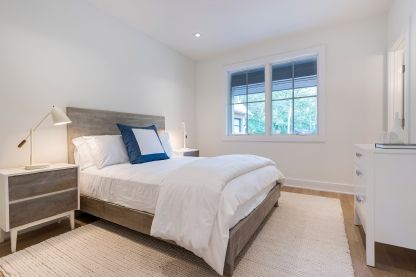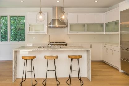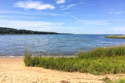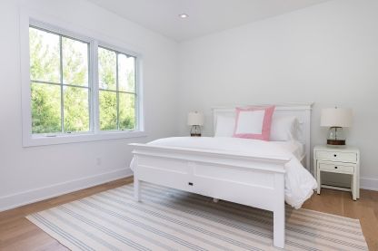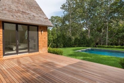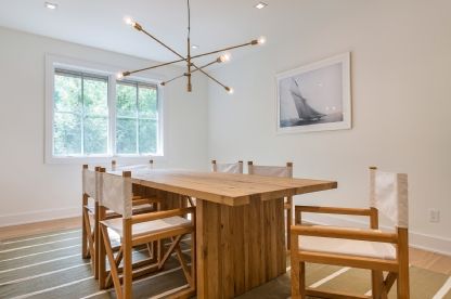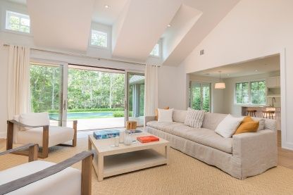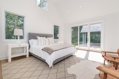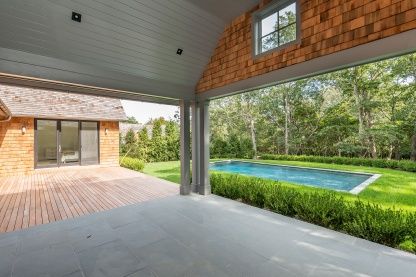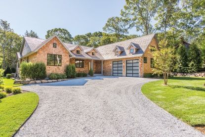 Construction is now complete on this striking cedar-shingled transitional style one-level home with finished lower level near Three Mile Harbor in East Hampton's prestigious Hampton Waters enclave. Thoughtfully sited on .65 +/- acres, this latest project by Bluefin Contracting LLC pays homage to the Hamptons' traditional gabled look while embracing an interior of modern living, open and airy with high ceilings, and gracious spaces that flow ea