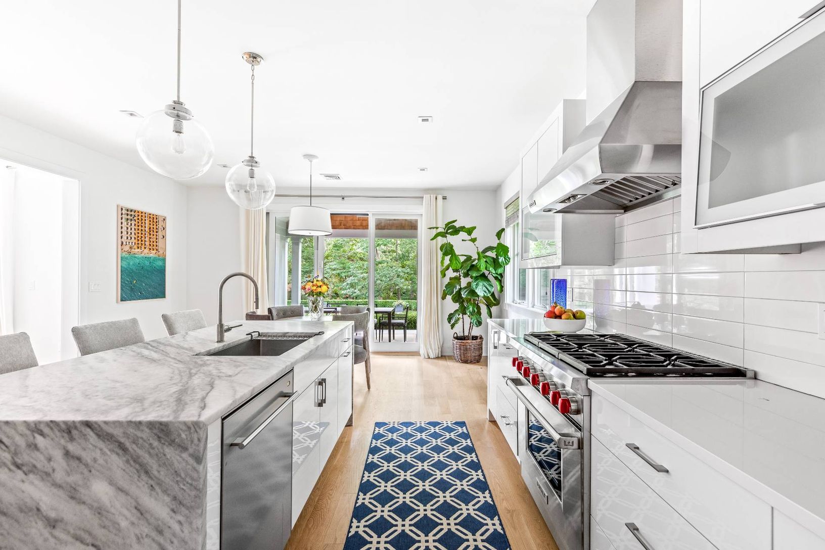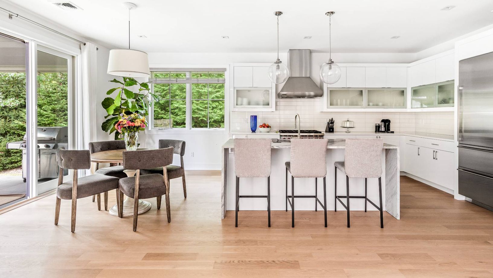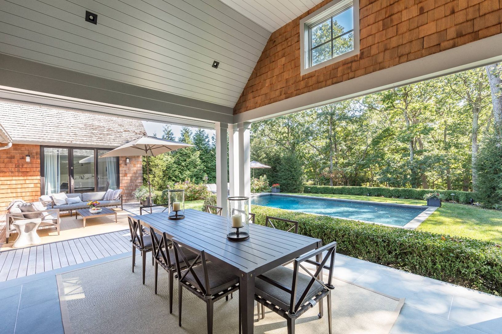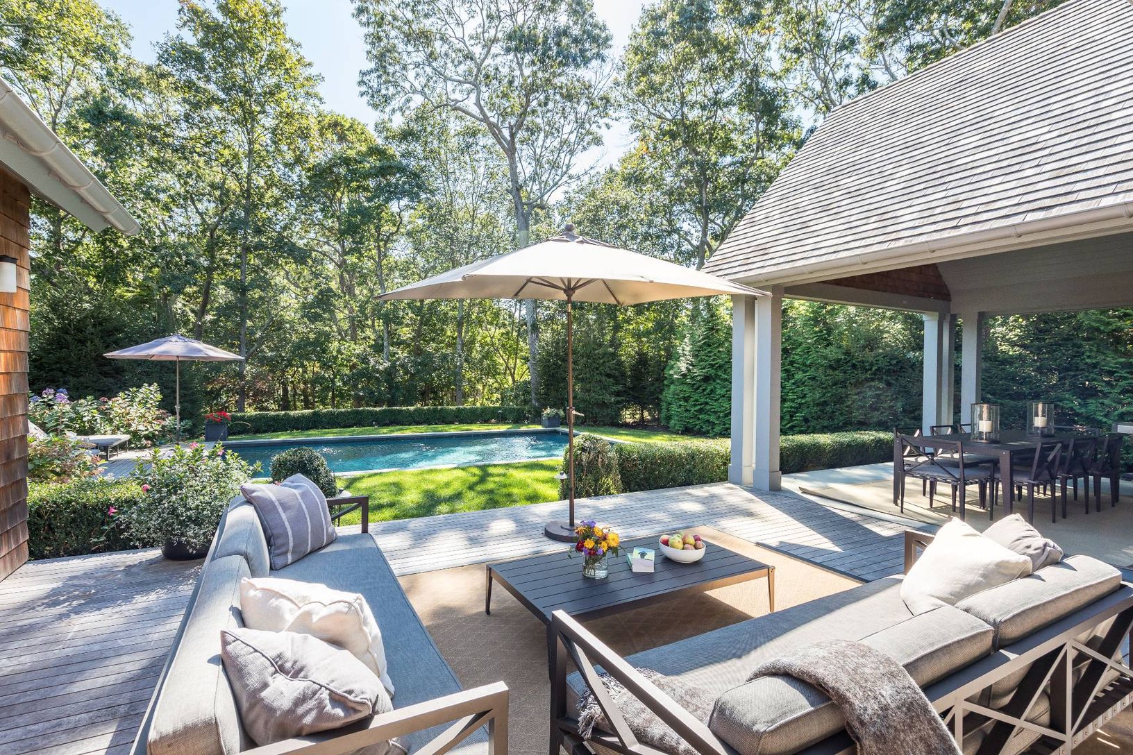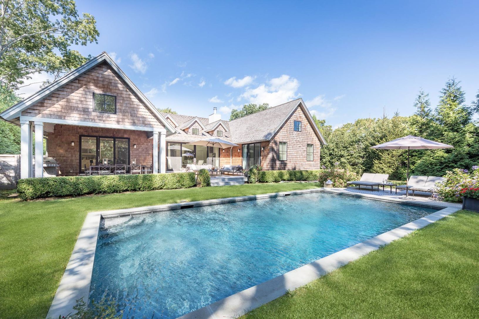 Located in East Hampton's prestigious Hampton Waters enclave near Three Mile Harbor sits this stunning transitional-style one-level home with finished lower level. Thoughtfully sited on .66 acres, this recently built home embraces modern living, with an open and airy interior, and comfortable spaces that flow easily from one to the next. The well-appointed main level features a large living room with high ceilings and gas fireplace, a custom e