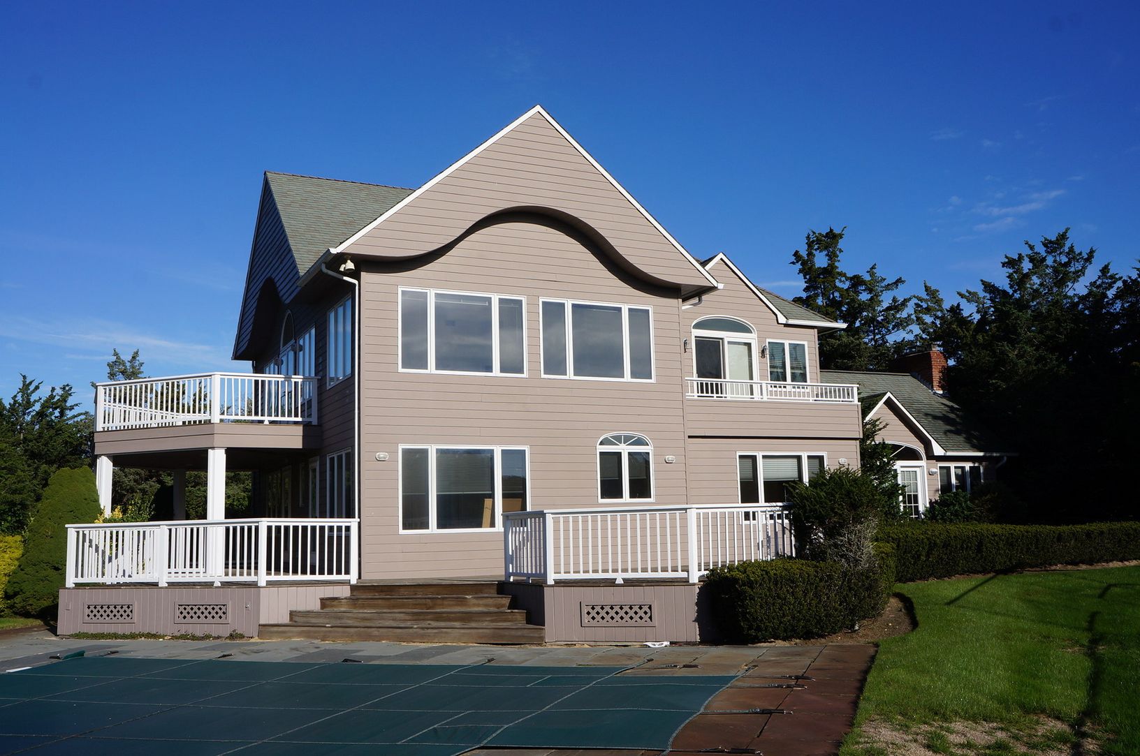 Waterview 5BR contemporary located south of the highway in a beautiful estate section. Nestled on 1.4 acres, this home is located on a nice quiet cul-de-sac. This private retreat is spacious and perfect for entertaining with a 20 X 50 pool and tennis court. 4480 sq ft living space includes LR/Den with fireplaces, formal dining room, EIK, 2 full and 2 half baths with stainless steel appliances. Relax and enjoy!