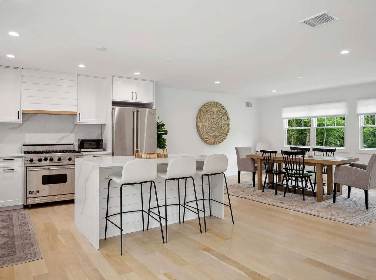 Newly renovated (June 2024) 4 bedroom/4 bathroom stunning rental in Southampton. This spacious colonial is ideally located - South of the Highway, steps from Shinnecock Bay, and less than four miles from Southampton Village and Coopers Beach. The first floor includes beautiful white oak floors, a gracious 2 story foyer, a bright kitchen with Viking appliances, dining area, spacious living room, a downstairs bedroom, and a bathroom. On the s