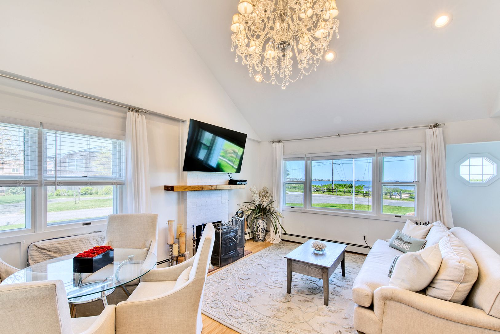 A truly unique, one-of-a-kind opportunity to own a turn-key home positioned at the southernmost tip of Hampton Point, East Quogue's premier private bayfront community. The perfect getaway, 6 Bayside Avenue features endless water vistas from almost every room and is across the street from a private beach.