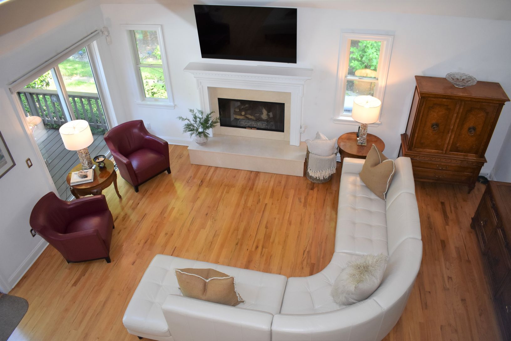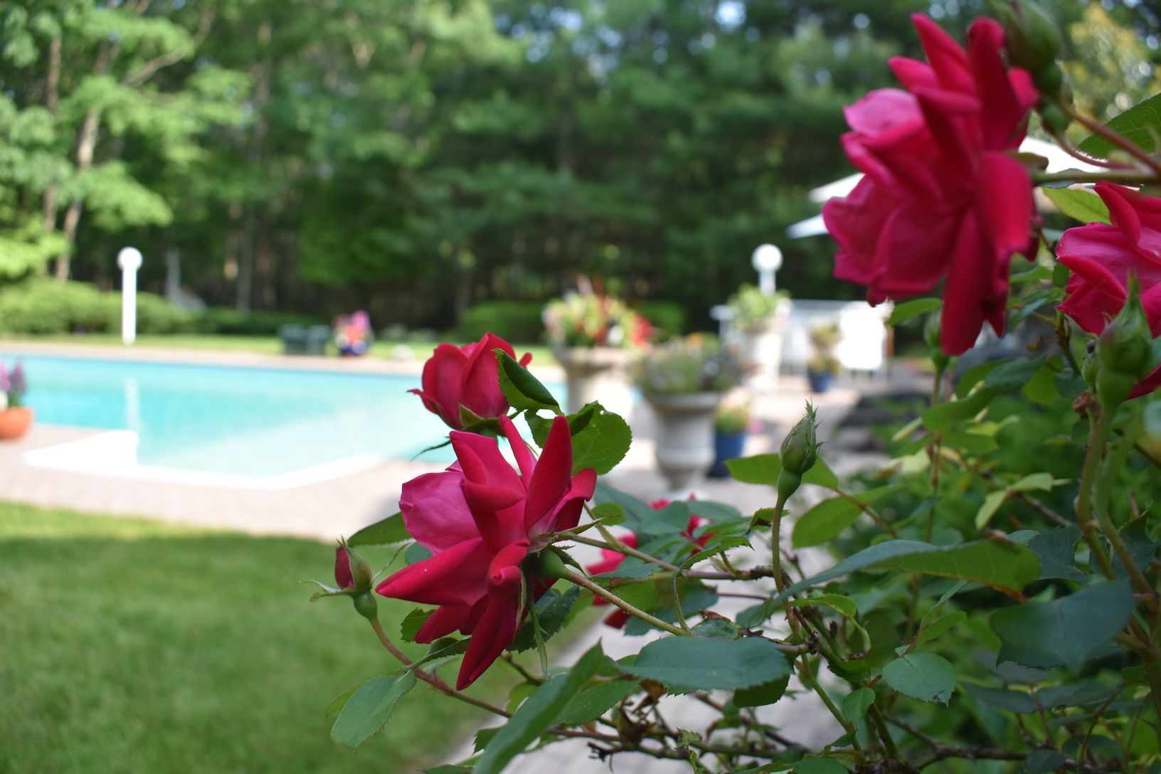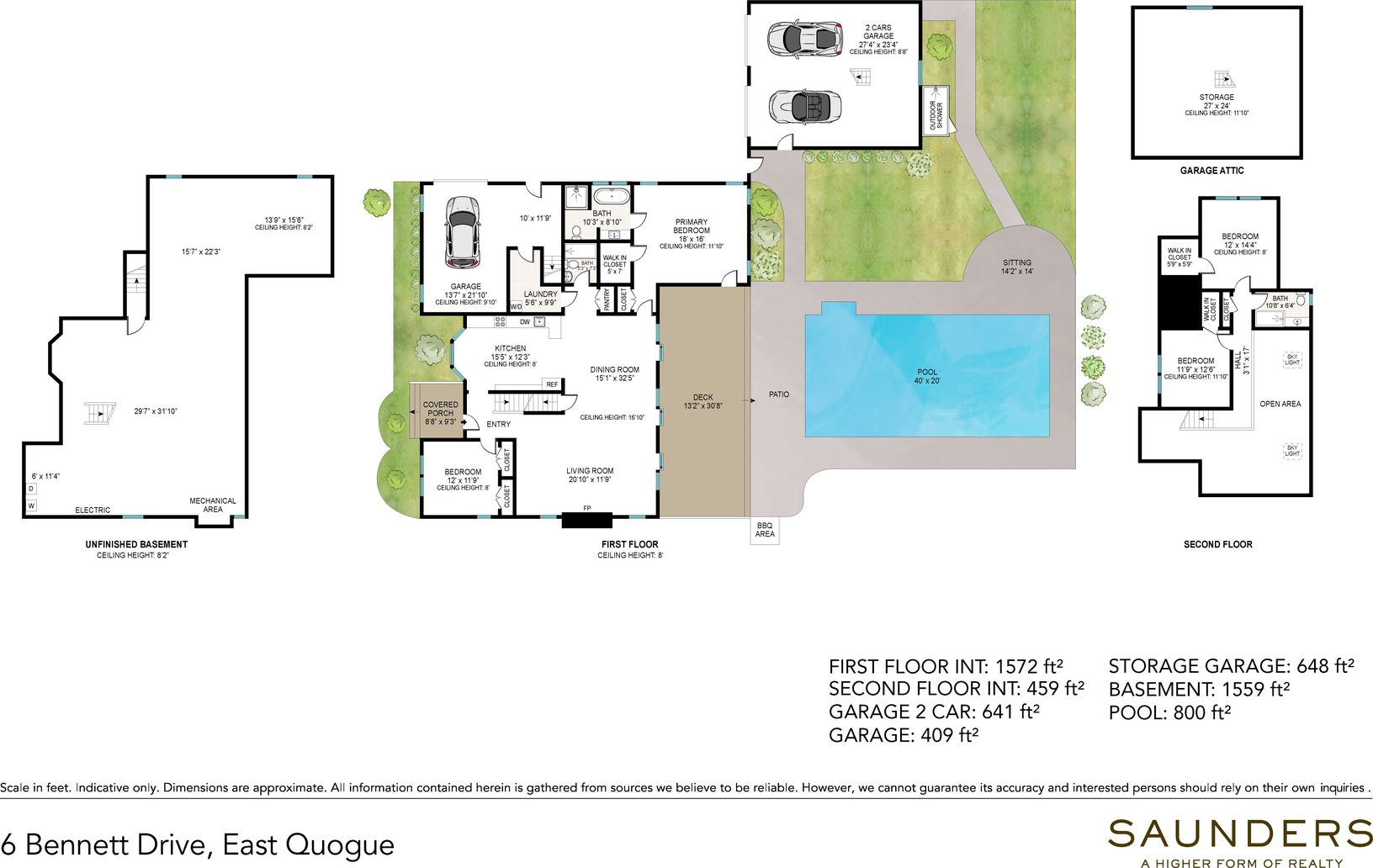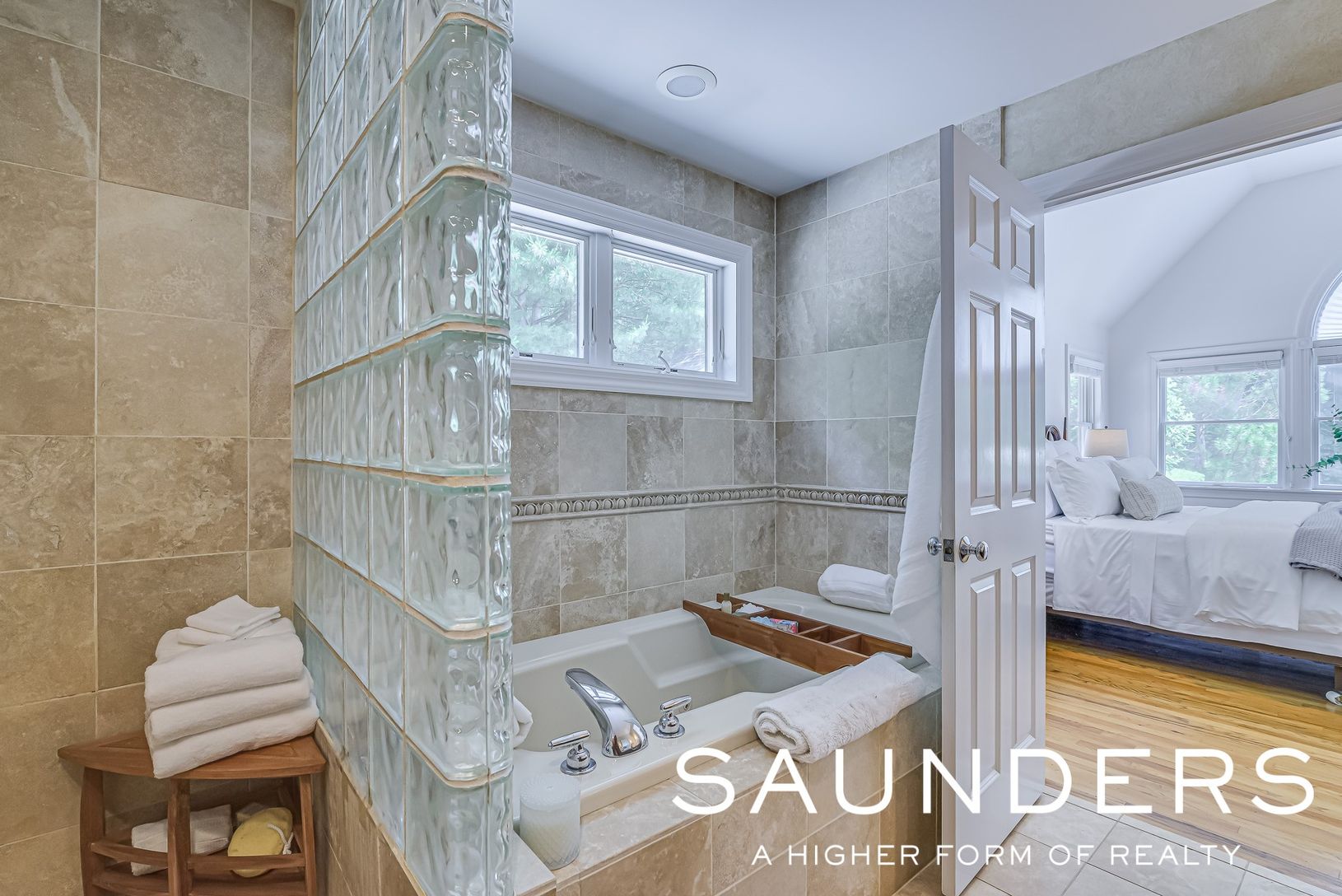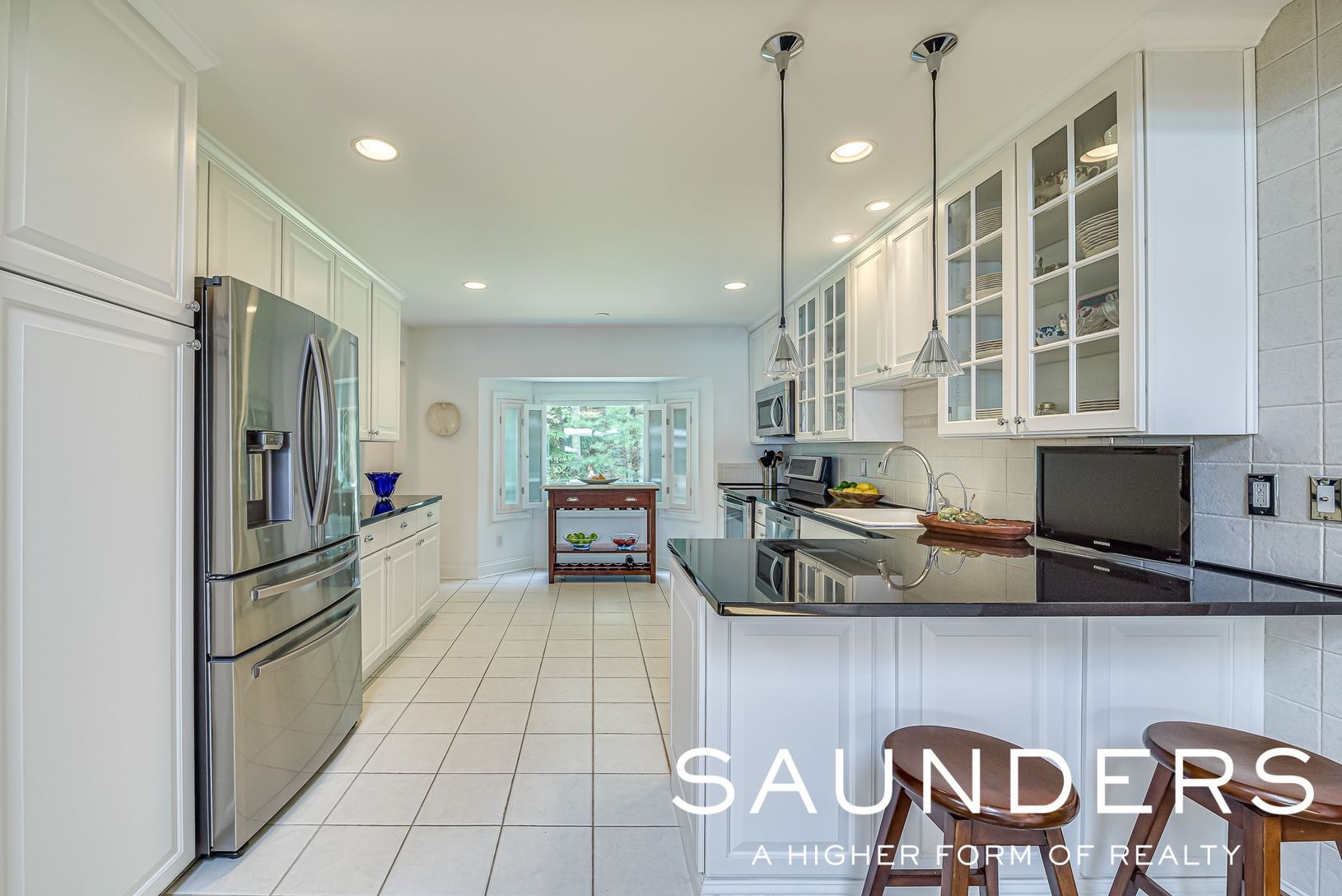 Nestled in privacy on a cul-de-sac in East Quogue, this Hamptons retreat offers a fabulous rear yard with a heated swimming pool, paver patio, Trex deck, and beautiful landscaping with specimen trees on a wooded shy acre. The outdoor setting enjoys southeast exposure and welcomes al fresco dining and lounging. There is an extra-large 672 +/- sq. ft. detached 2-car garage with bonus storage loft above, plus an attached 1.5 car garage on the 2-s