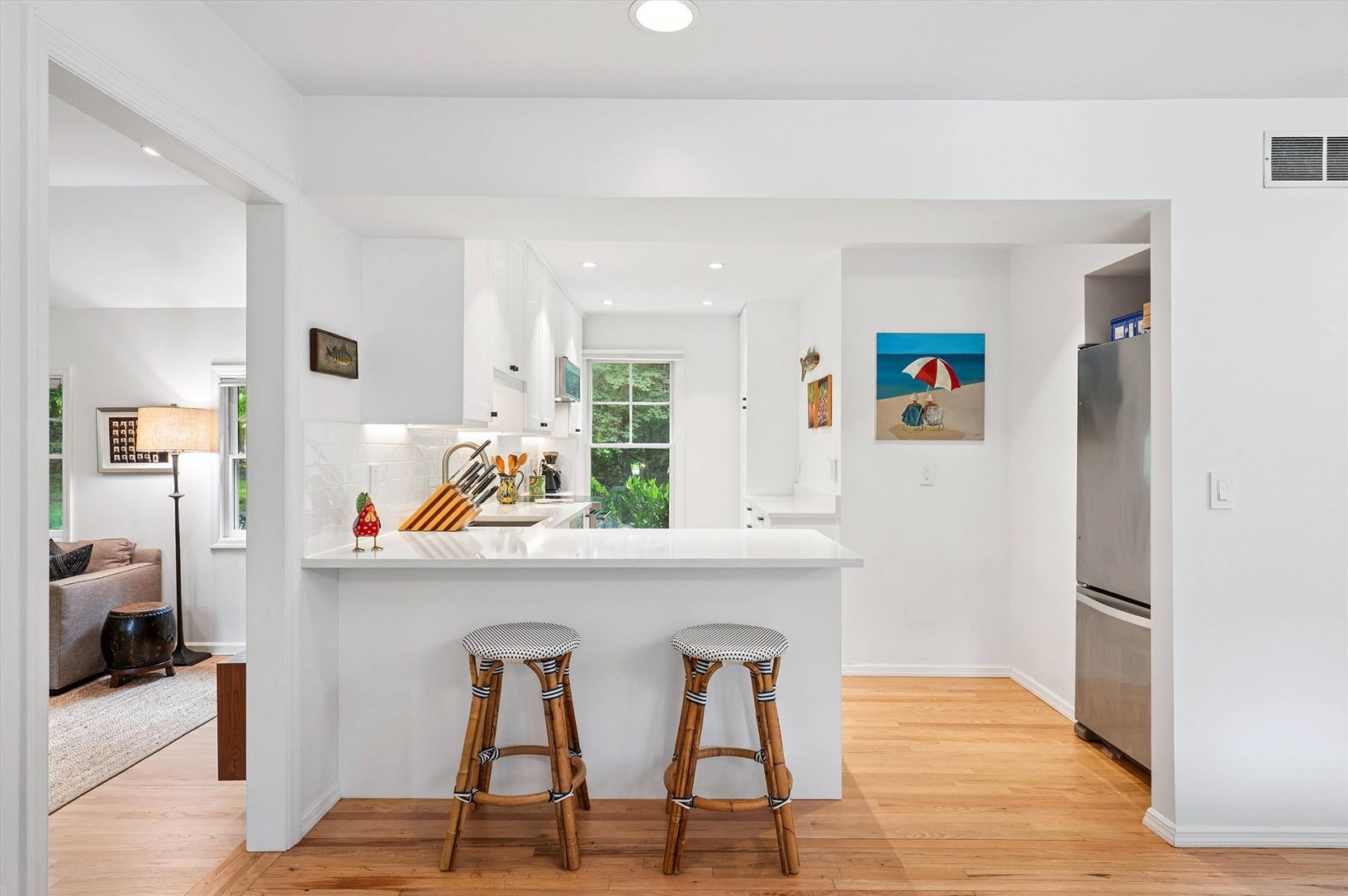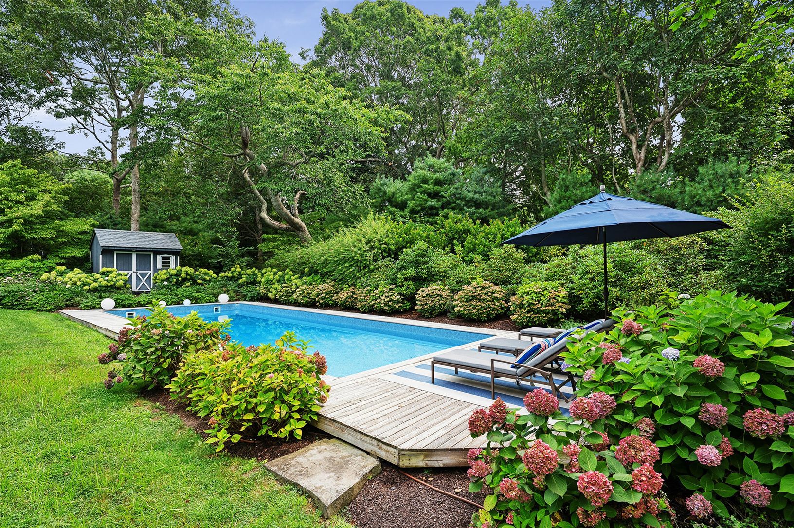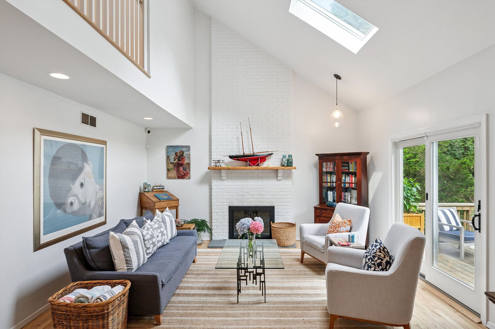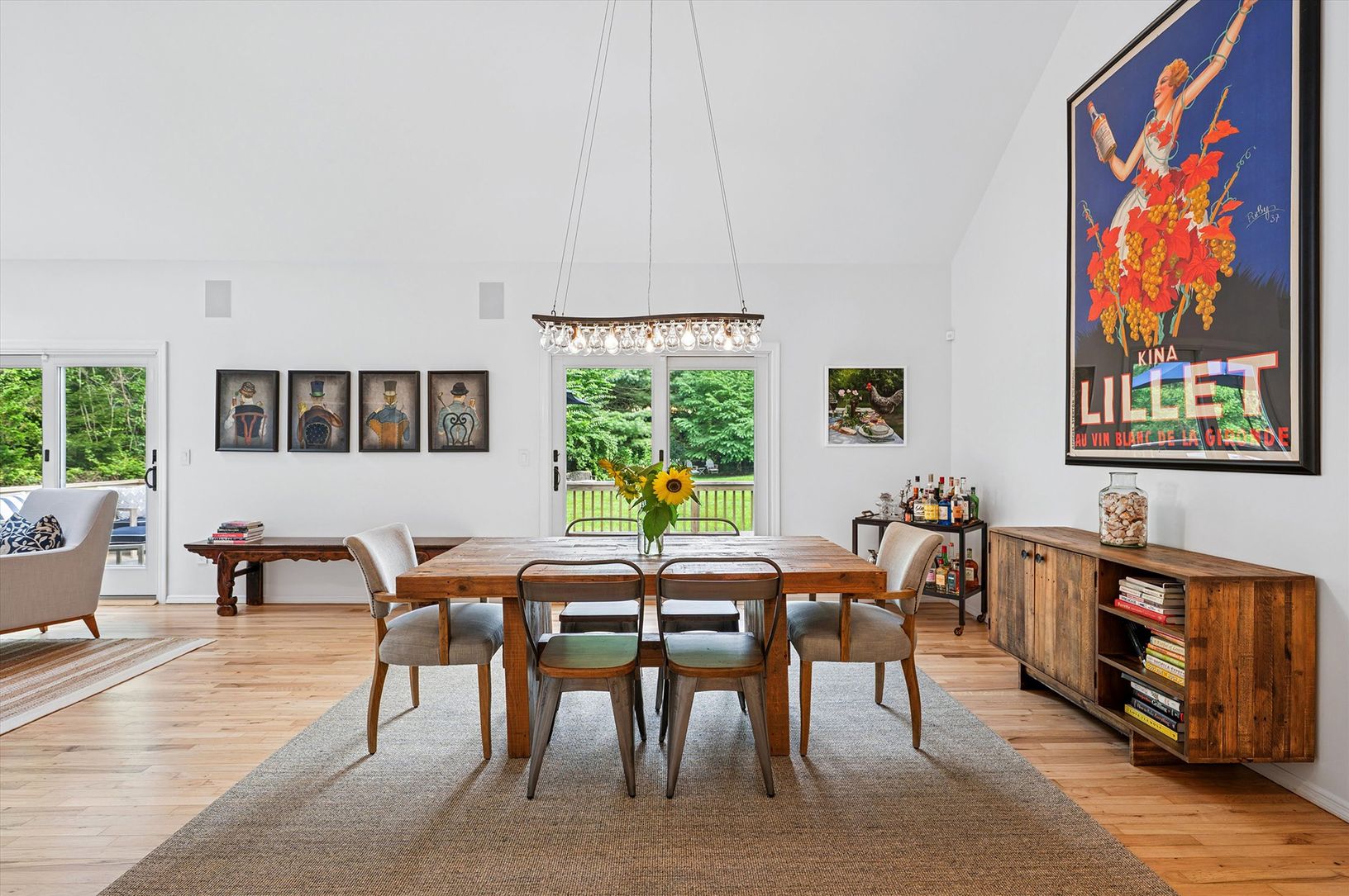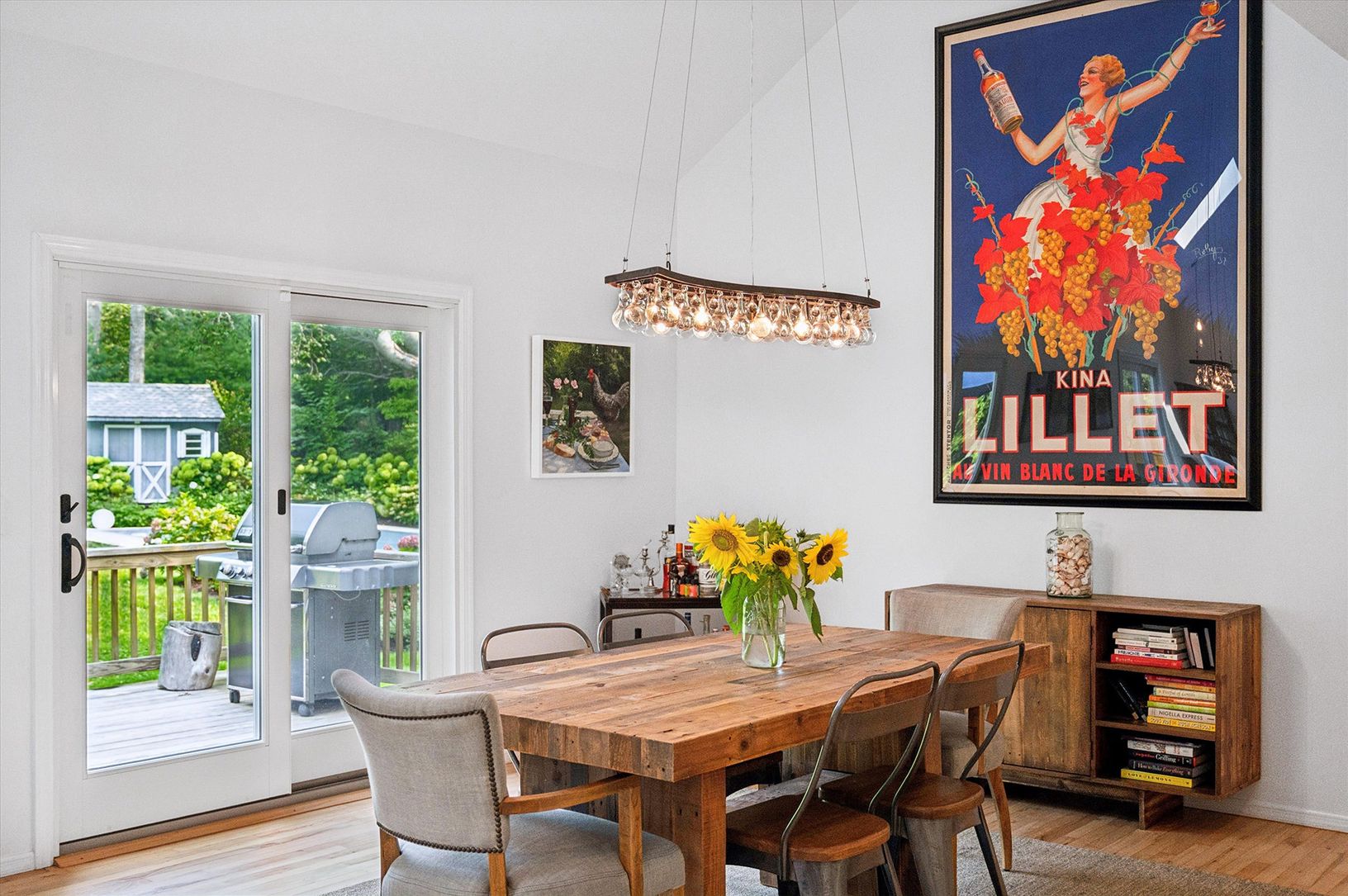 Rental Registration: 24-1416 - Discover your perfect East Hampton getaway in this charming home nestled on a private cul-de-sac. Set on 0.8 acres, this serene retreat is just a stone's throw away from Main Street and the LIRR train station, offering both privacy and convenience. The classic salt-box-style home features a bright, open great room with a traditional wood-burning fireplace-perfect for cozy evenings. Sliding glass doors lead to a s