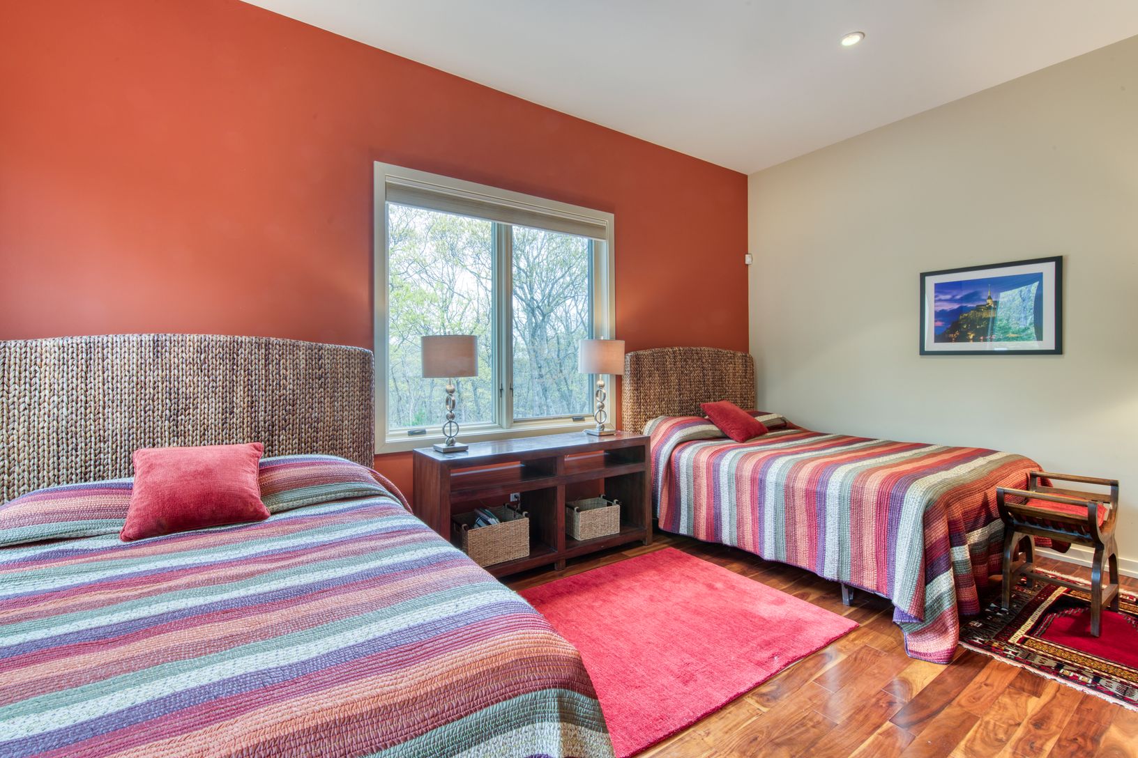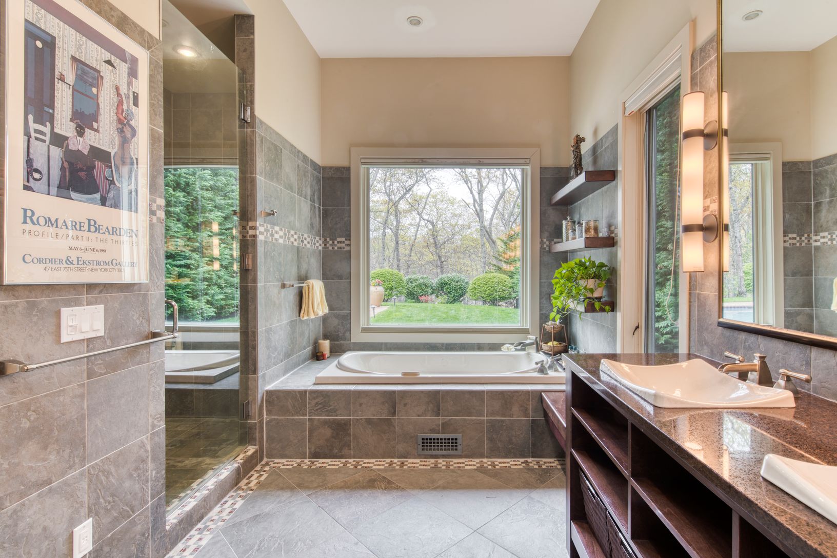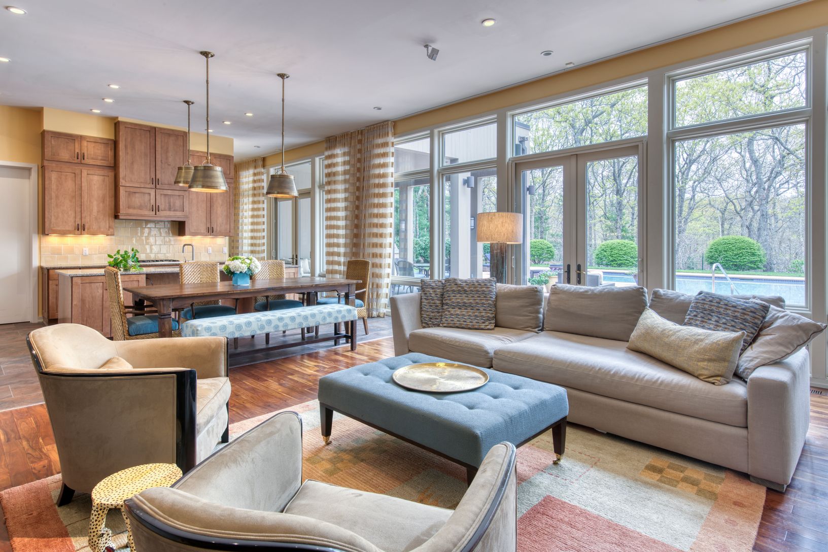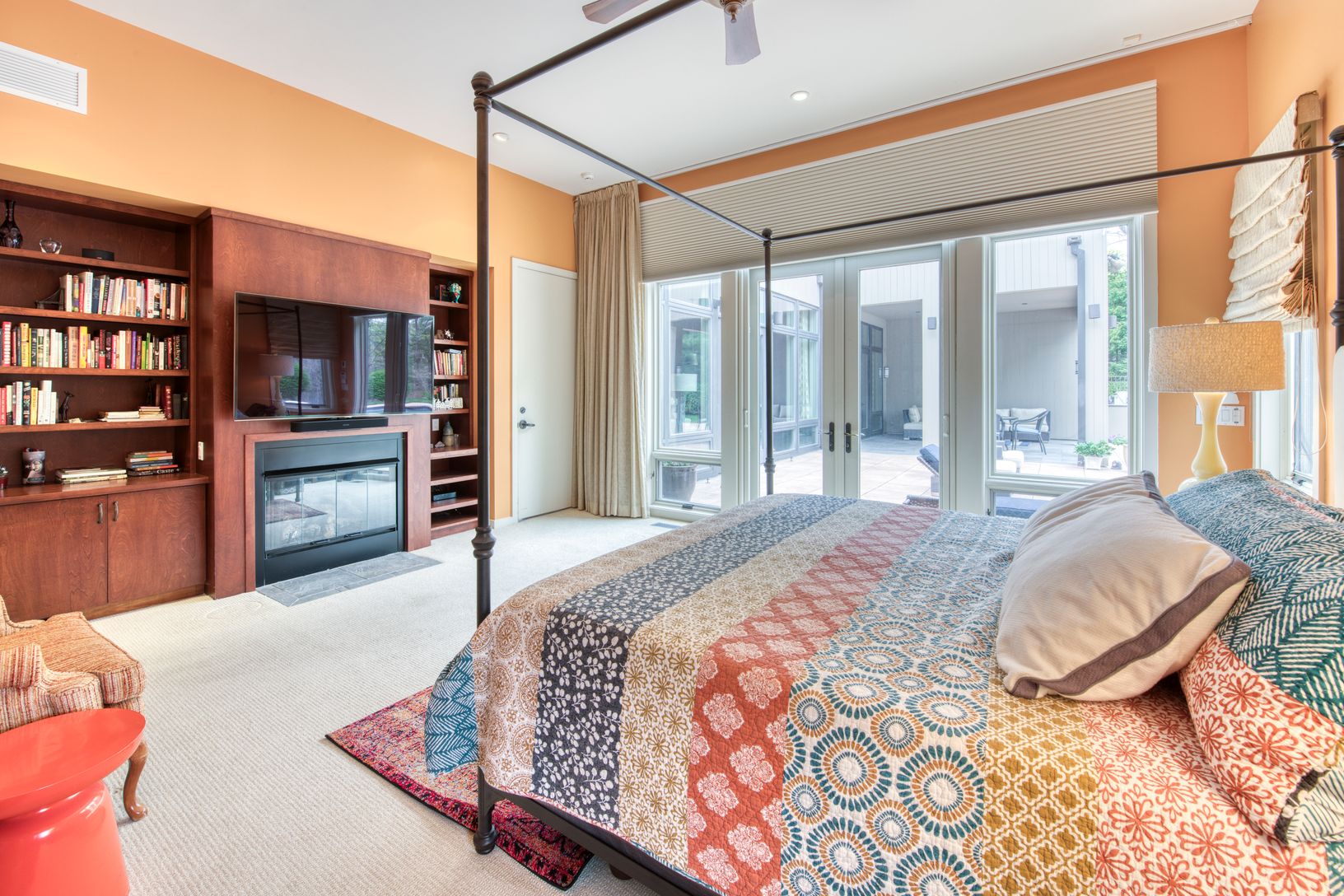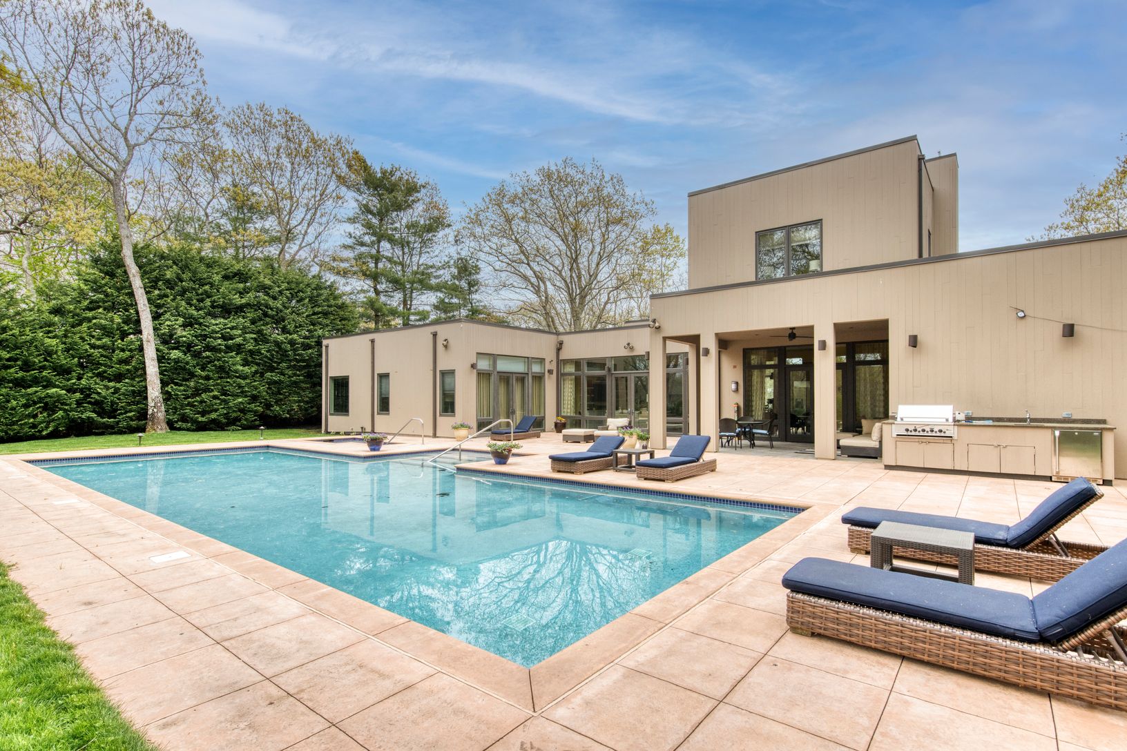 This custom-built modern home, is set high on +/- .75 acres with complete privacy. A dramatic entrance with high ceilings and glass windows and doors throughout. There is a large foyer flanked by formal living and a beautiful double-sided fireplace. The open concept kitchen, dining and great room all look through floor to ceiling glass to an oversized pool and spa, and covered porch. Nothing was spared as beautiful stone patio surrounds all. T