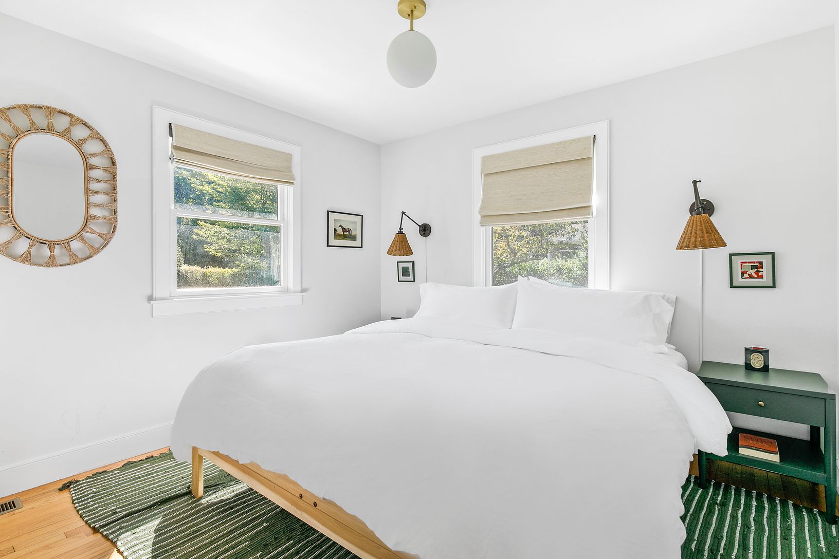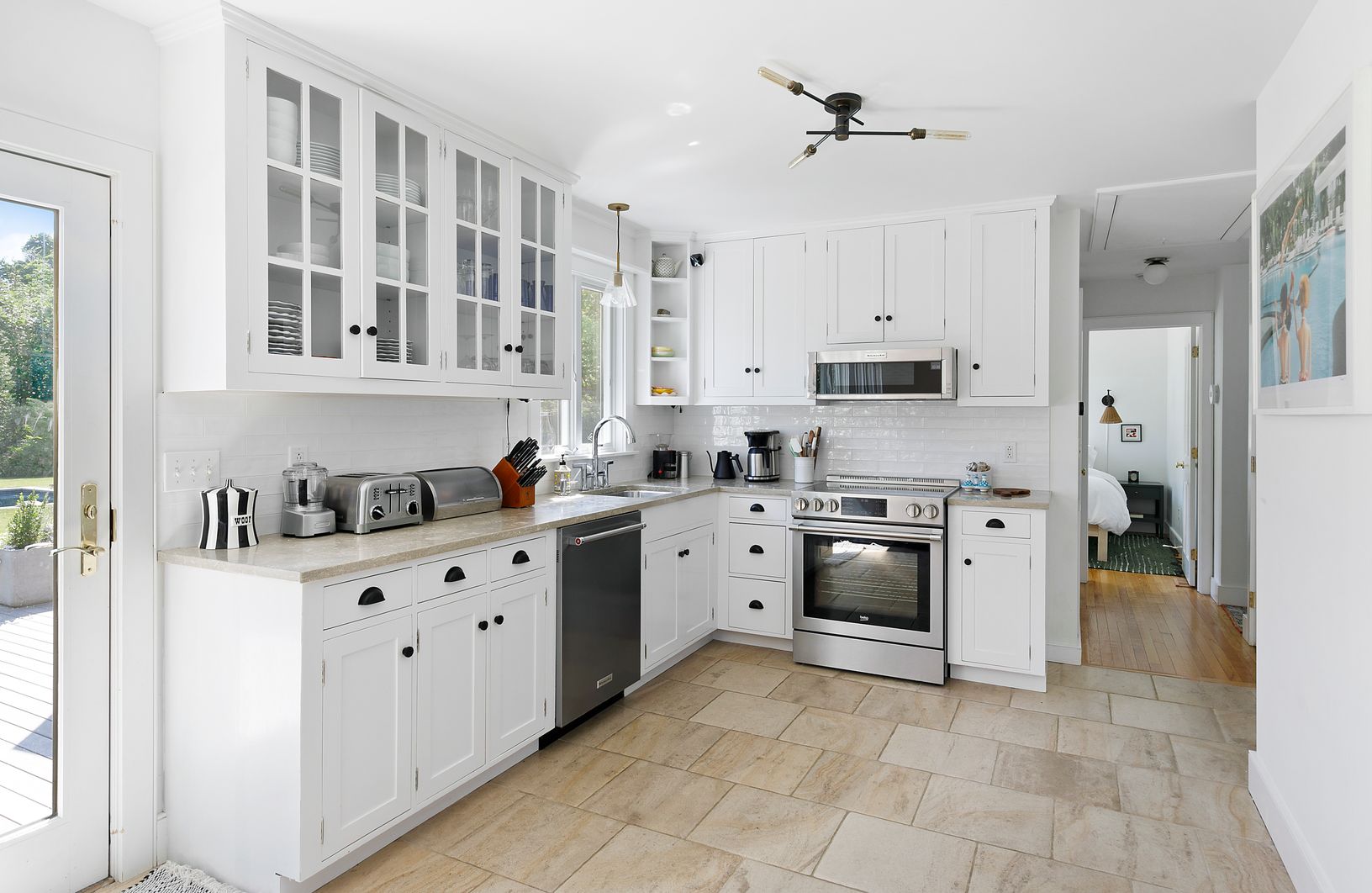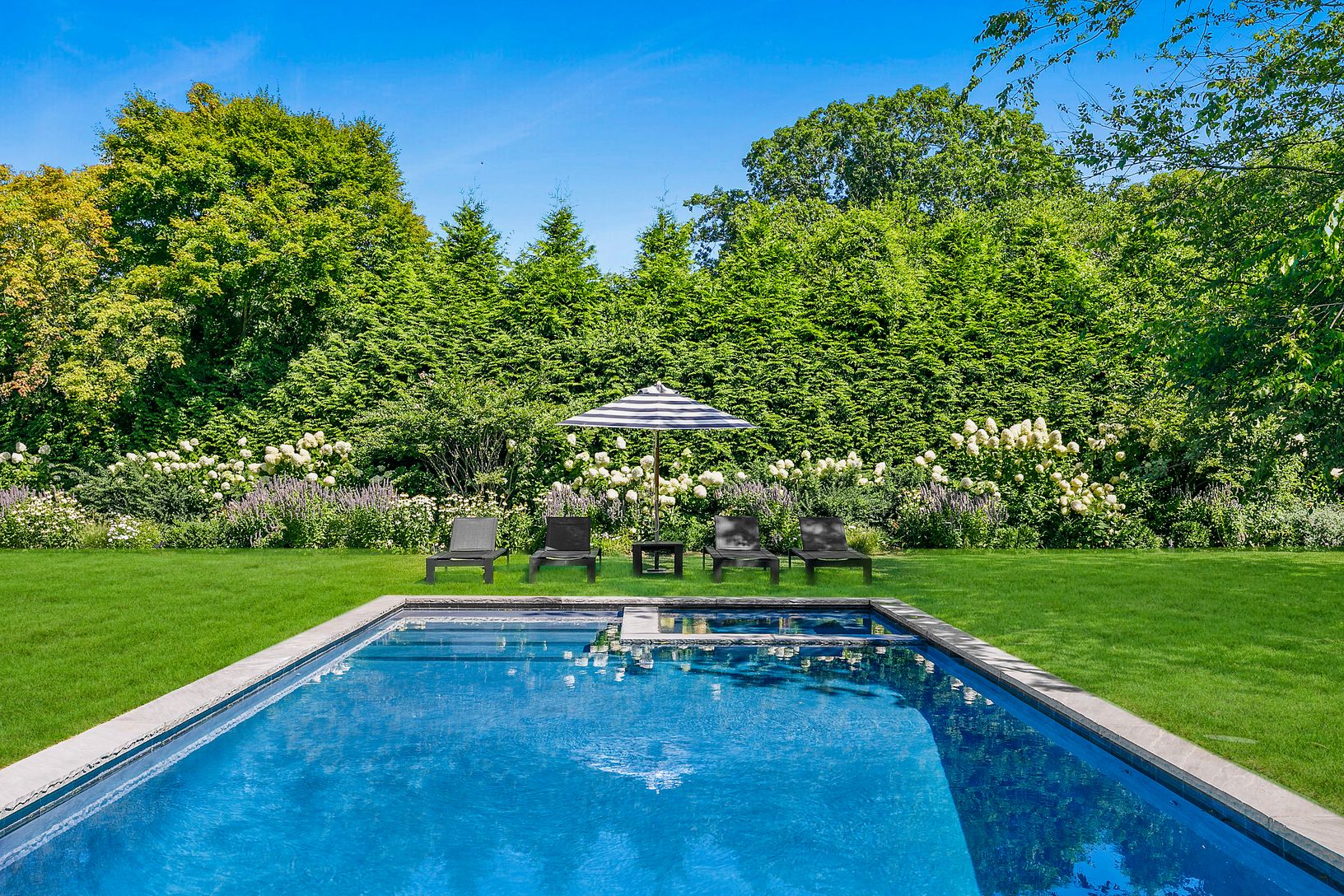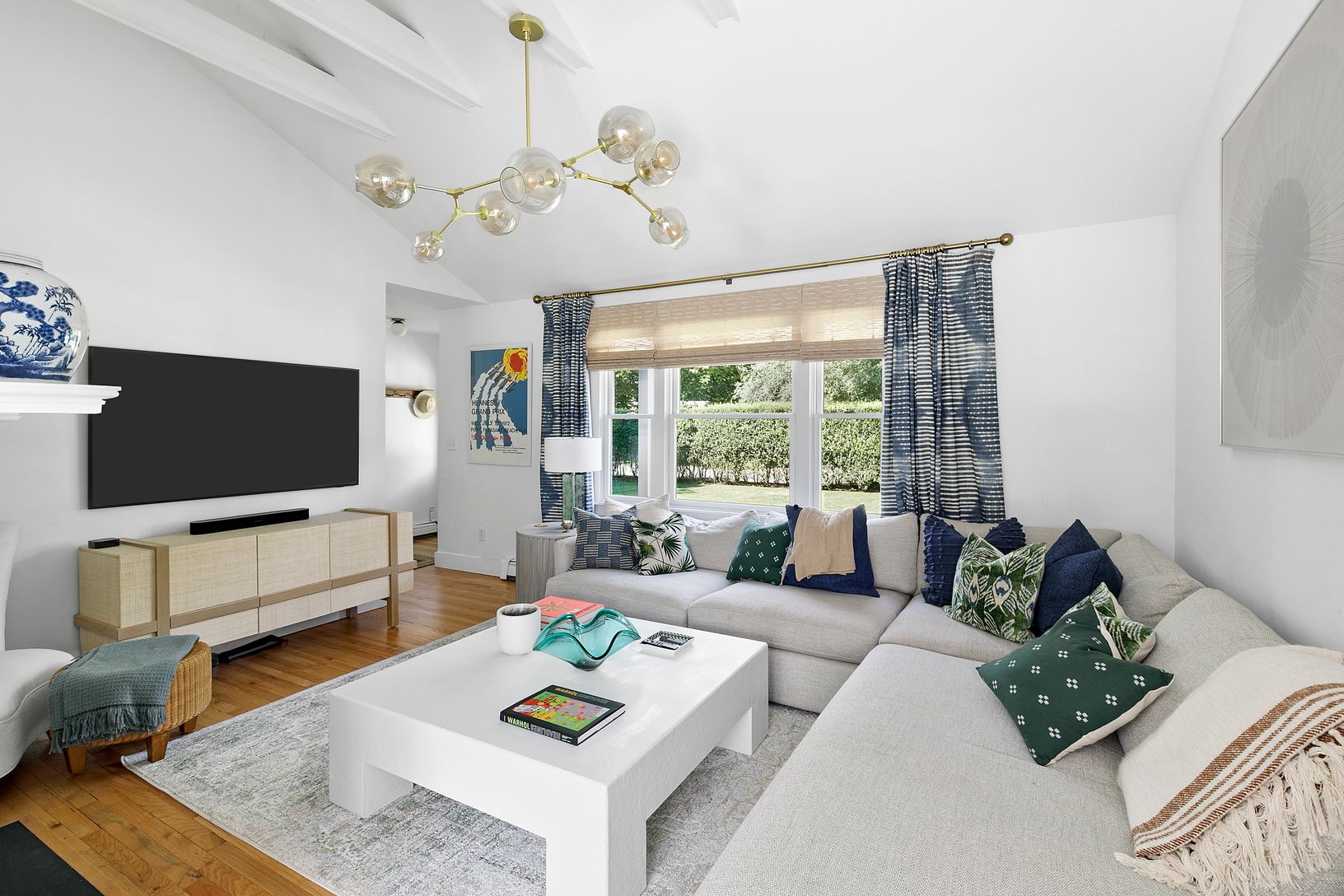 Near to the most beautiful village in the Hamptons, on a quiet cul-de-sac court, this stunningly renovated and furnished 3br 3ba home is perfectly appointed for summering in style. The living room with fireplace and separate family room both showcase exposed beams, built-ins, beautiful wood floors and tons of charm. The eat-in-kitchen features additional island seating, top-of-the-line appliances, and direct access to the oversized dining and