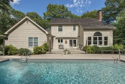 This postmodern home sits on 1+/- acre on a coveted street just moments to the village and beaches of East Hampton. A four bedroom home, including a first floor master, has lots to offer everyone; an open kitchen for easy cooking and entertaining, a large living room with a wood-burning fireplace plus a formal dining room and a den. The pool, set in an expansive deck, is adjacent to a reserve giving you privacy in and out of the home. For the