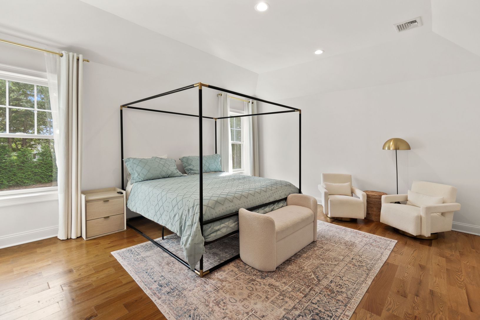 Welcome to 6 Clara Drive — a modern Hamptons retreat that perfectly blends luxury, privacy, and nature. Completed in 2023, this exceptional new construction sits on 3.79 acres of beautifully wooded land at the end of a quiet cul-de-sac in the coveted Southampton Pines development in East Quogue. Designed for comfort, functionality, and timeless appeal, the home offers 5 spacious bedrooms, 4.5 bathrooms, and the rare combination of modern craft
