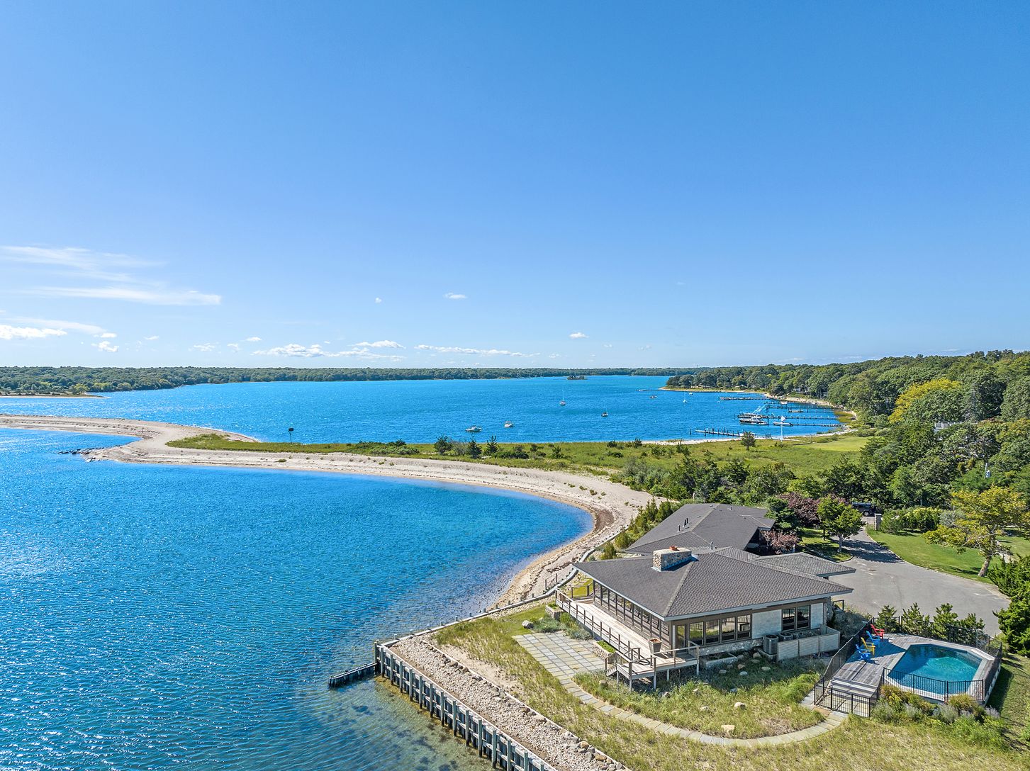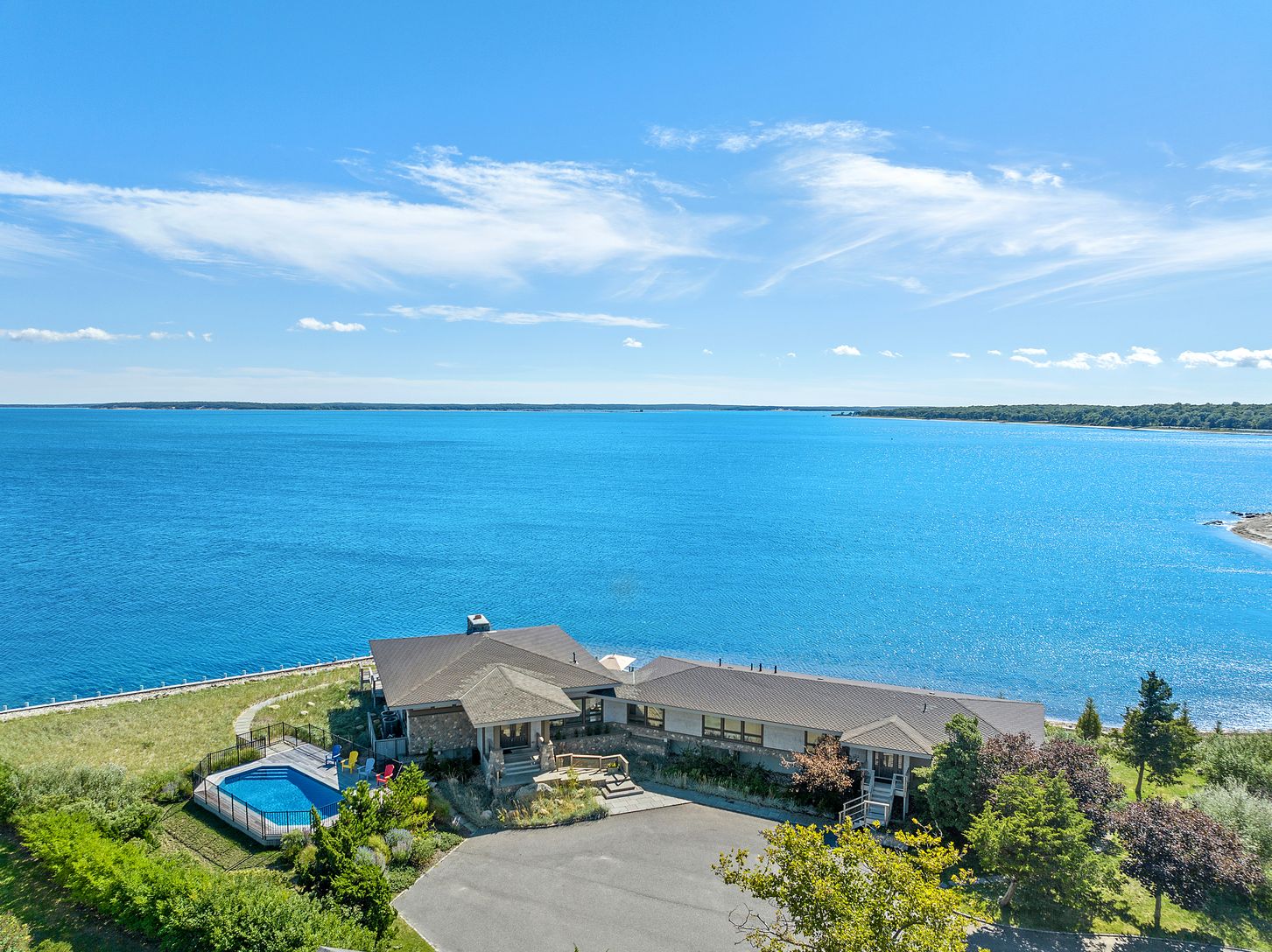 Own the Ultimate Beach House on Shelter Island's prestigious Ram Island with over 300 feet of beachfront. Watch the Sunrise and the Sunset overlooking Gardiners Bay and Coecles Harbor. The 270 degree water view encompasses Coecles Harbor, Shelter Islands Mashomack nature preserve, Cedar Point Lighthouse, East Hampton's Northwest, Gardiners Island, Orient Point, and on a clear day you can see all the way to Montauk !! The house is comple
