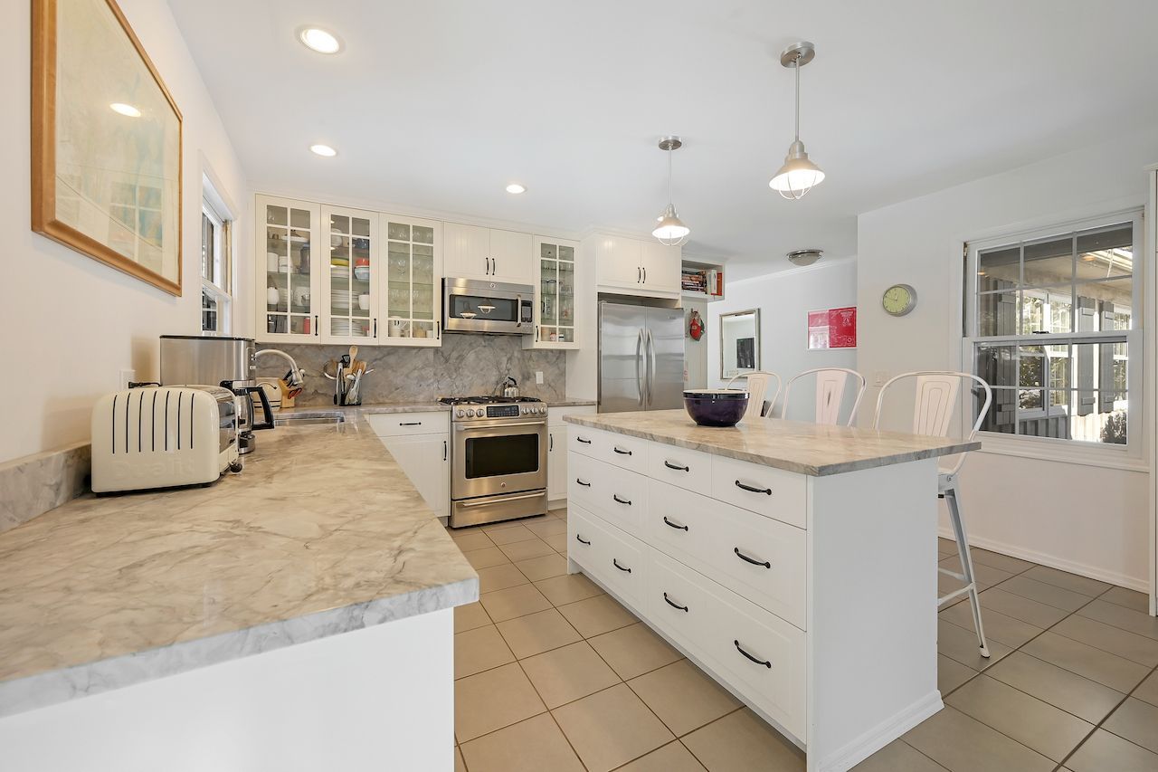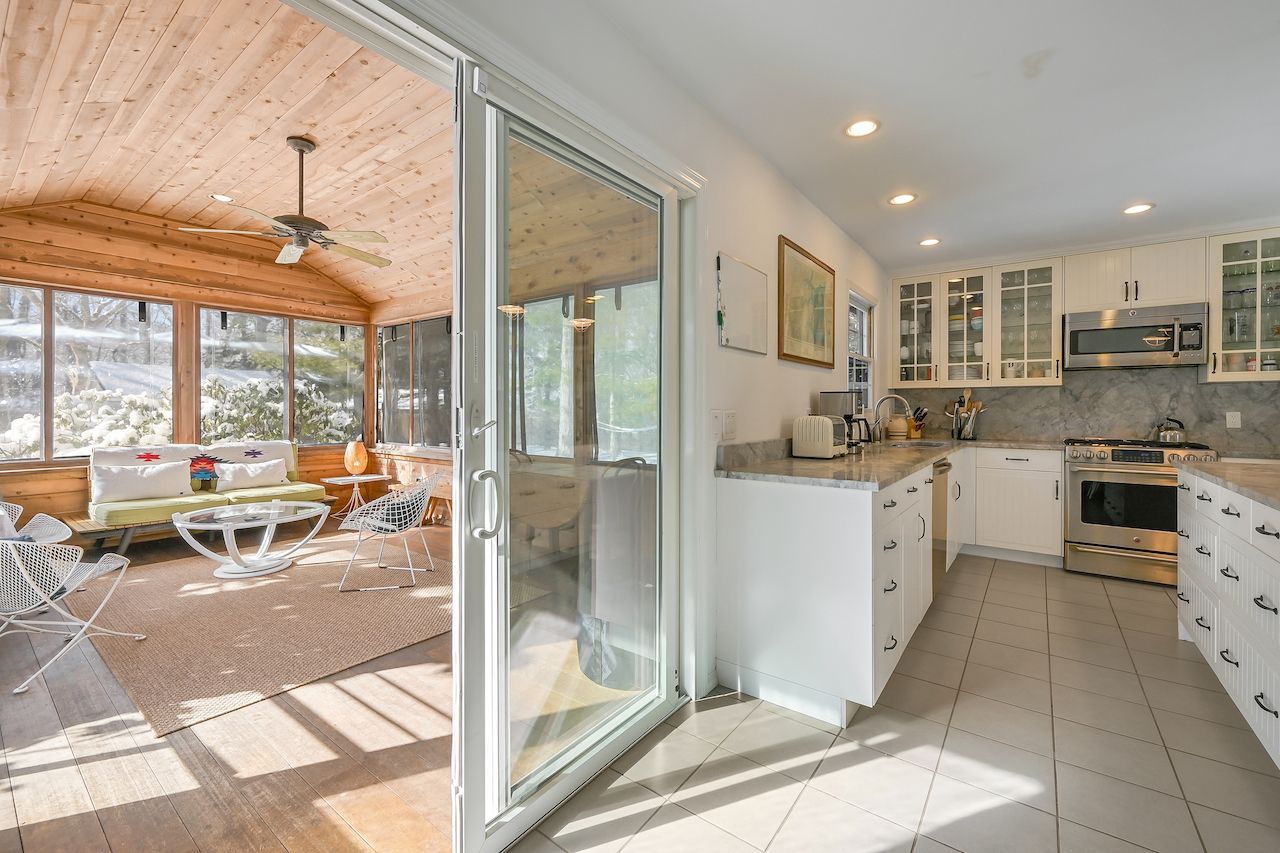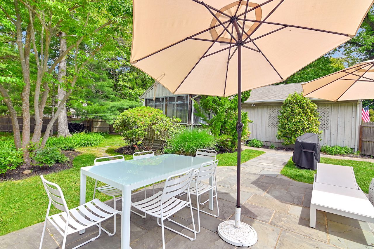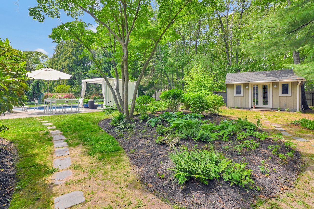 Wooded property and seasonal variety landscaping surround this traditional ranch. Updated kitchen with island counter and eat-in dining space. Screened in furnished porch and out door breakfast area off kitchen. One level home features en suite master plus two bedrooms and additional bath. Spacious light filled living room with fireplace and window seat and dining area. Separate home office structure. Heated Vinyl Pool and Cabana area. Attac
