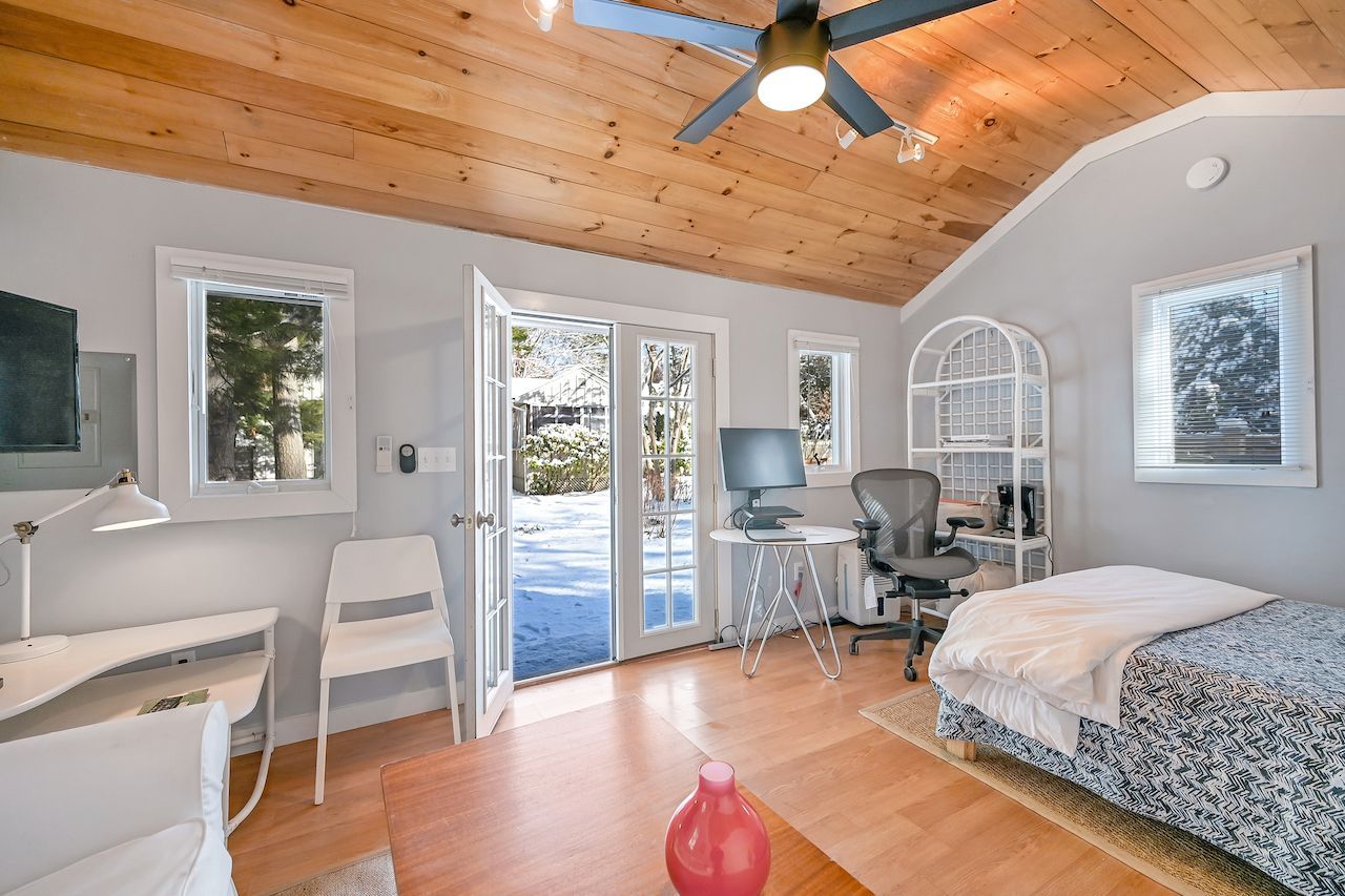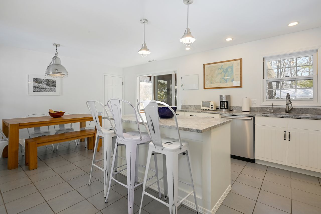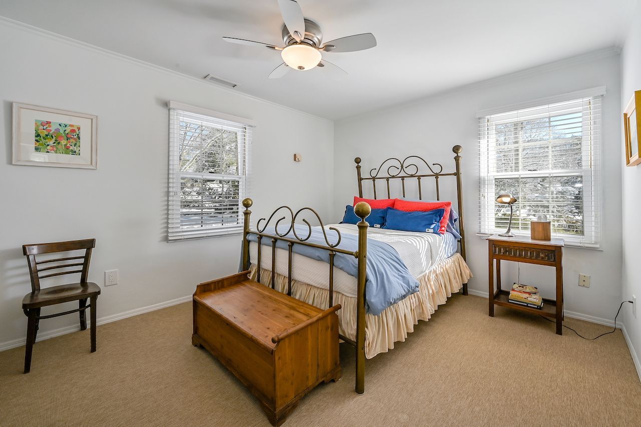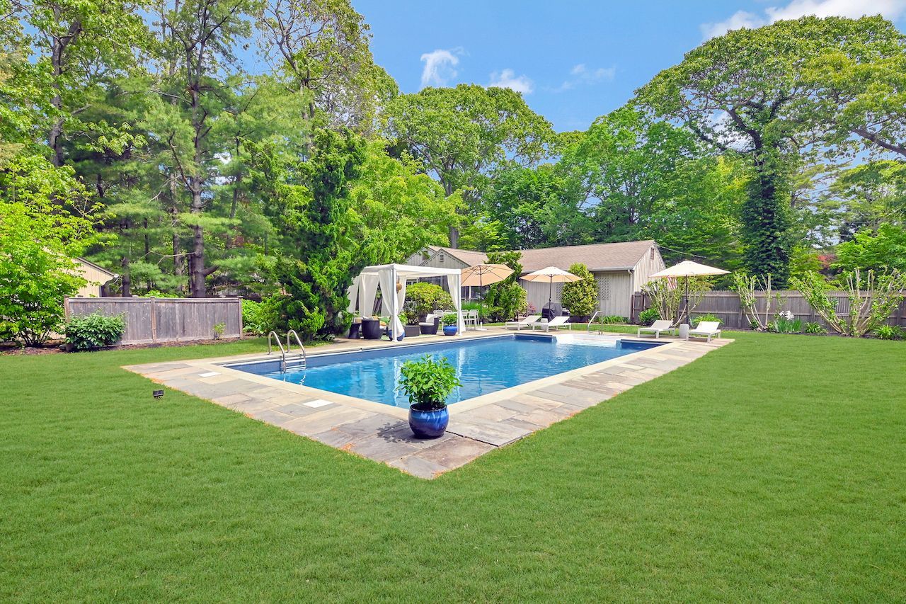 Wooded property and seasonal variety landscaping surround this traditional ranch. Updated kitchen with island counter and eat-in dining space. Screened in furnished porch and out door breakfast area off kitchen. One level home features en suite master plus two bedrooms and additional bath. Spacious light filled living room with fireplace and window seat and dining area. Separate home office structure. Heated Vinyl Pool and Cabana area. Attac