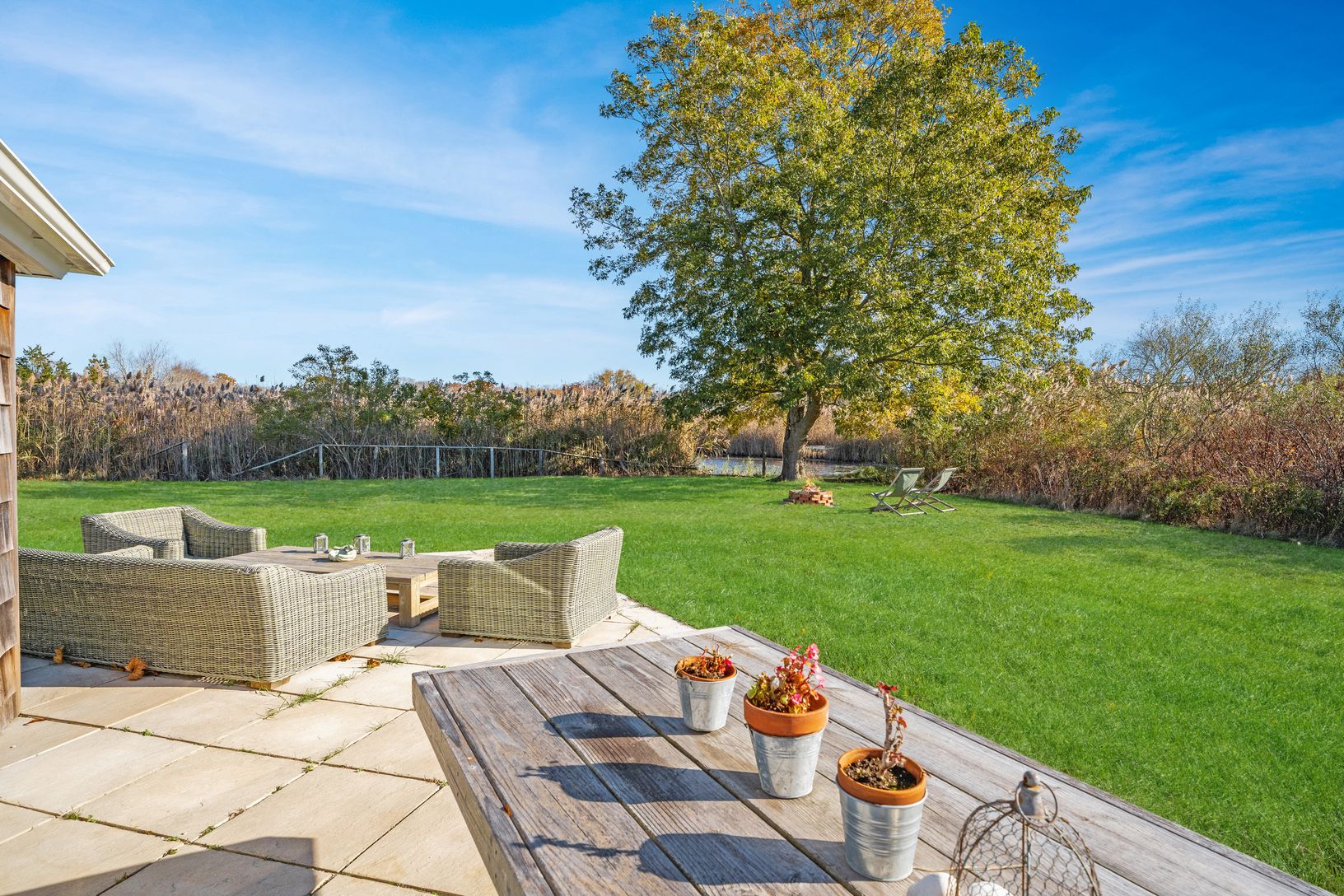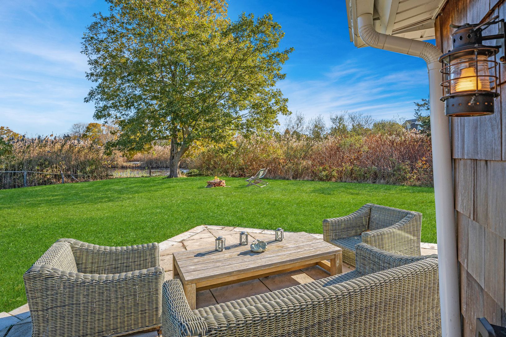Available October 1-May 1. 6 Cricket Path is a 3 bedroom,3 bath cottage tucked away off one of the most desirable lanes in Remsenburg. Once an ice house and barn, this home was completely refurbished in 2018, with an all-new kitchen, part of an open living space with dining and sitting rooms surrounded by walls of glass overlooking a pond that borders the serene and private acre of natural meadow and grasses. The 1800+ SF first floor is being