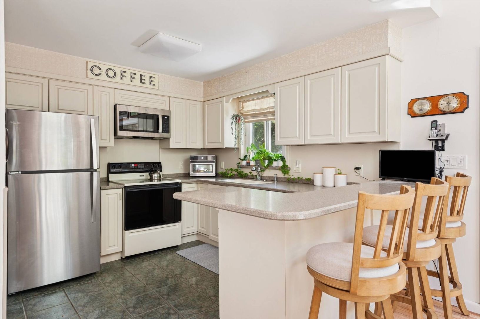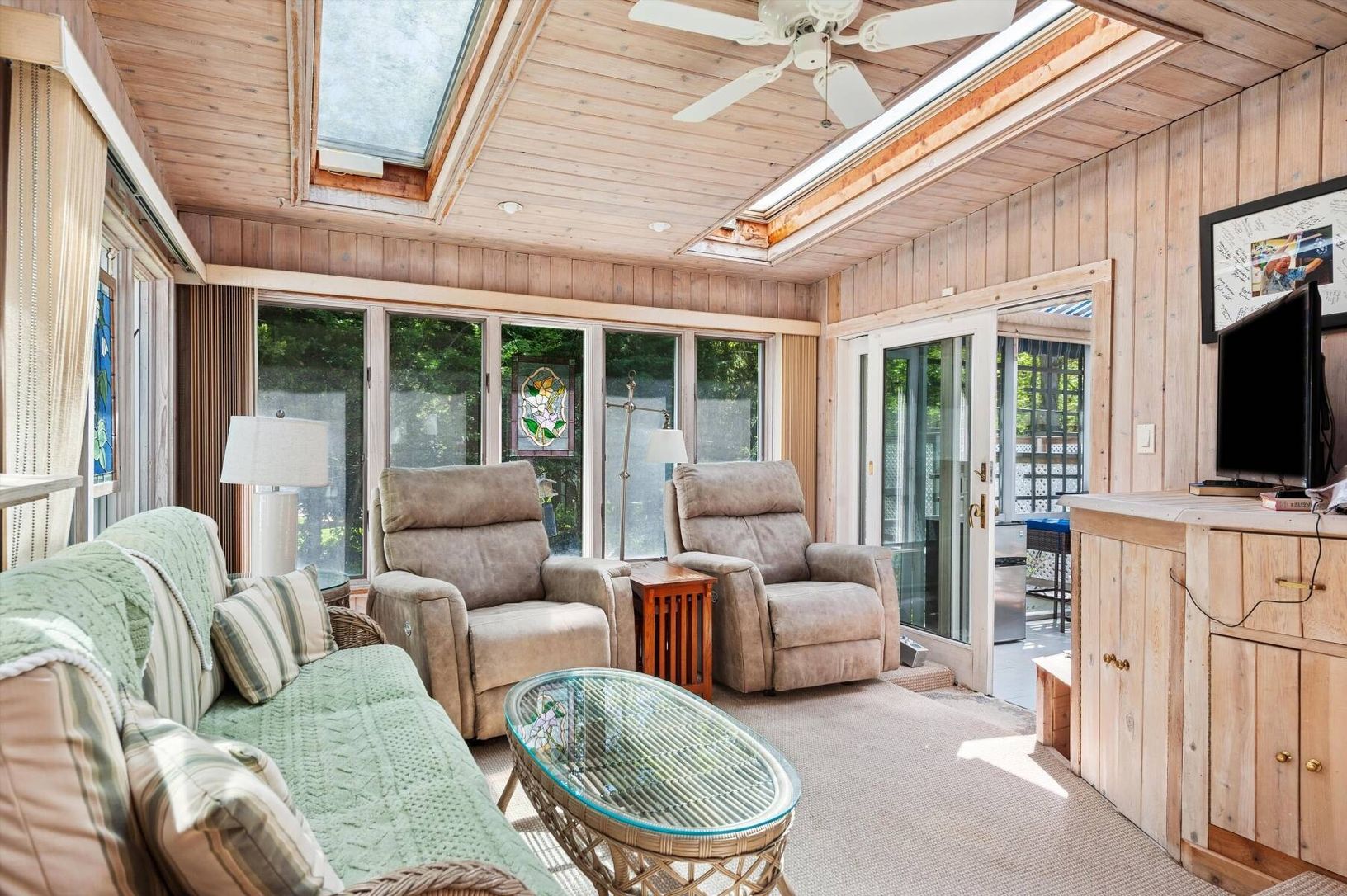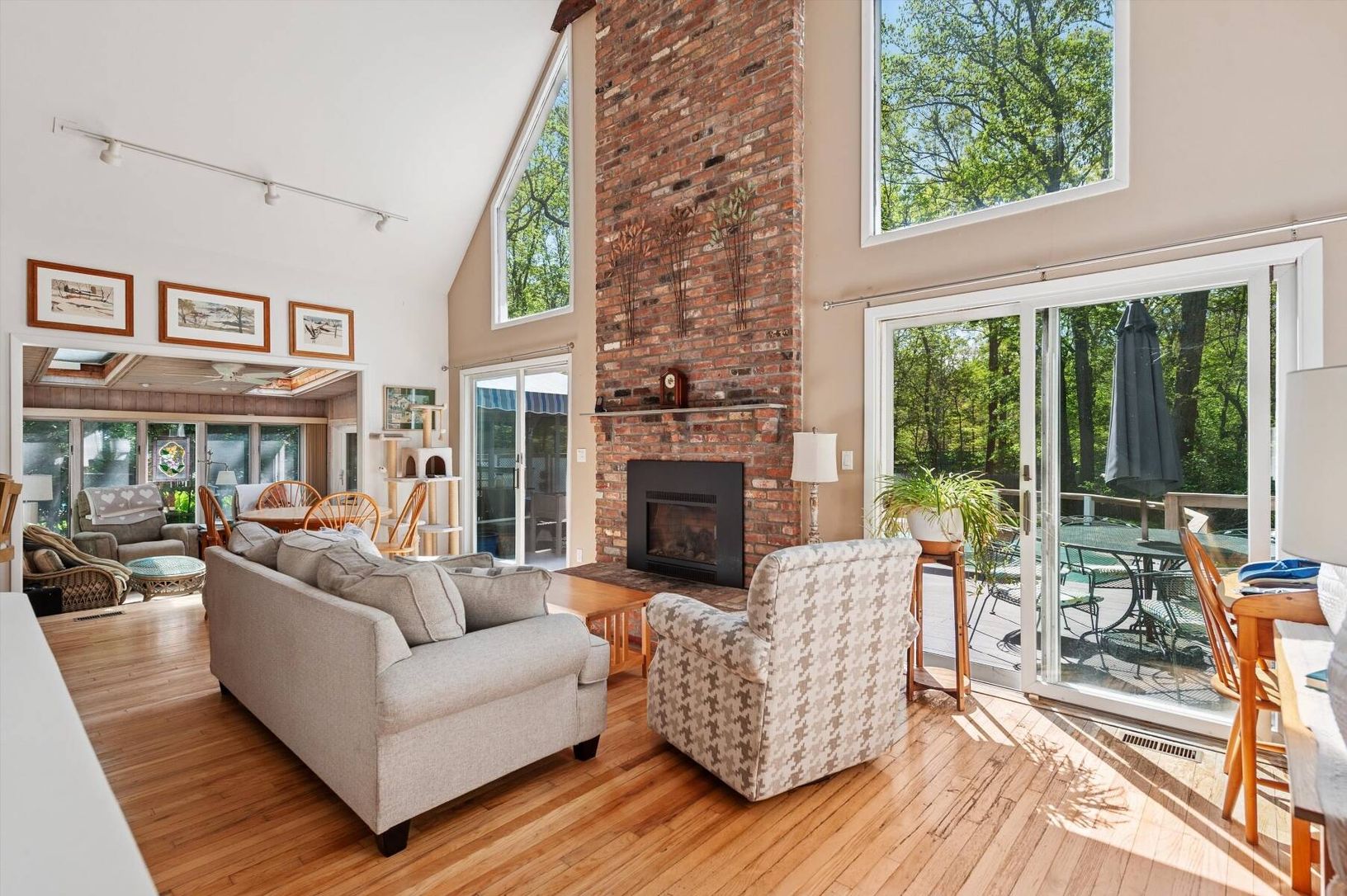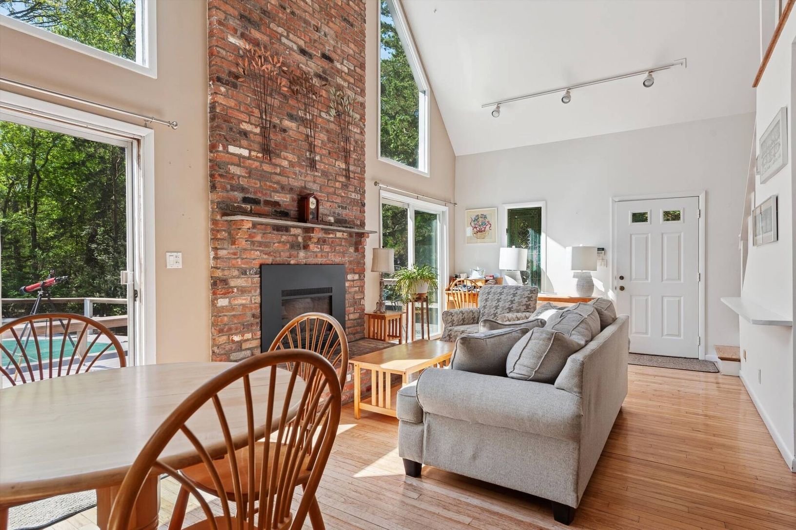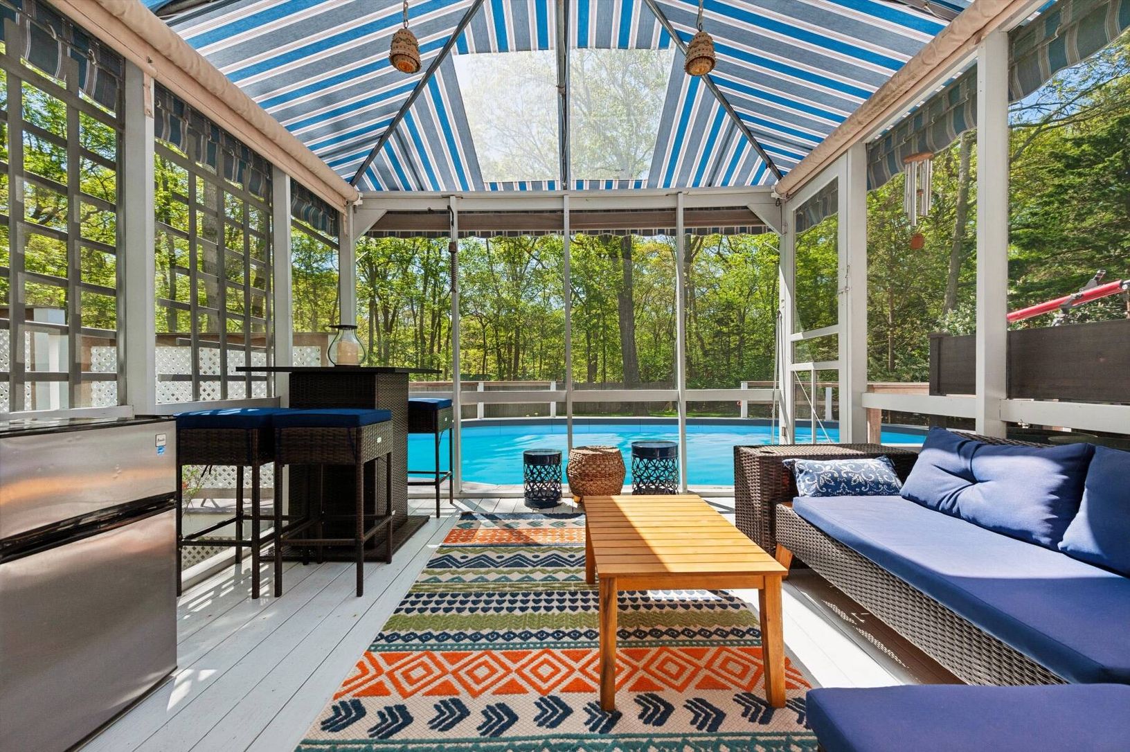 Located in a serene and private waterside enclave, this 3-bedroom, 3-bathroom beach house offers the ideal blend of relaxed elegance and thoughtful design. Set on .38 acres of beautifully landscaped grounds, the 1,472 sq ft home welcomes you with a light-filled living room featuring double-height ceilings, a wood-burning fireplace, and a dramatic wall of glass with sliders that open to an expansive deck and pool area-perfect for seamless indoo