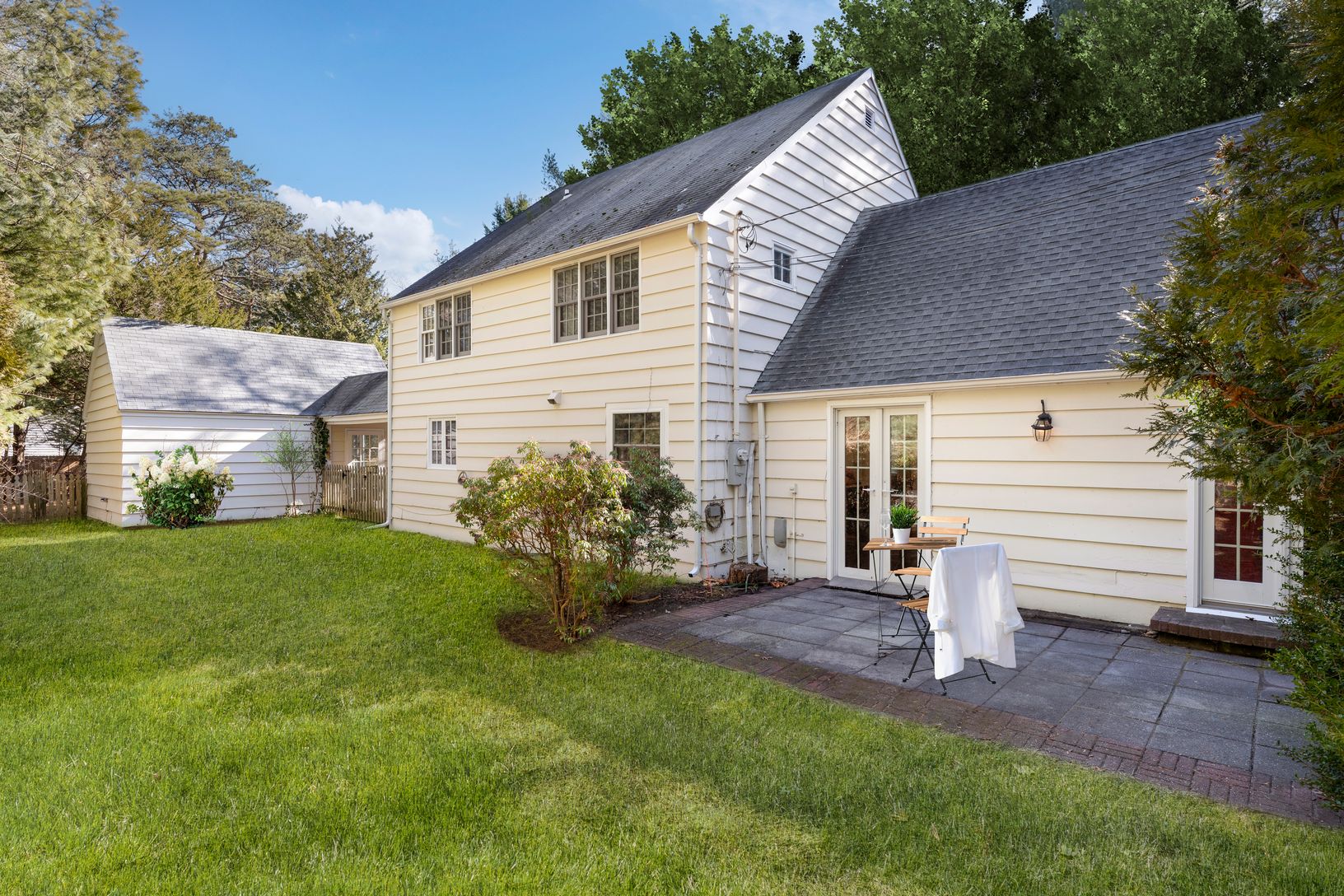 This quintessential 1920’s traditional Hampton’s cottage is ready for you to make it your own. Enter the screened porch room to the expansive den with vaulted ceiling, oversized wood burning fireplace and French doors leading to the side yard, garden vingnette. The first floor with formal dining, kitchen, full bath and one guest room brings in the light from every room. The second floor primary suite, two additional guest rooms and addition