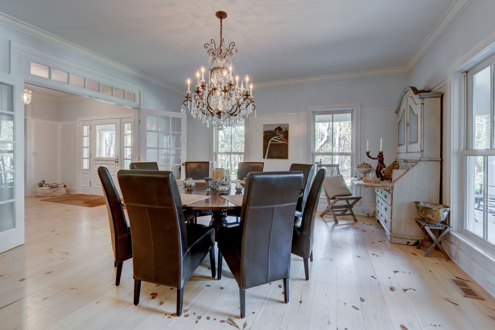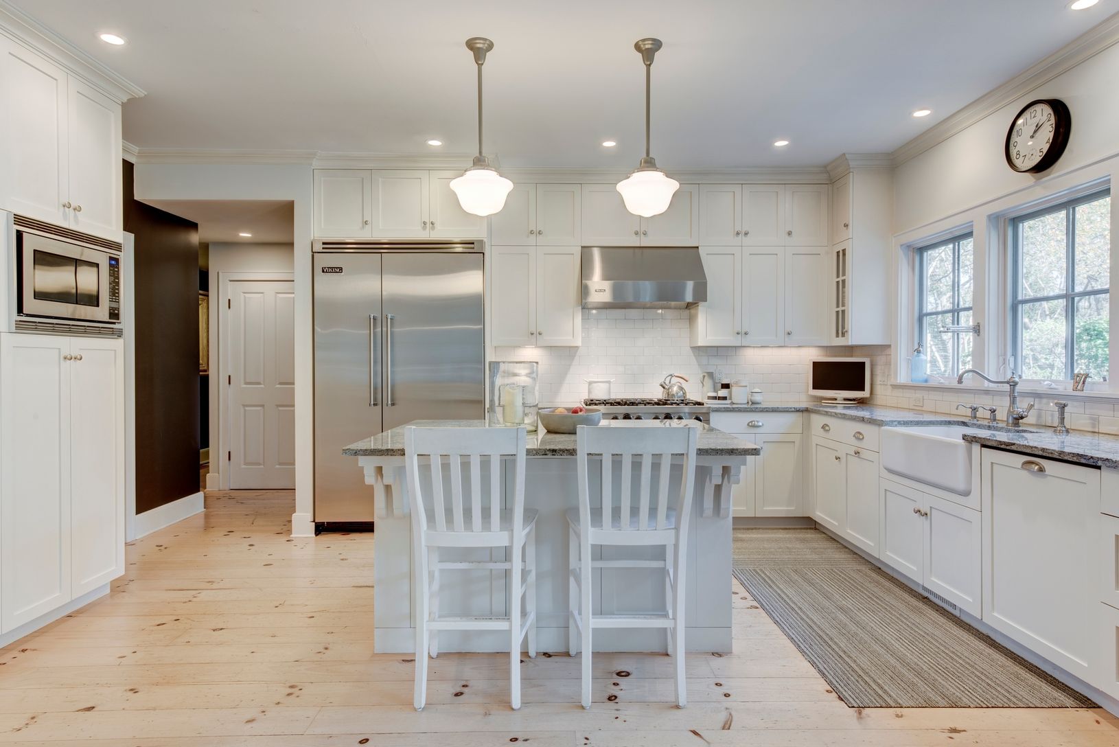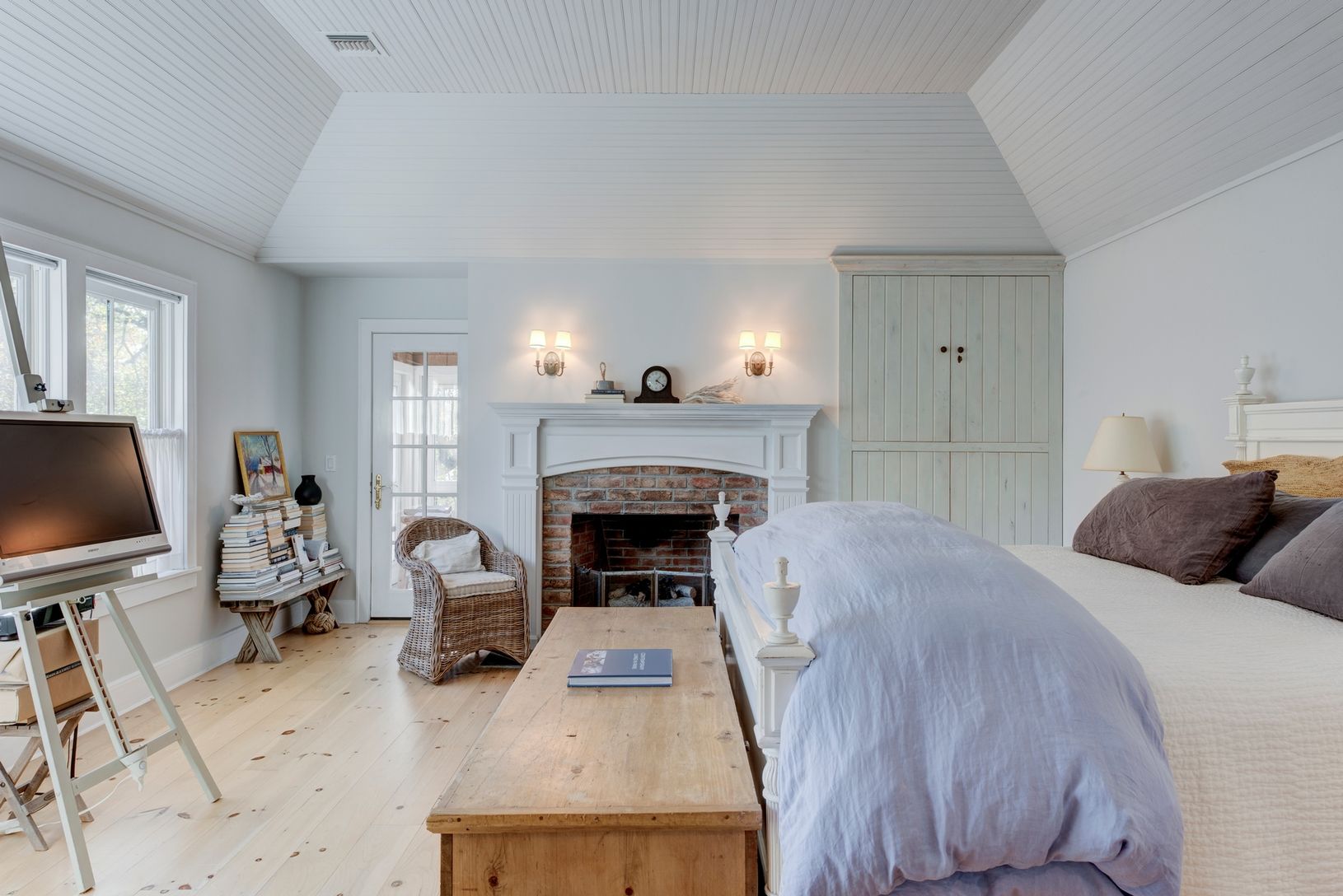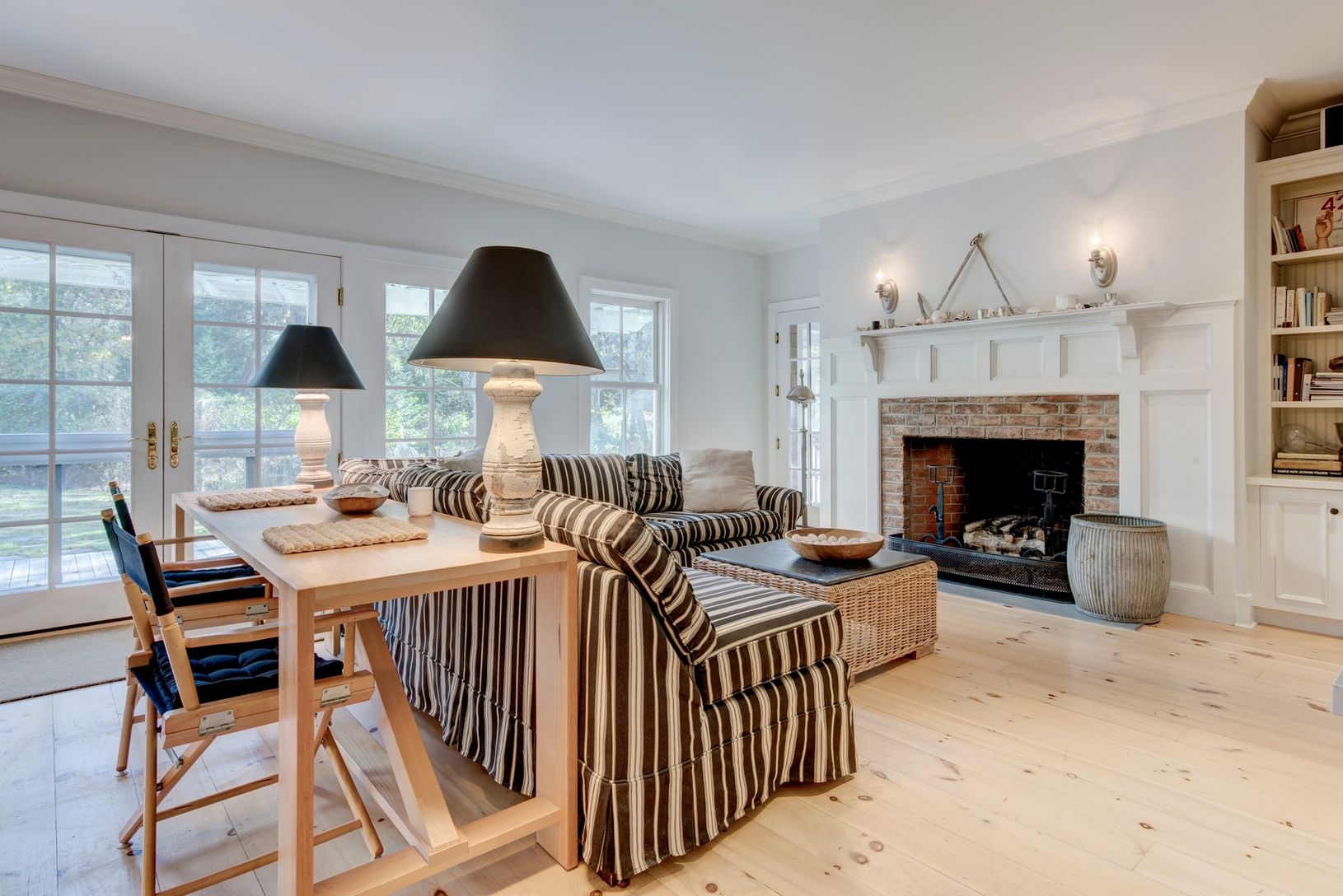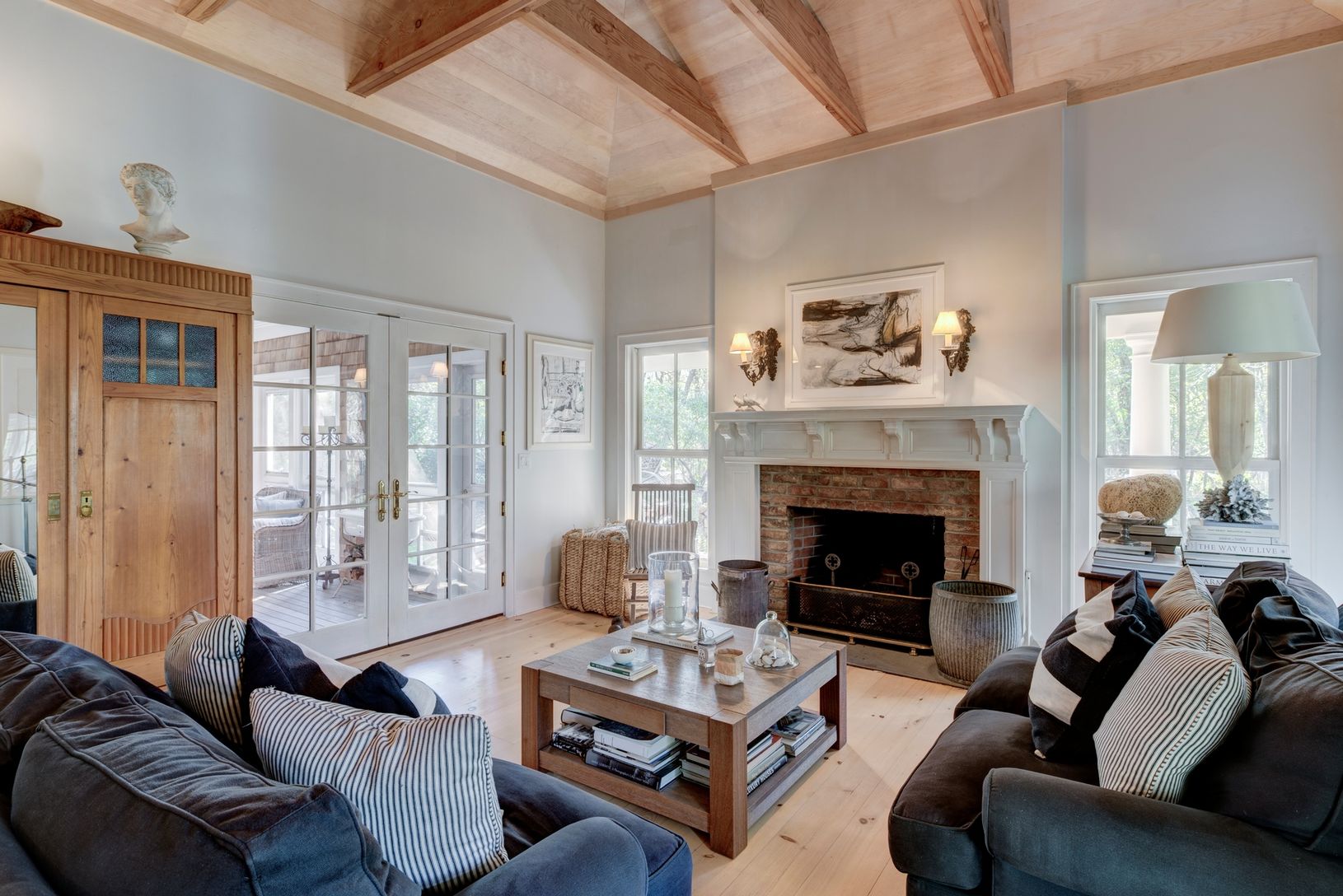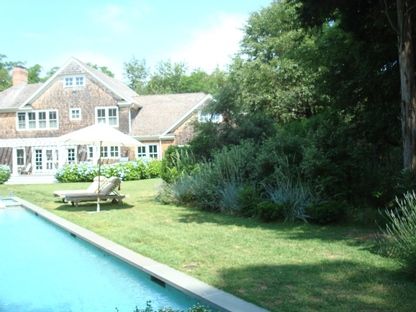 This classic two-story farmhouse is secluded on approximately two landscaped acres with a Gunite pool. This warm and inviting house features a living room with fireplace, library with fireplace, formal dining room, eat-in kitchen, four bedrooms (master with fireplace), two baths and a powder room. The house is elegantly appointed, and additional amenities include a large covered porch, enclosed porch, central air-conditioning and community