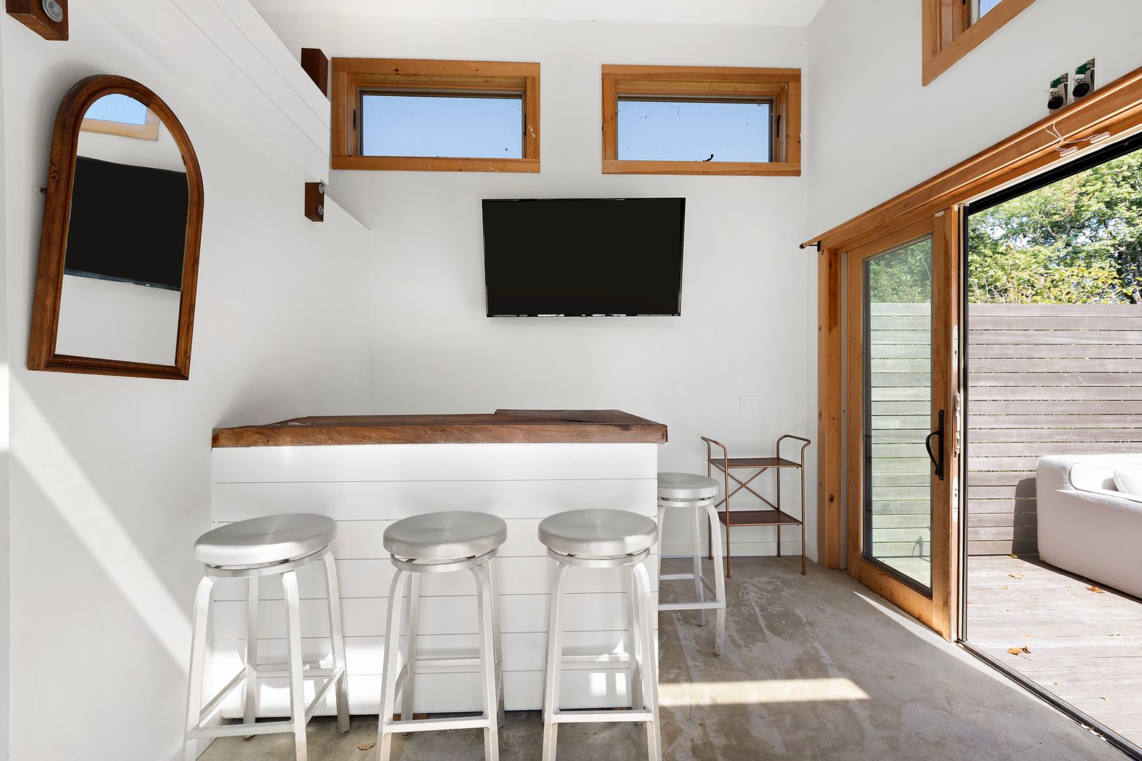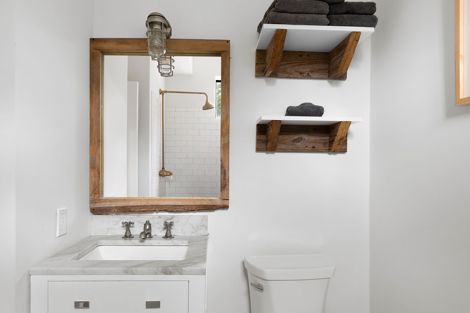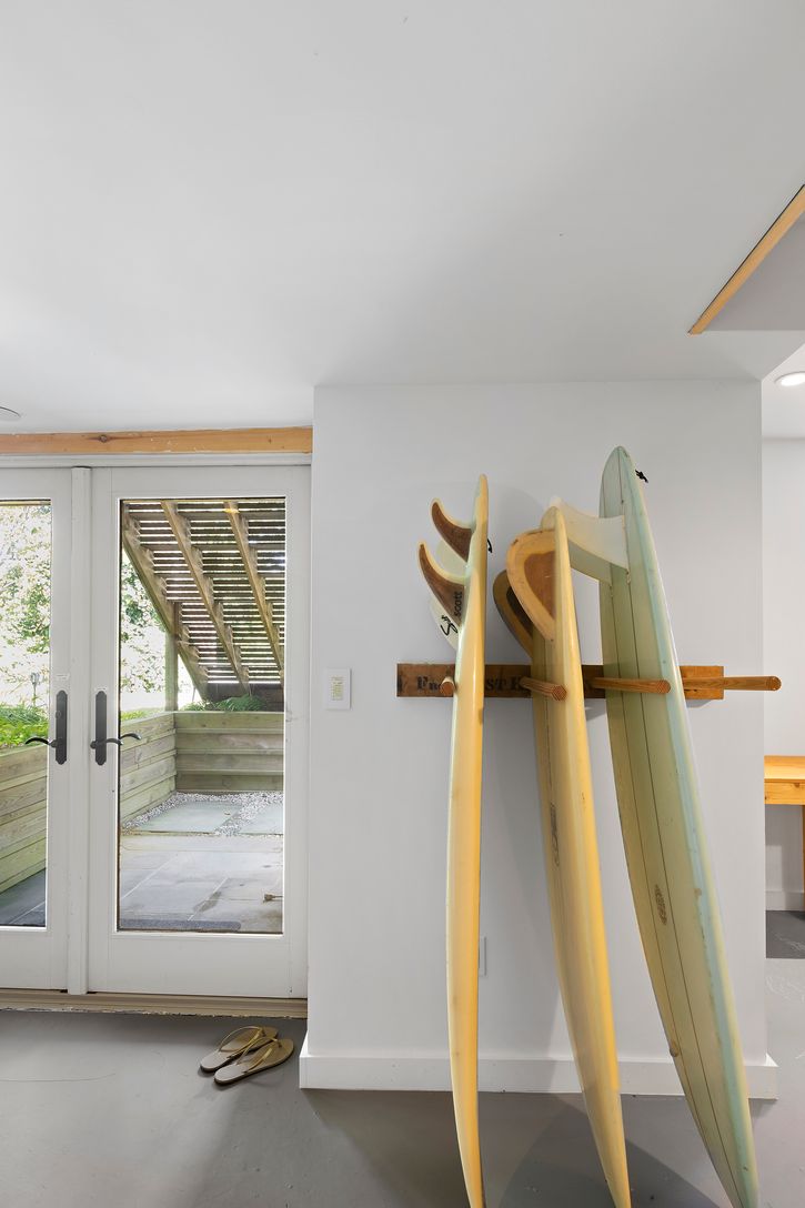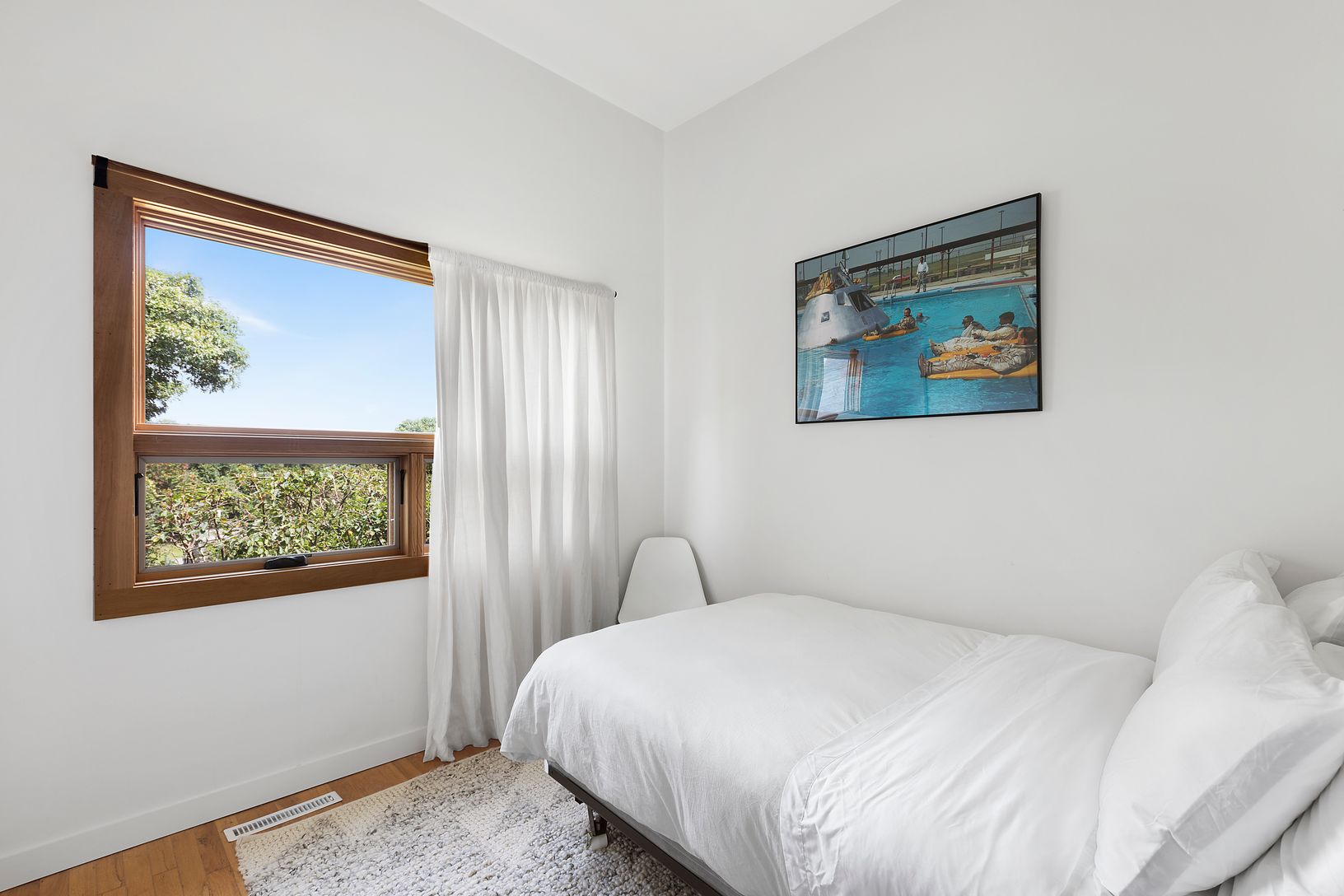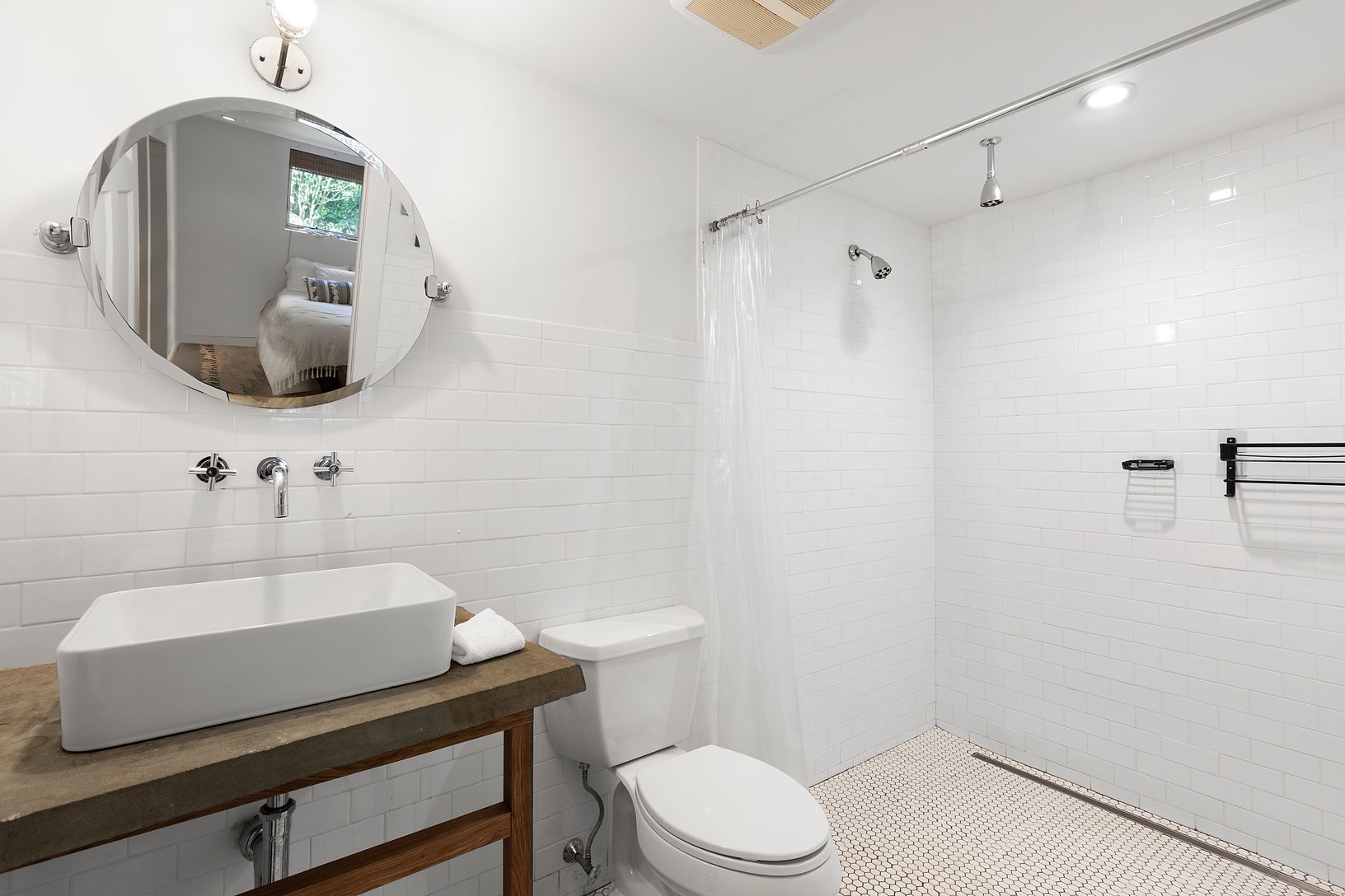 Tucked away off the street in a quiet and central location, this updated Montauk home is a true oasis. Newly renovated the main floor is open and airy featuring a living room with fireplace, high ceilings, and sliders to the back deck. The kitchen has marble counters and brass fixtures, pantry closet, and opens to the dining area. This main floor also features the master suite with private bath and outdoor access, two guest bedrooms and a seco