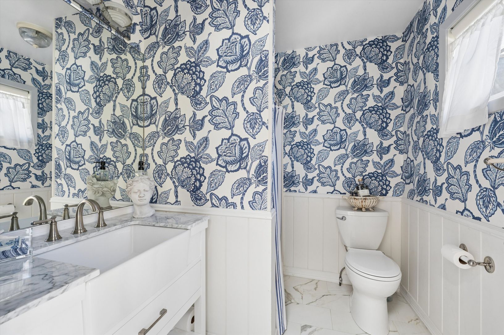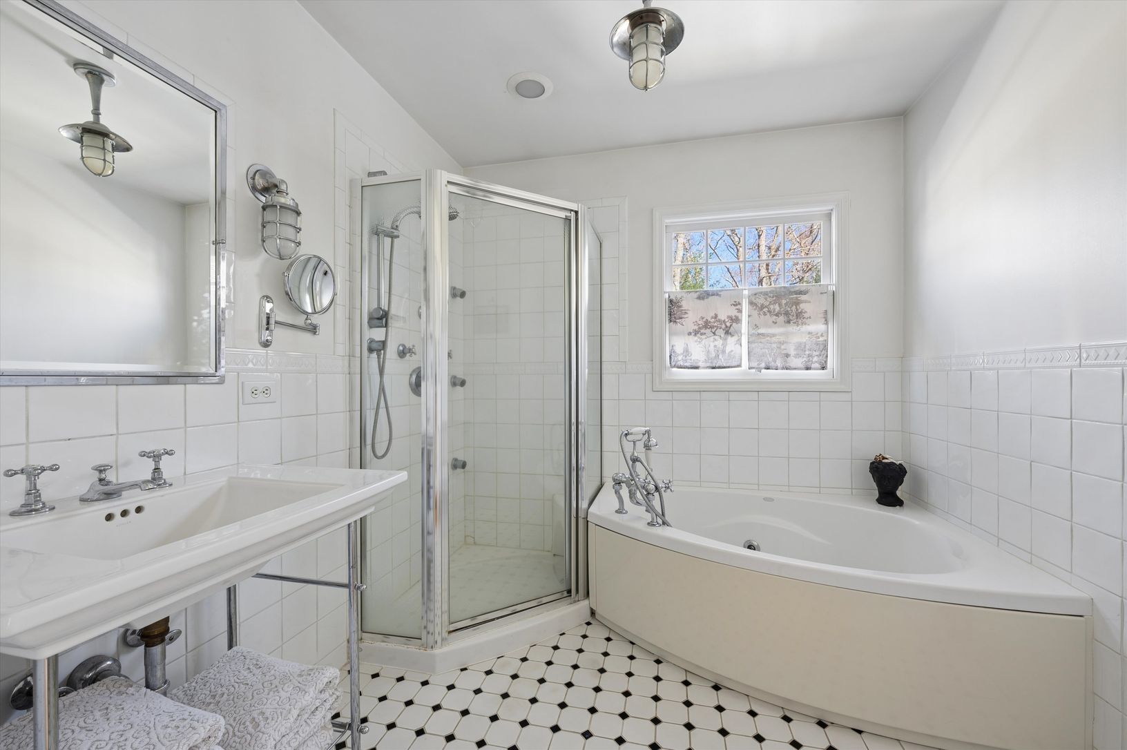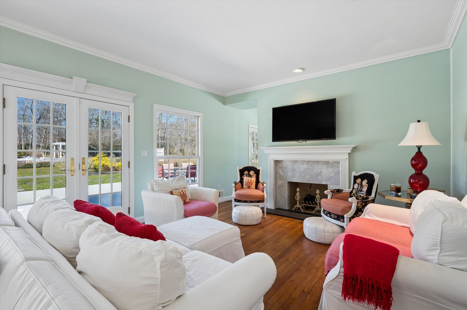 Set on 2.5± acres south of the highway in coveted Georgica, this light-filled residence is surrounded by beautifully landscaped grounds designed for privacy and effortless outdoor living. Lush lawns, mature plantings, and vibrant gardens create a serene setting that feels both expansive and secluded. The classic shingle-style home offers five bedrooms and four-and-a-half baths, including a first-floor primary suite with a gas fireplace. A welc