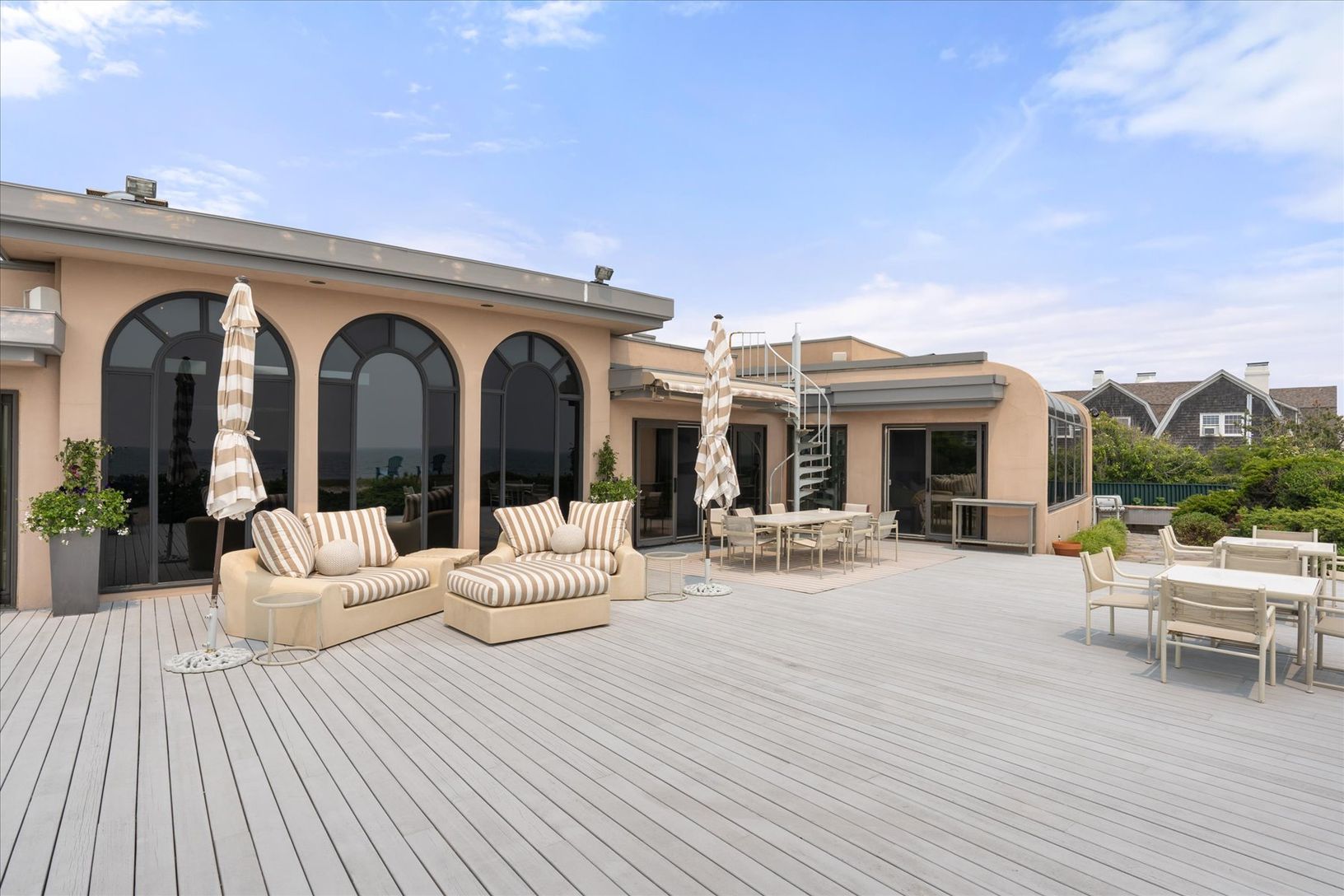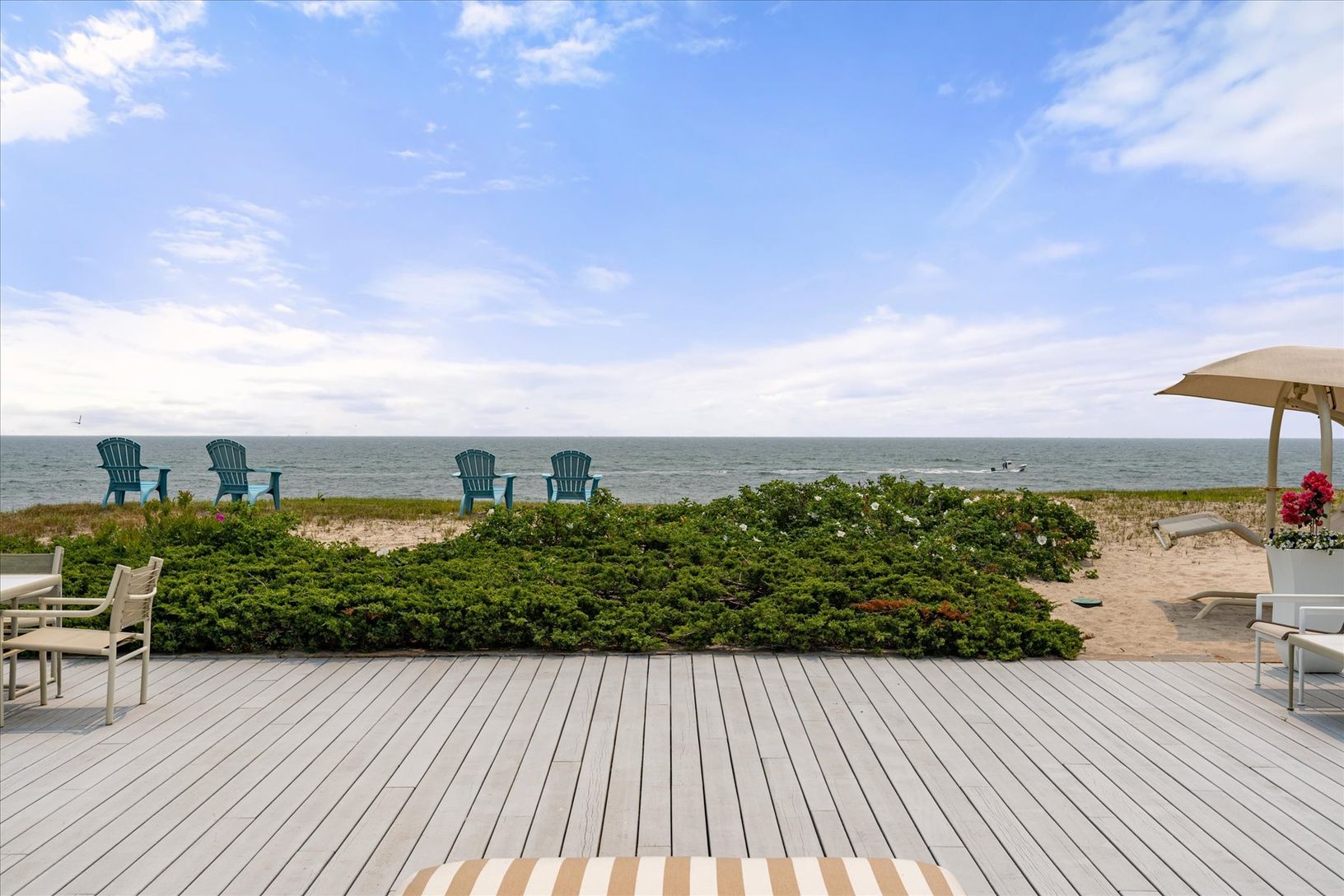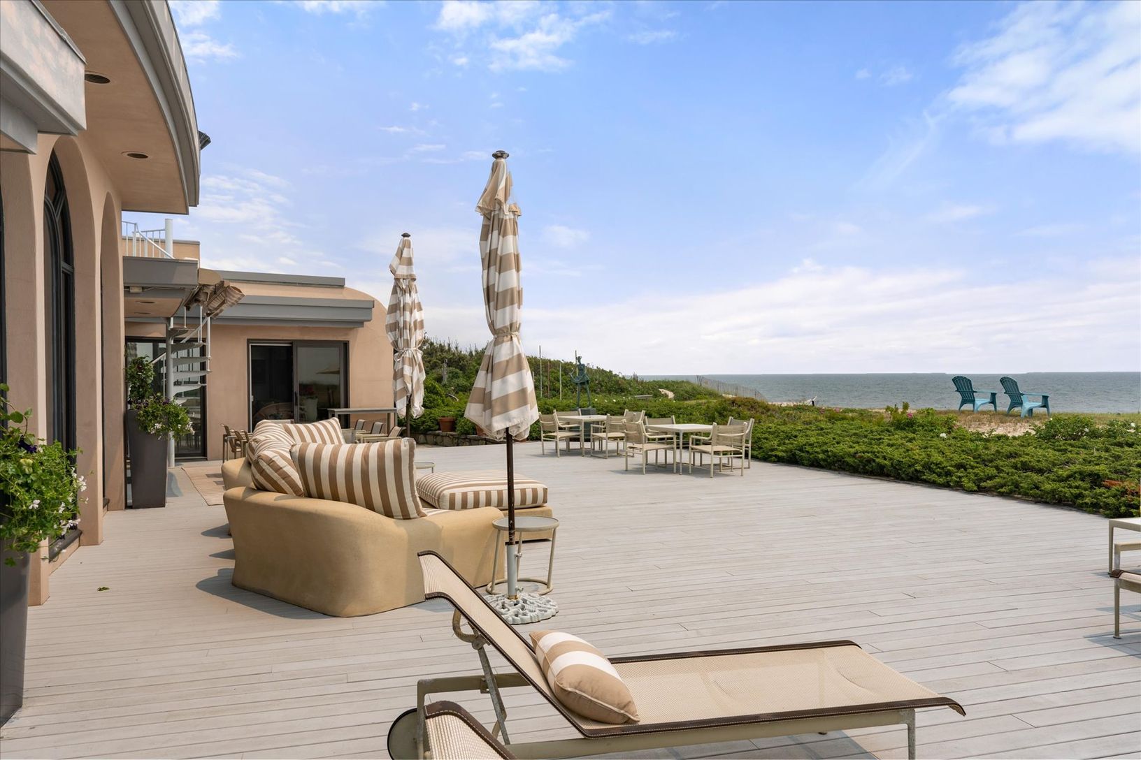 Spend an unforgettable summer at this exceptional Gin Lane oceanfront estate, available for August 2026. Set on approximately 1.4 acres with over 245 feet of pristine Atlantic frontage, this private property combines sweeping ocean views with a rare sense of seclusion. Spanning roughly 9,500 square feet, the residence offers 6 bedrooms, 7 full baths, and 4 powder rooms. The main level on the second floor features a formal dining room, family r