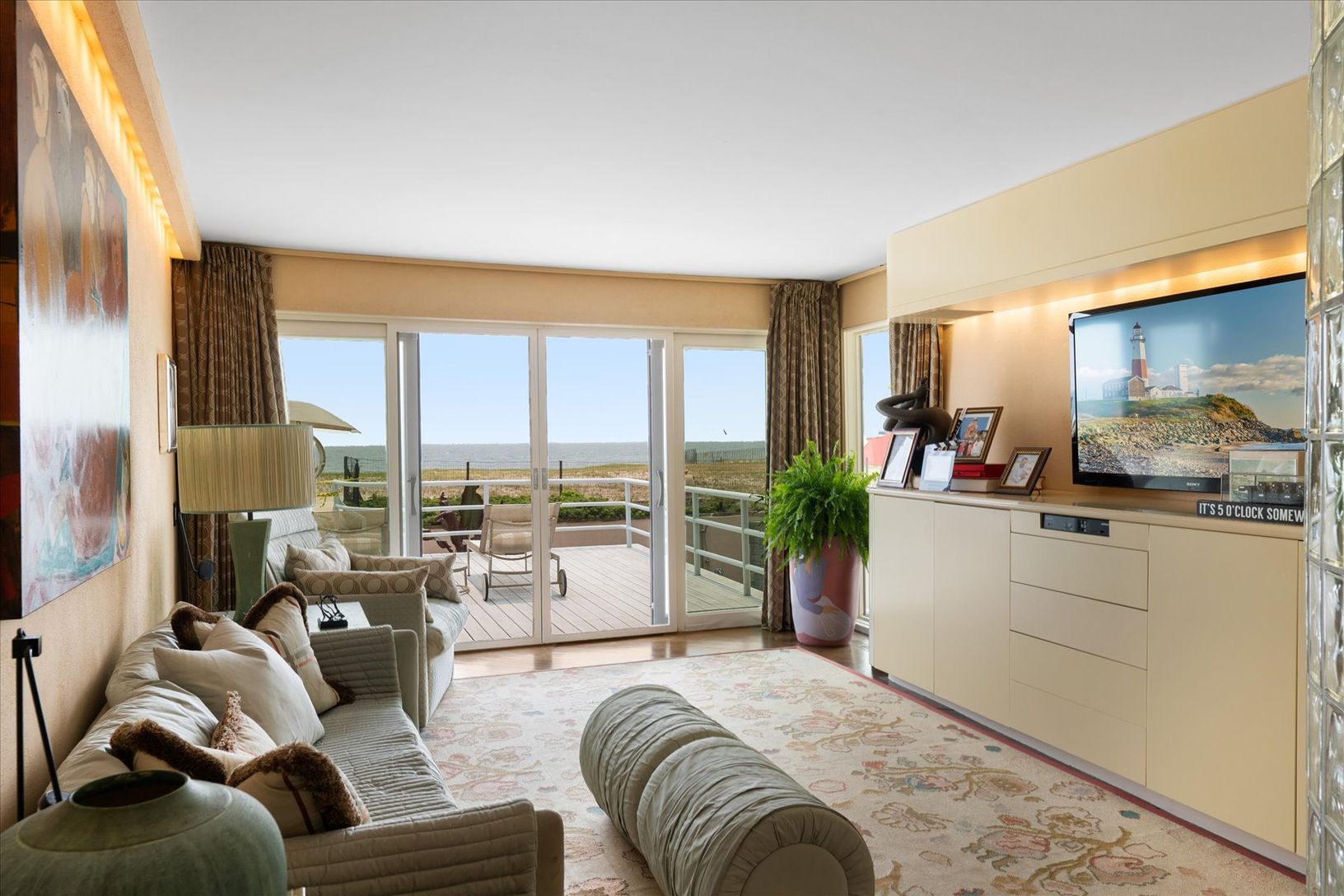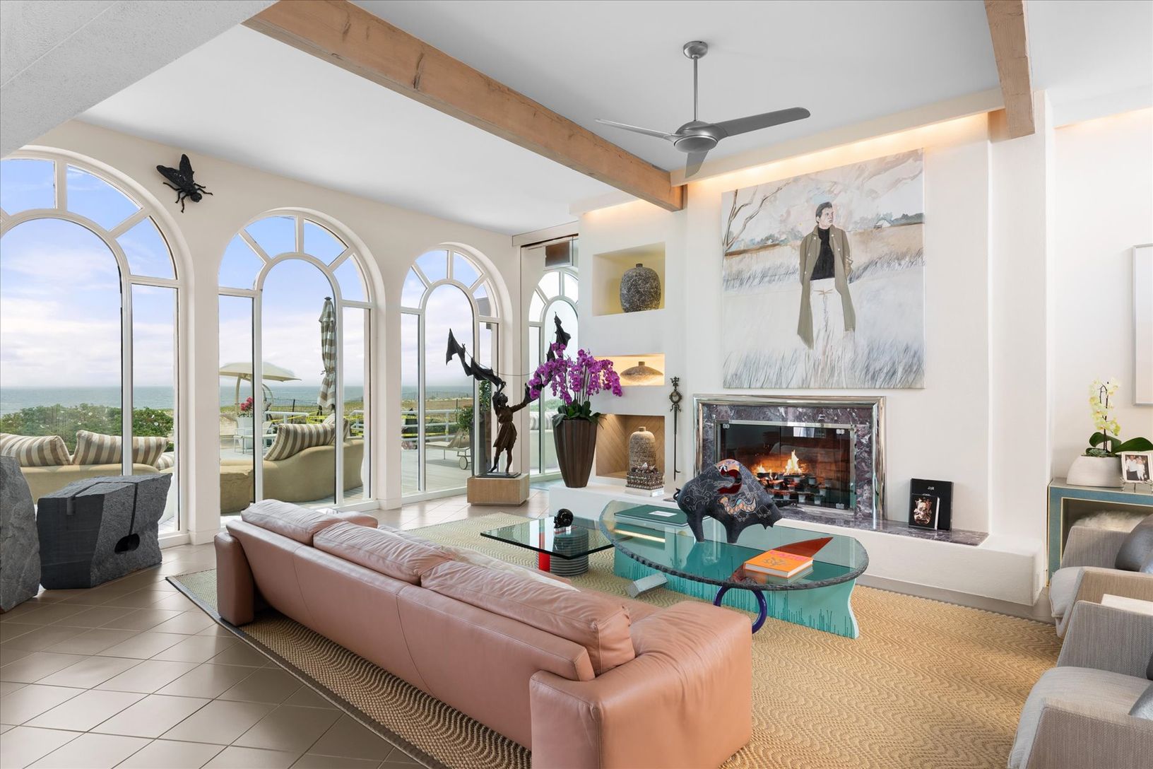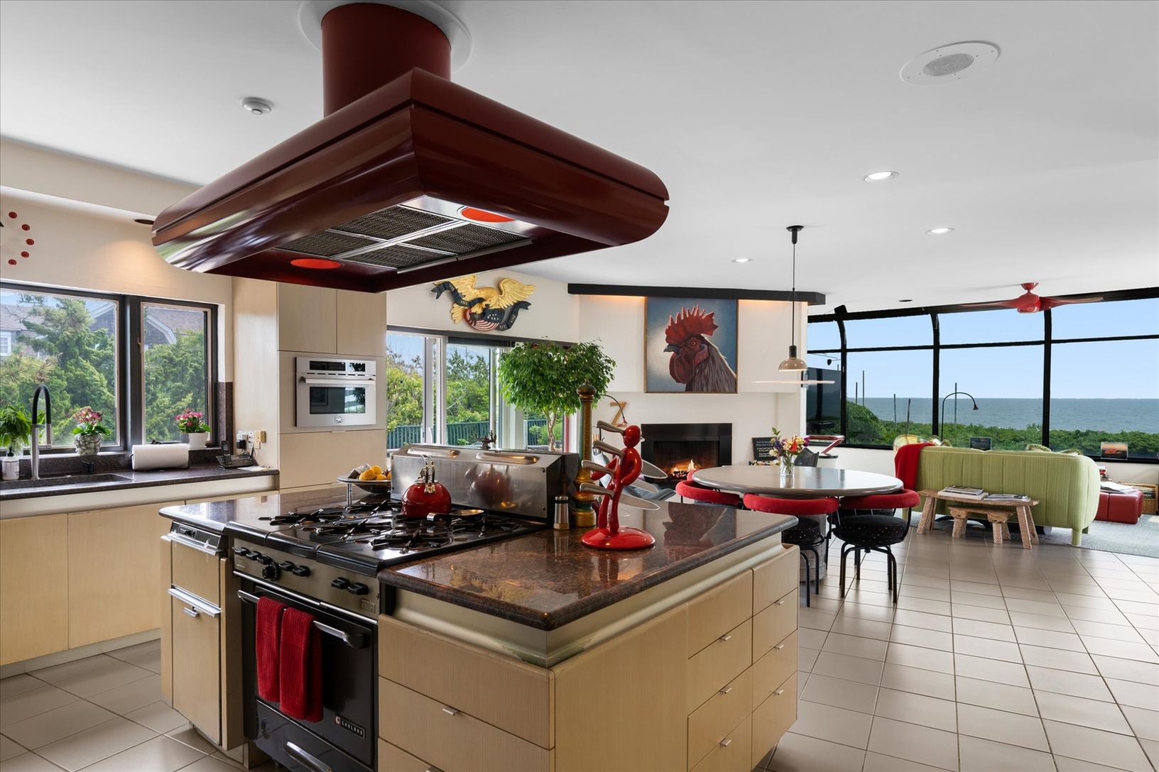 Spend an unforgettable summer at this exceptional Gin Lane oceanfront estate, available for August 2026. Set on approximately 1.4 acres with over 245 feet of pristine Atlantic frontage, this private property combines sweeping ocean views with a rare sense of seclusion. Spanning roughly 9,500 square feet, the residence offers 6 bedrooms, 7 full baths, and 4 powder rooms. The main level on the second floor features a formal dining room, family r