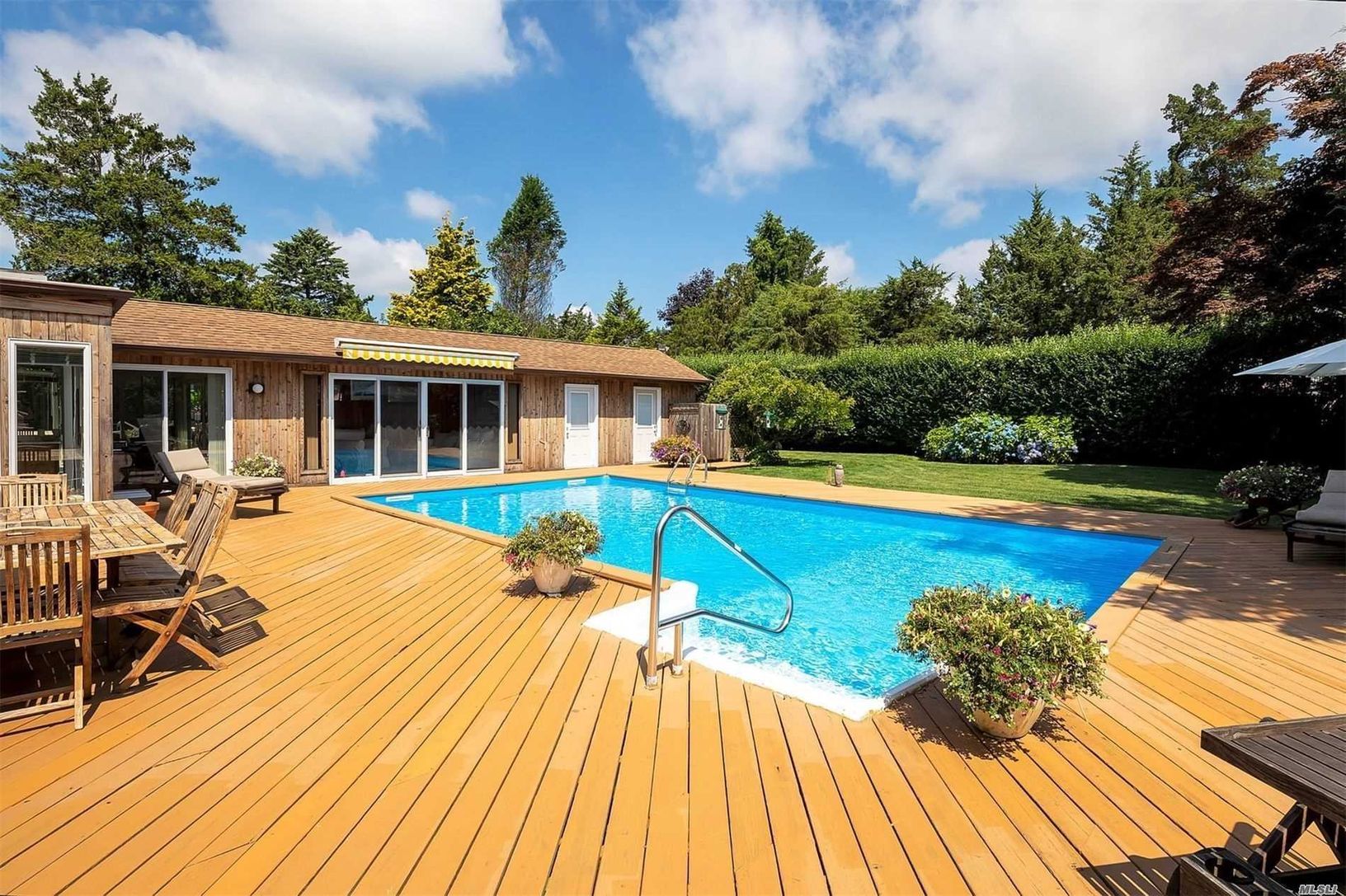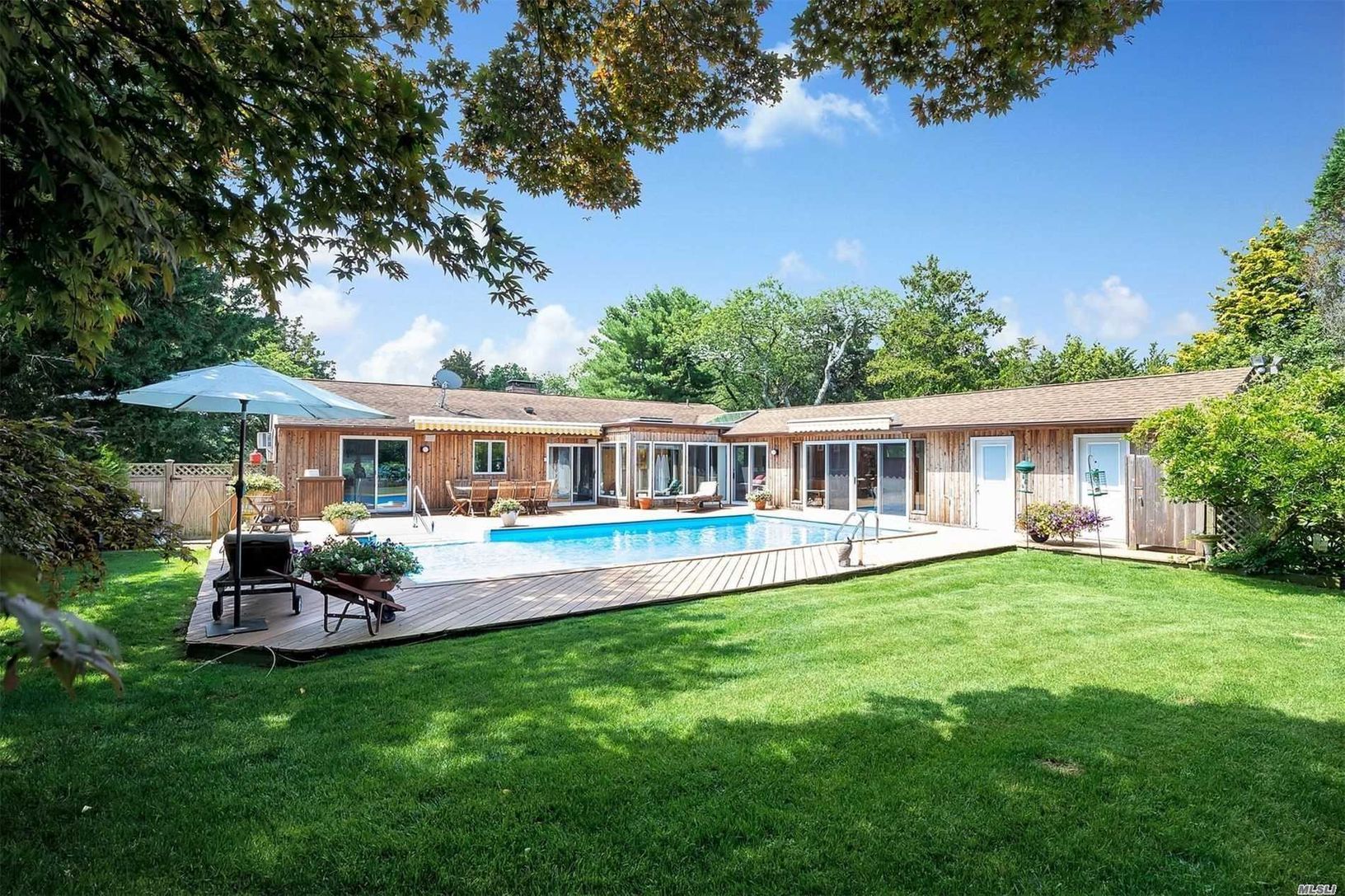 In bucolic Remsenburg, South of South Country Road, sits this one level home on a beautiful cul de sac lane. A circular driveway leads to this bright & airy 2 Bedroom, 2 Bath + office & cabana. Living Rm w/ Vaulted Ceiling, 2 sky lights, wood burning fireplace & Formal Dining Room. The 3 year old renovated kitchen overlooks the stunning & totally private backyard, w/ 20 X 40 pool surrounded by mature landscaping. A Must see.