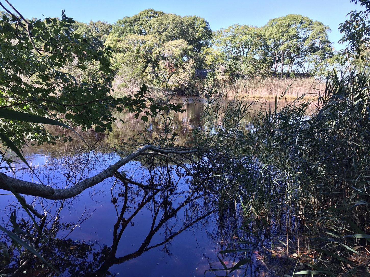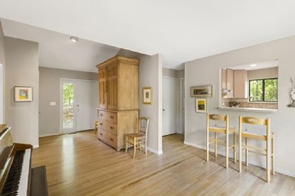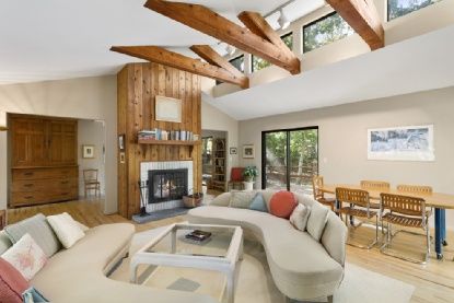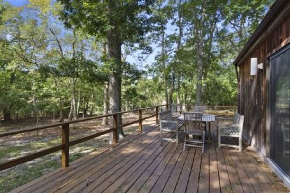 An oasis in Sag Harbor village, only ¾ of a mile to heart of the village on a quiet little traveled street. This contemporary home has a beautiful private setting with views and access to a salt water pond. The well maintained 3 bedroom, 2.5 bath home has an open living room with fireplace, cathedral ceiling and skylights, as well as an expansive deck and hot tub, and a pool may be possible with a variance. The pond has amazing wild life, eg