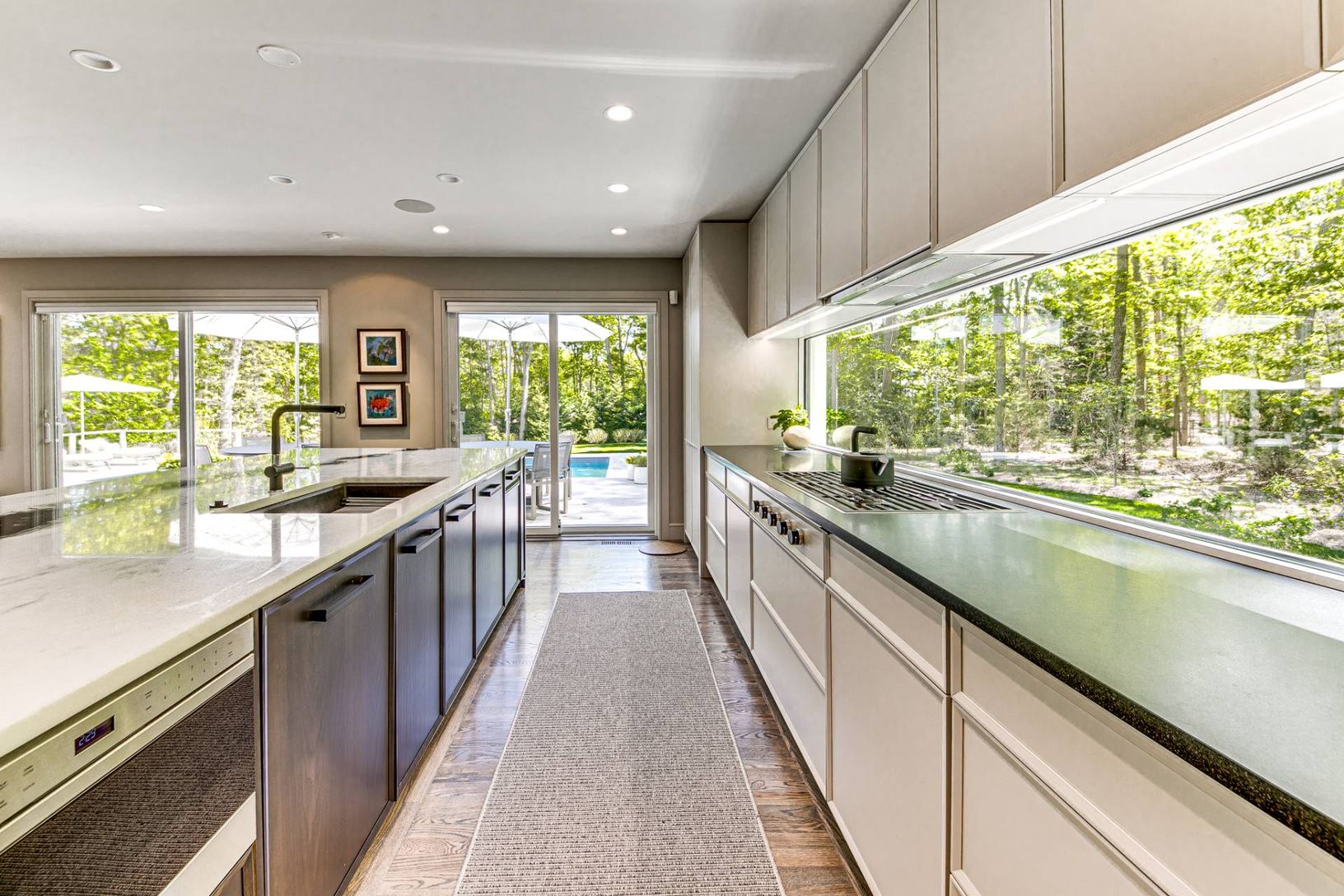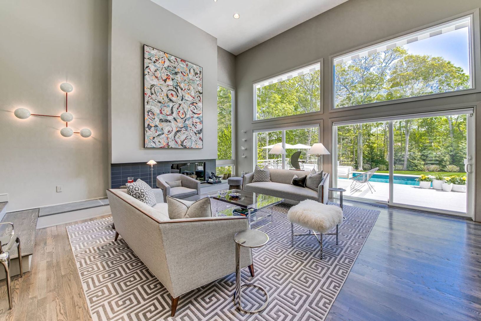 Welcome to modern luxury living on East Hampton’s prestigious Hedges Banks Drive. This fully renovated contemporary home features 4 bedrooms and 4.5 baths, set on an expansive 1.69-acre lot with a heated pool and multiple outdoor entertaining spaces. A stone walkway leads to the inviting front porch and entry, opening into a gracious foyer.
