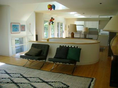 This is one of the originally designed upside/down houses built in the late 80's by well known architect Ernest Schieferstein and reflects his aesthetic in certain design elements. It sits on an elevated 1.1 acres on a private cul-de-sac just minutes from NW Harbor. This home is surrounded by wonderful pines for privacy and a reserve to the east. The second floor is open with a westerly facing balcony allowing for beautiful views of the sunset