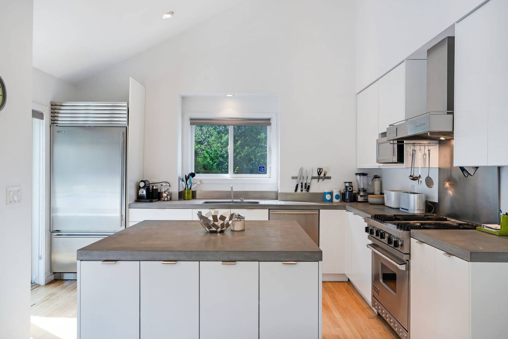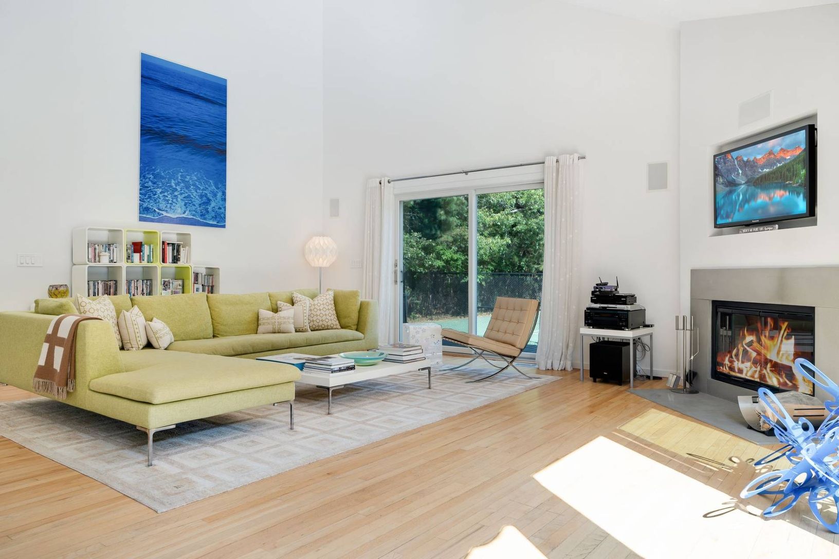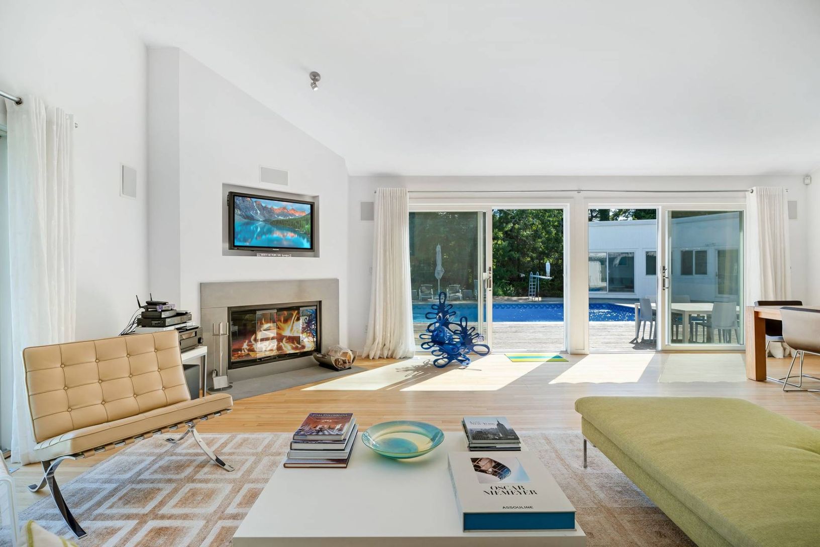 New to the market, is this stunning modern contemporary compound featuring mesmerizing architecture. Known as the "Triangle, Square, Circle Compound" symbolizing the façade of each structure. Entering through the main house you are greeted with a front foyer leading to the sun-drenched open floorplan living areas. The living room is anchored by a wood-burning fireplace, sliding glass doors that lead to the deck and pool area, and a vaulted cei