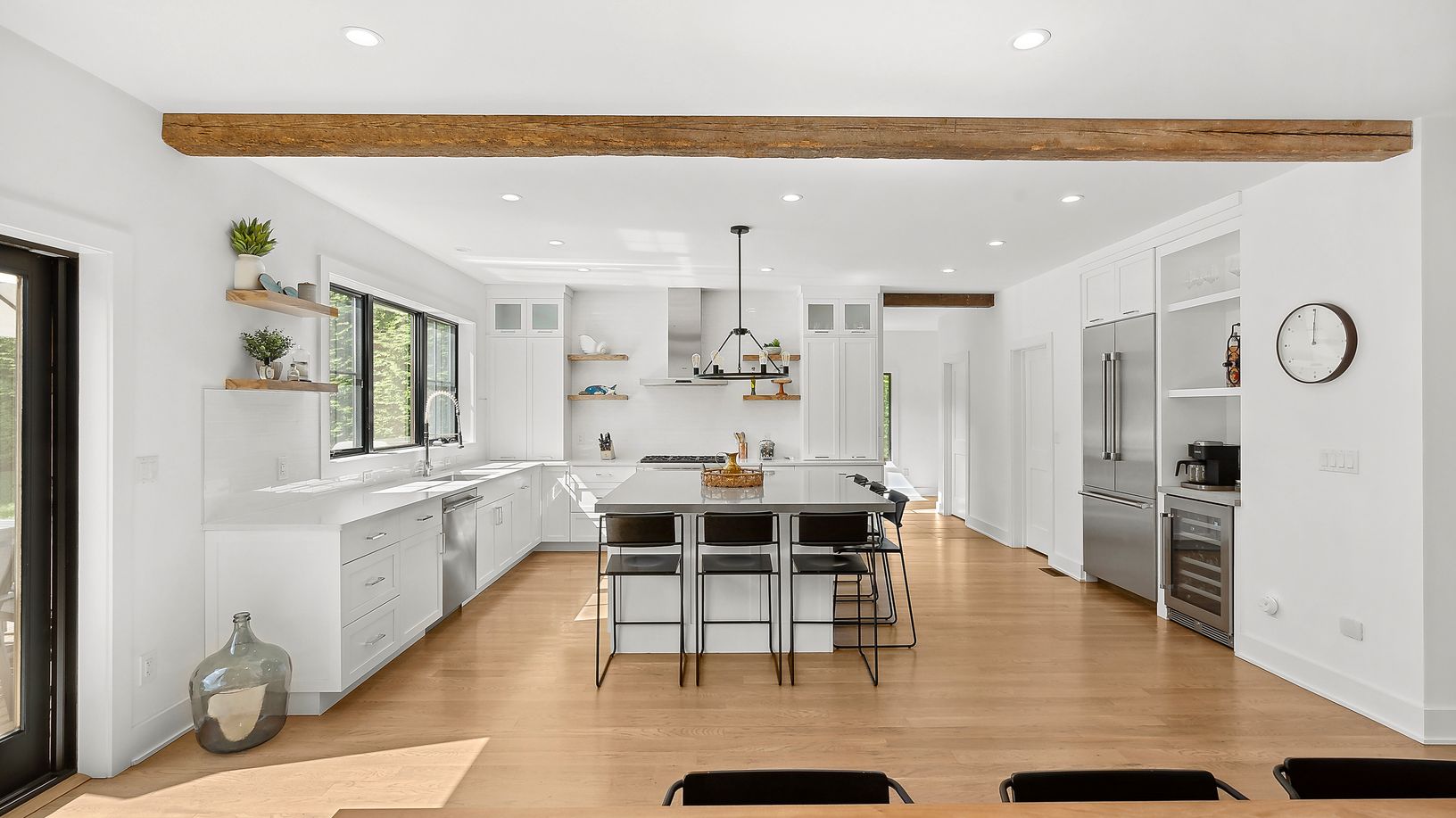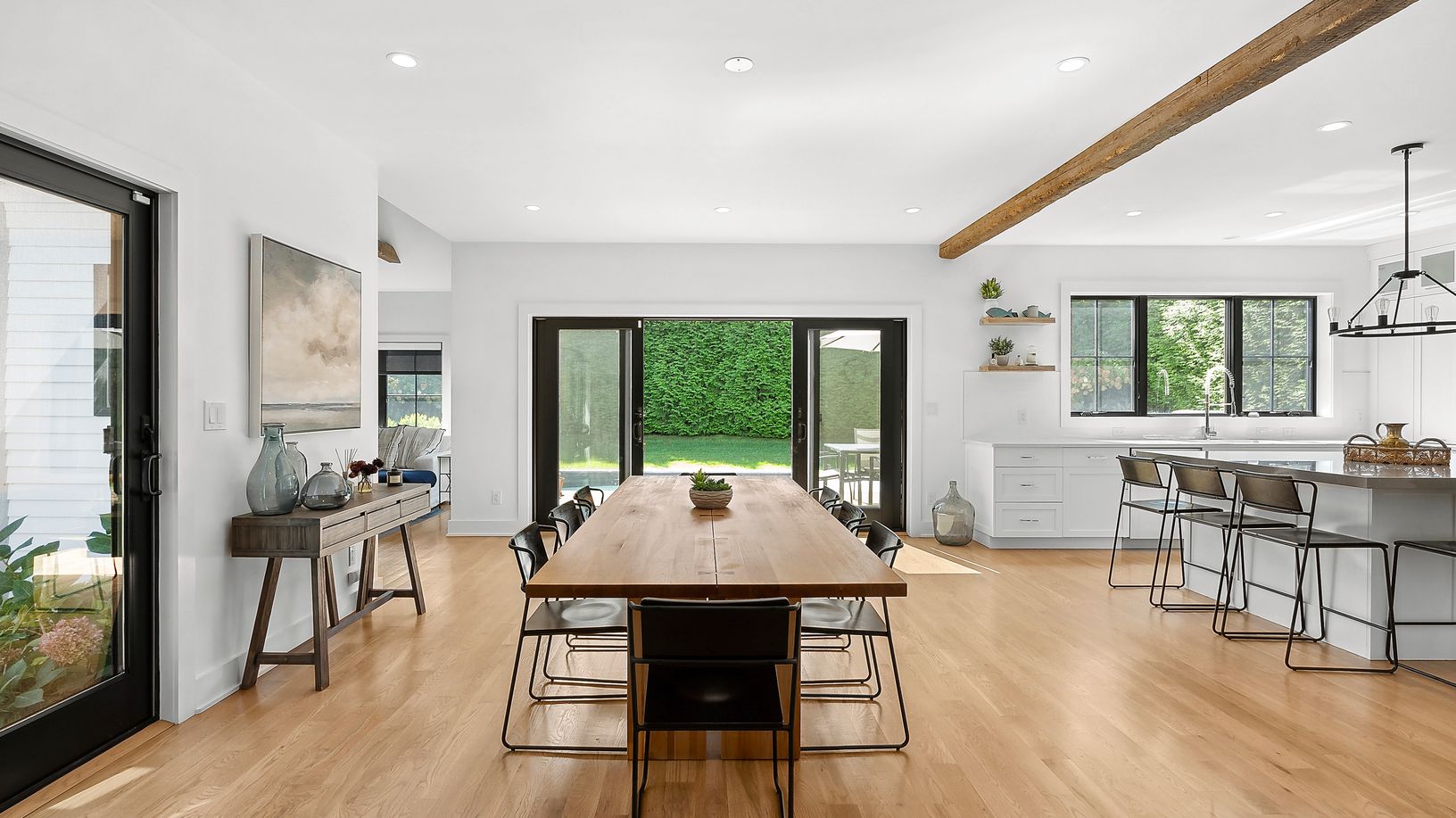 Centrally located, nestled on a quiet street just around the corner from Main Street and mere moments from East Hampton ocean beaches, you'll find this exquisite 5 bed, 5.5 bath gem offering nearly 4,500 sq. ft. of luxurious living space across three levels. Immerse yourself in the timeless elegance and Hamptons' clean, crisp aesthetic that graces both the interior and exterior of this remarkable property. As you step onto the classic covered