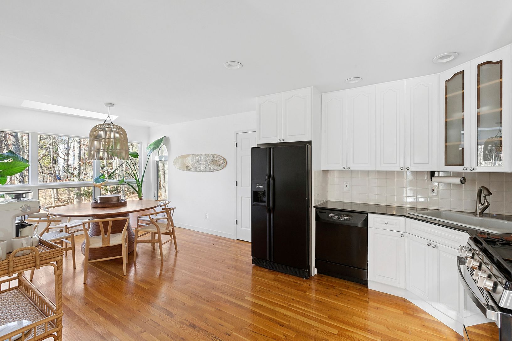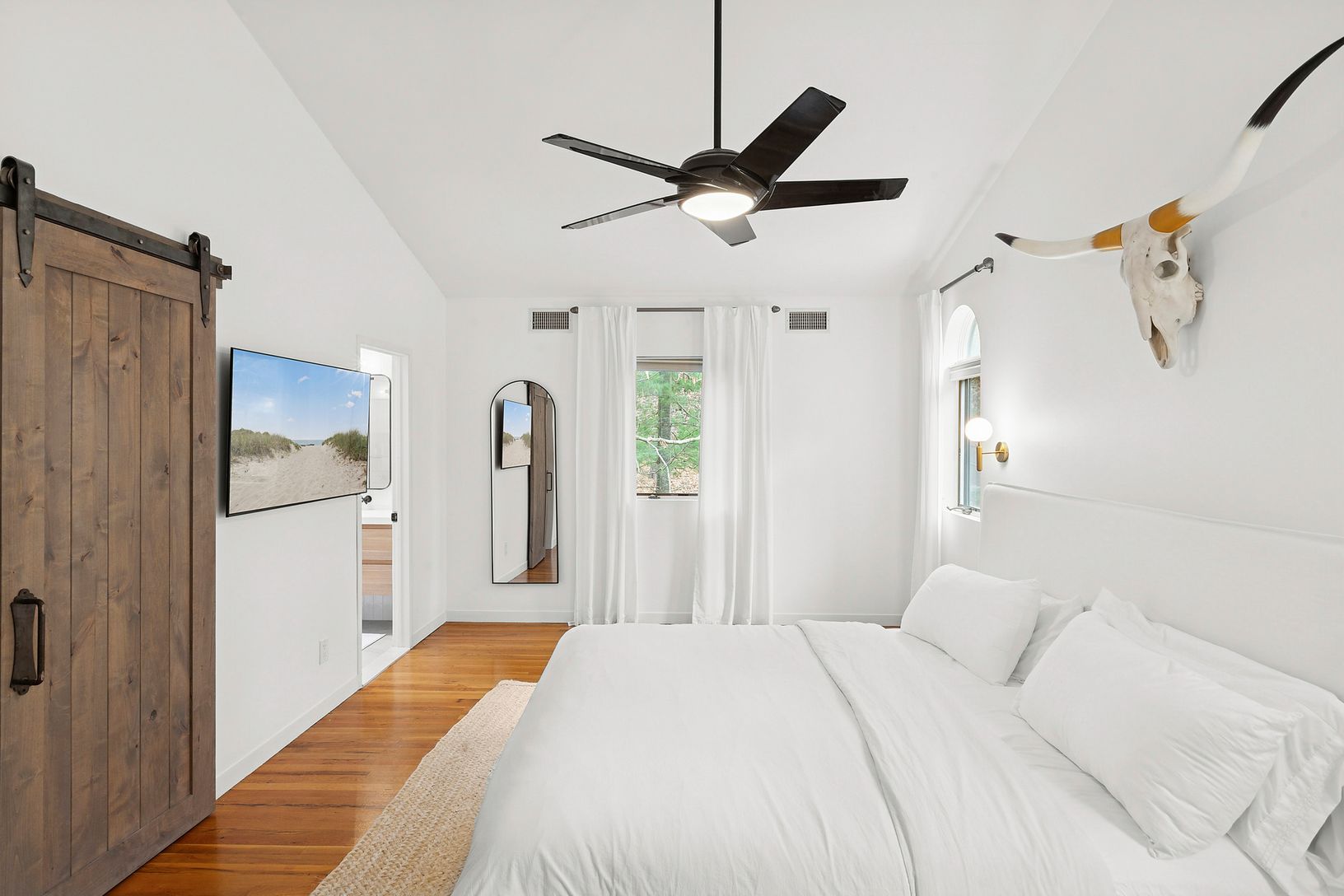 This beautifully updated contemporary sits on a quiet cul-de-sac in the near NW Woods just outside of the Village of East Hampton. An entertainers dream, offering indoor/outdoor living from both the sundrenched great room as well as the eat in chefs kitchen. In addition to the great room the main level also includes a large ensuite bedroom, half bath and laundry. Upstairs you will find the large primary suite with walk in closet and a seco