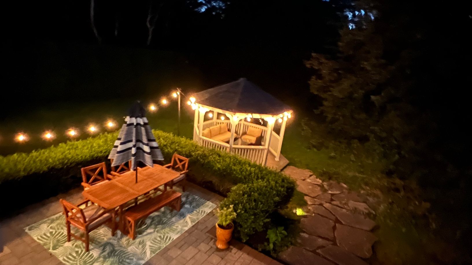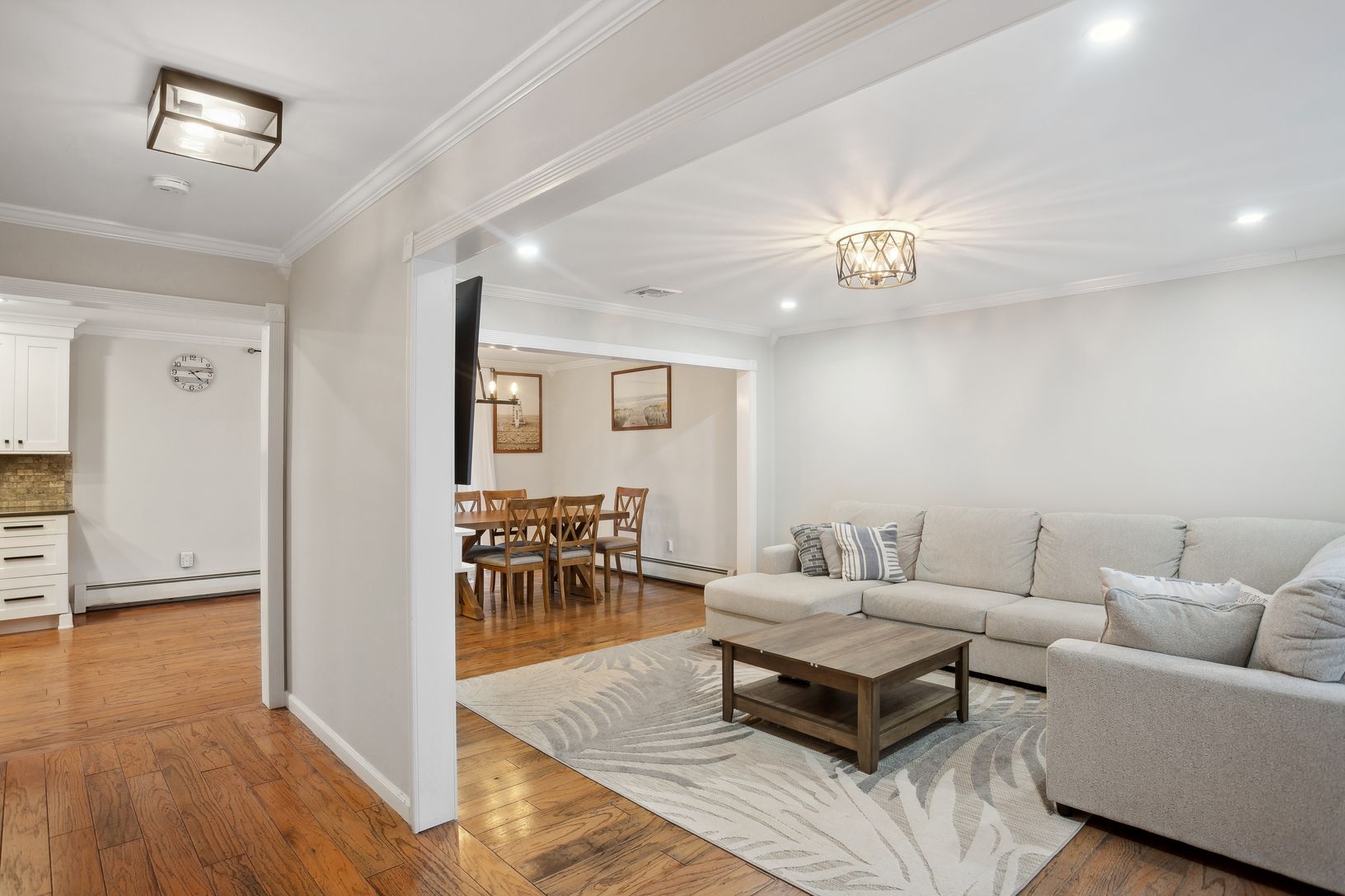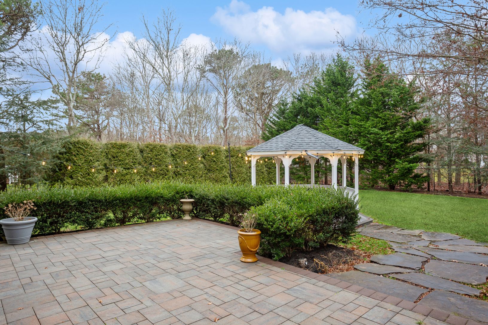 6 Jennifer's Path in Westhampton Beach is a meticulously maintained property featuring 3 bedrooms and 2.5 bathrooms. The home boasts a beautifully renovated interior with hardwood floors throughout. The stunning backyard is an entertainer's dream, featuring a heated pool, gazebo, and charming string lighting, creating a European ambiance. The finished basement with an outside entrance includes an entertainment center, providing additional spac